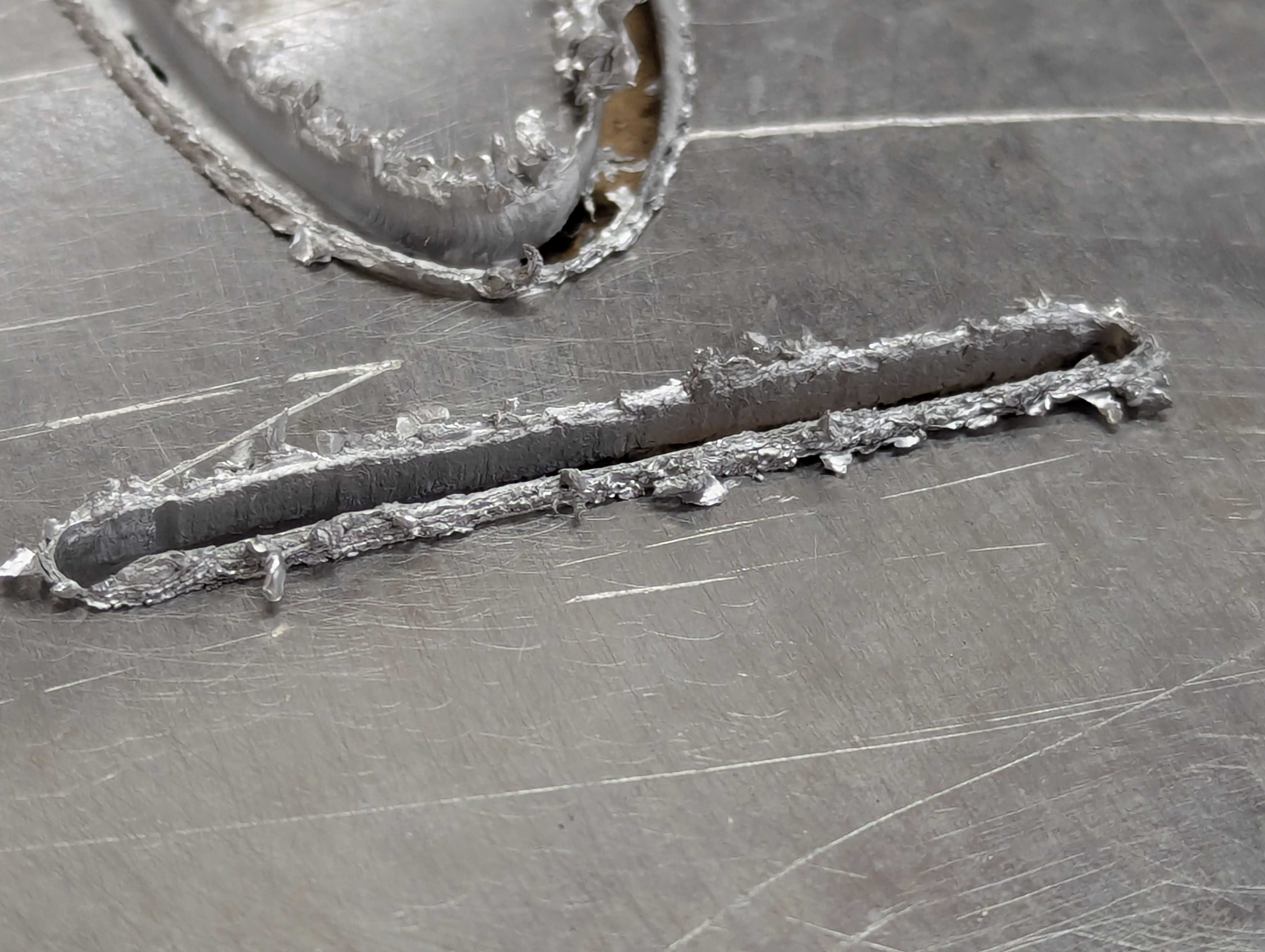I tried cutting aluminum sheet metal with a 1/8" 2-flute cutter using the Carbide Create defaults (Feed 24 in/min, cut depth 0.010in, 16000 rpm) and this was the result: