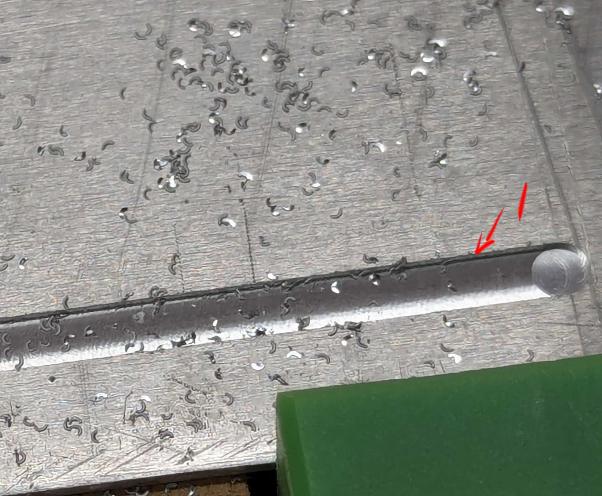 Thank you everyone. I wanted to share some of my results. So I went back to the single flute cutter as recommended. First cut was 18 ipm, 0.006in depth, 18000 rpm. I did not use any air so I could see the chips. The cut looks clean:
