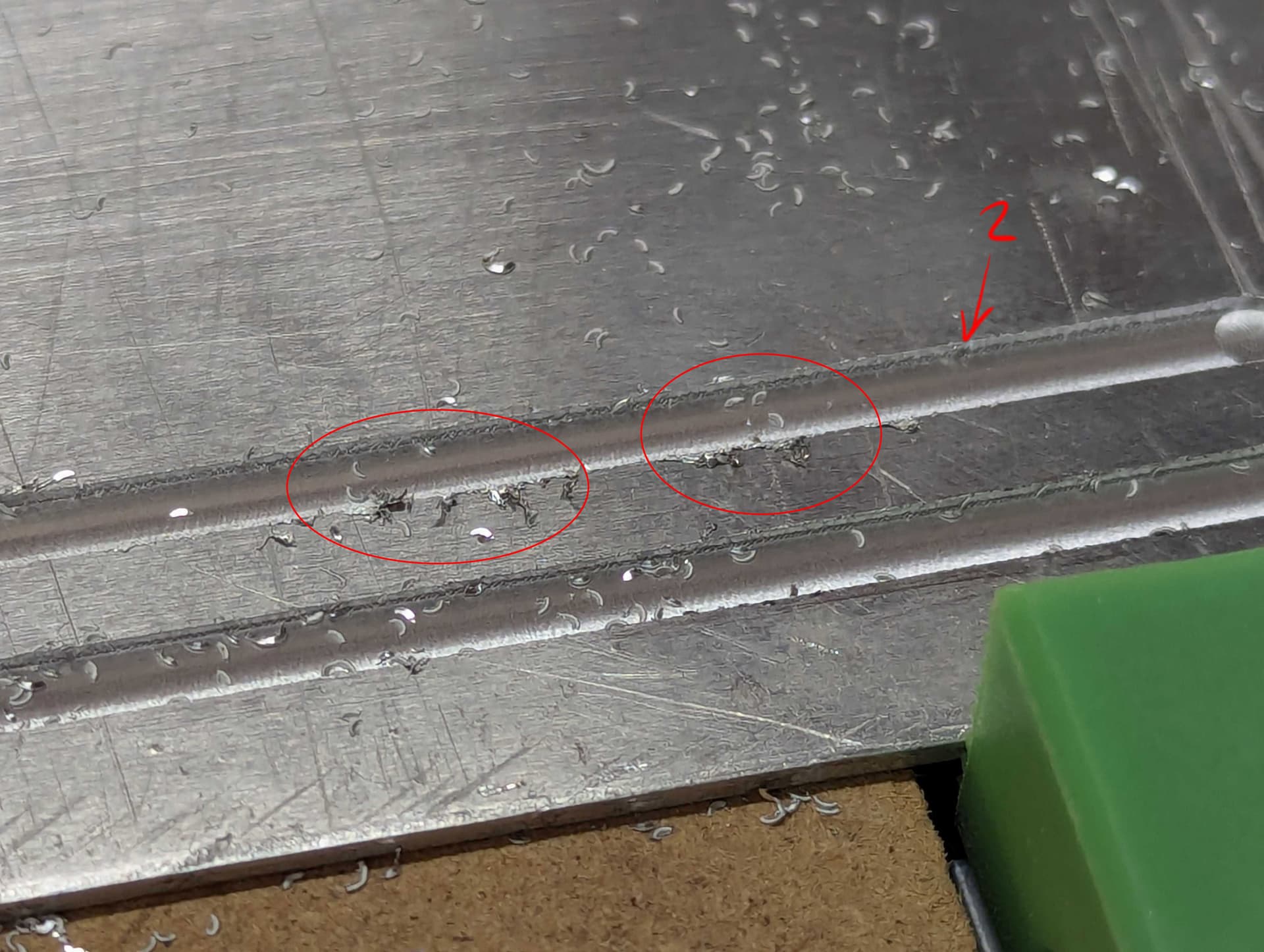 Now admittedly, these are some relatively cheap end mills from Amazon rather than the brand name Carbide ones, but this seems like a particularly bad result! It isn’t chipping at all and the cutter was getting really hot. I have cut this aluminum before with a 1 flute Carbide-brand cutter with great results so I know the material itself is fine. The defaults for a single flute cutter has a faster RPM and slower feed rate (18in/min, 16000rpm). I thought it might be a chip load thing for the difference in settings, but it definitely feels like it is cutting too agressively. Help please!