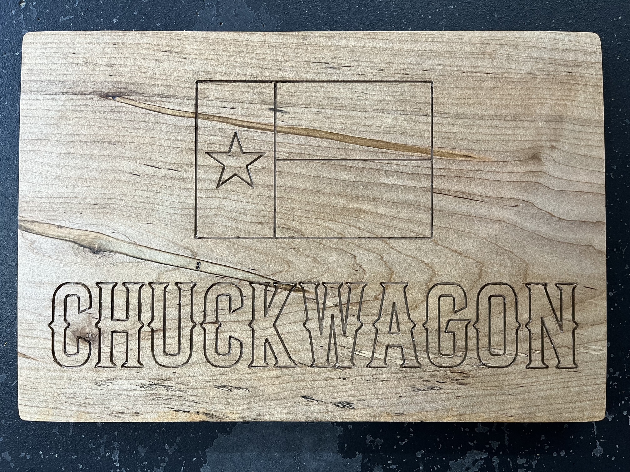 My brother and some friends at church enjoy cooking out at church functions. He asked me to make him a cutting board for an 80 year old gentleman, known as Chuckwagon, who likes to be there and barbecue with the group. He wasn’t looking for anything crazy, just a simple design with his name and a Texas flag.