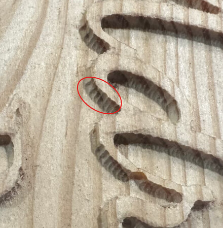 I don’t think it matters if the text is built in to the initial 3D component (imported from STL), or added on top of the book shape. It’s the 3D finish path that is causing the serrations.