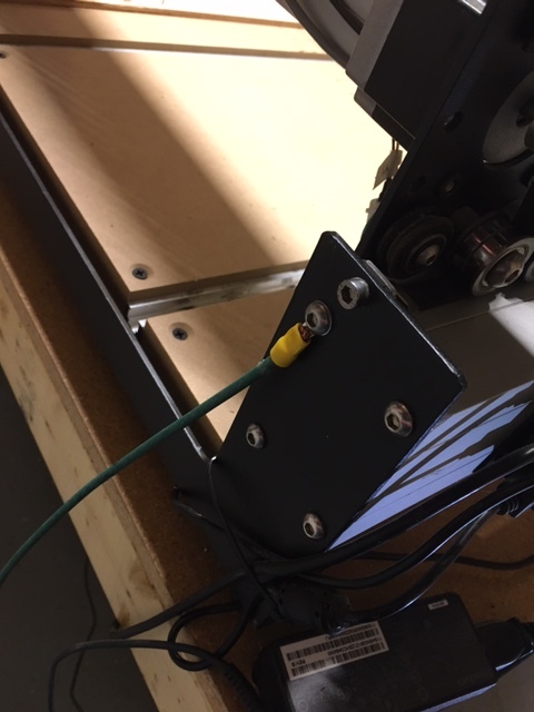 I ran braided copper from the Y frame wire train bracket screw, through train up to the X frame(black) Then through X Train to carriage assm(blk) Then to the Vac Hose. Grounded the frame. Meter now reads 0.006 ohms at highest point (Spindle frame)