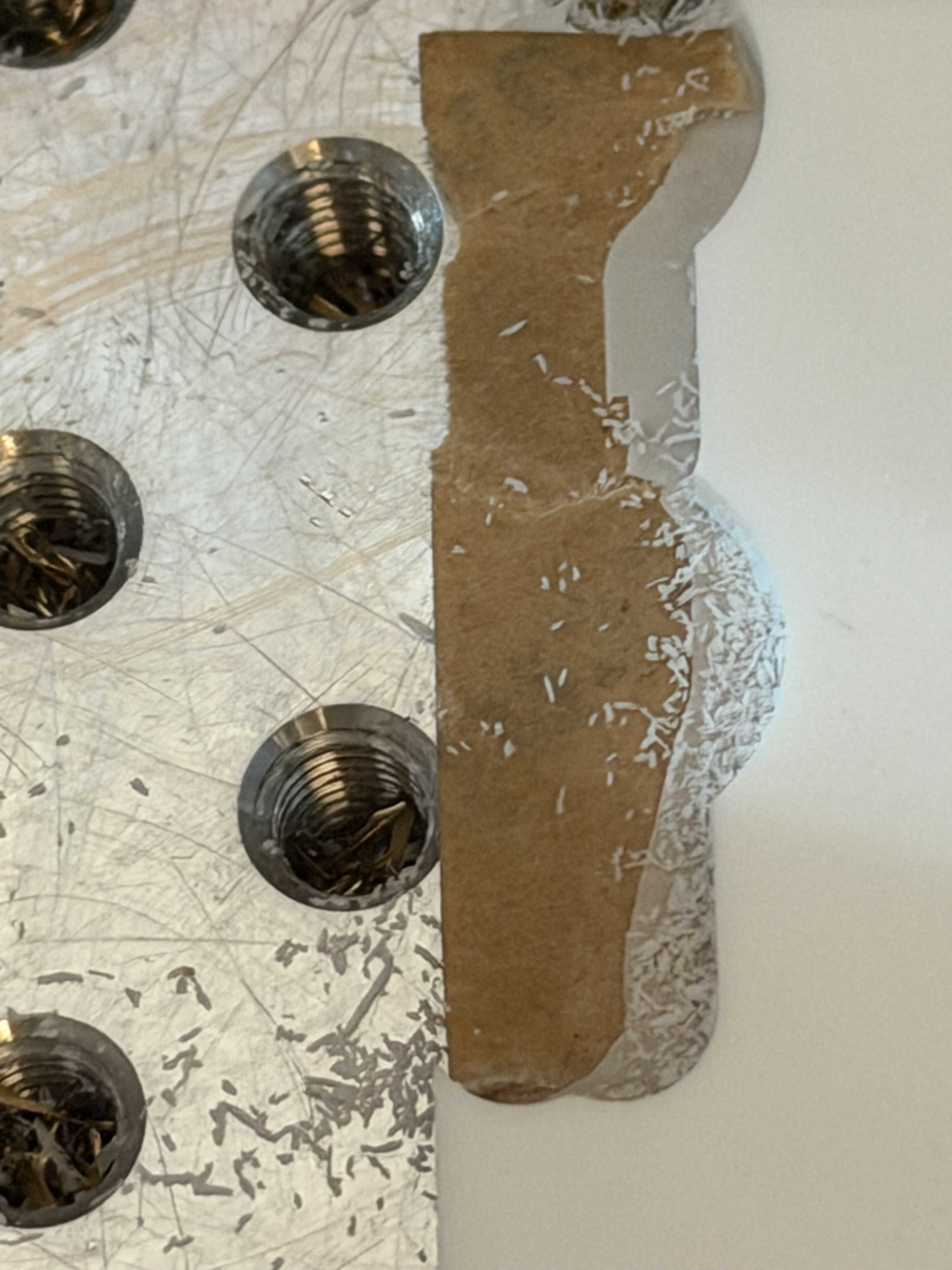 Left about 0.1mm of onion skin and kept the bottom protective paper on. This kept all adhesive off of the tool and the onion skin shears off pretty cleanly. I’ll probably cut a little closer from now on though.