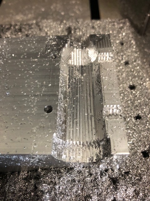It might be worth generating your tool paths in Fusion to have more control over the finishing pass. I’m sure Vince has better recommendations, but I usually try and remove .05mm for better finish pass. Also air blast would help.