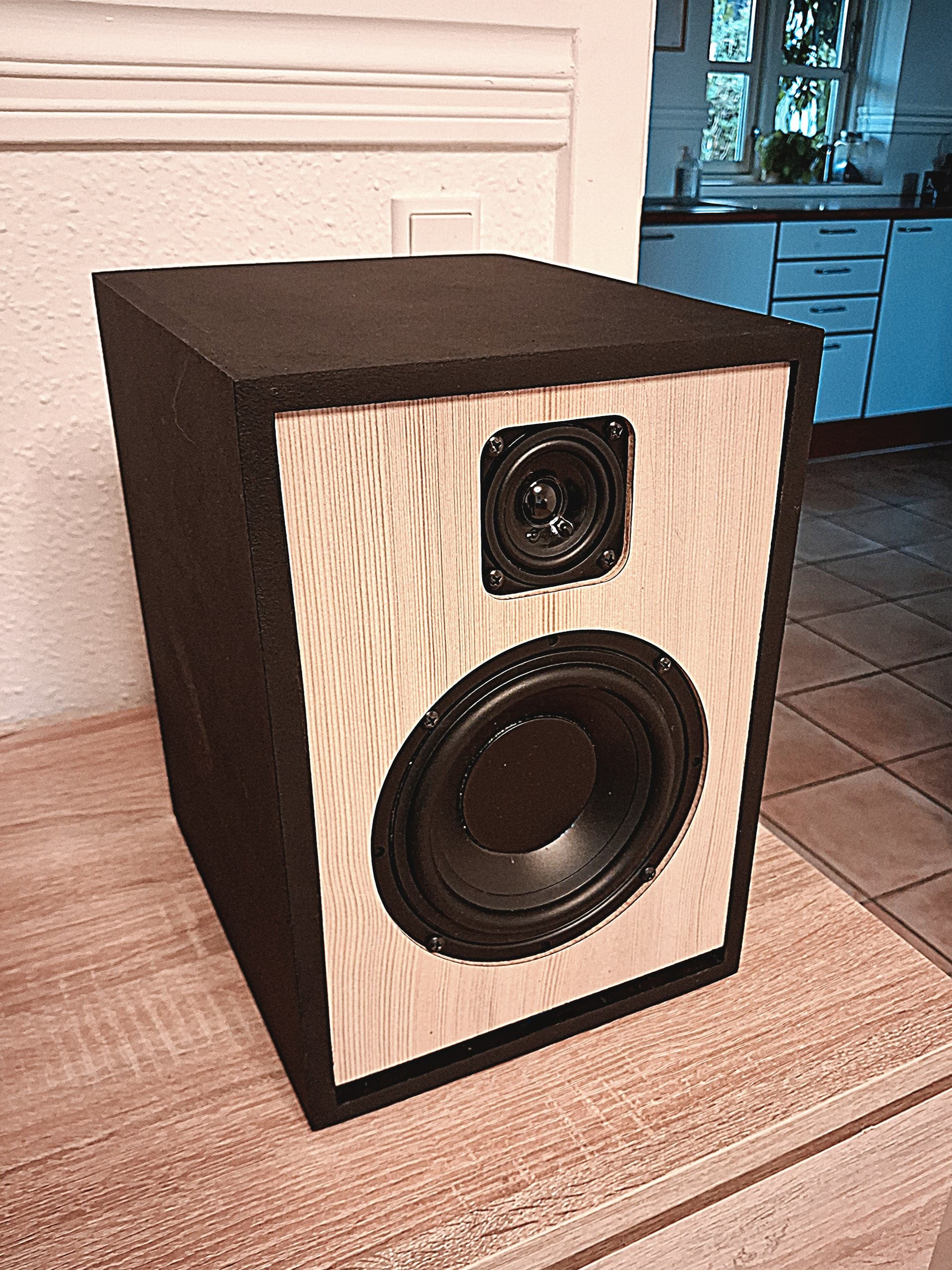 Building a loudspeaker is naturally always a balance between sound and aesthetics. I have already build this speaker in MDF and was really impressed by the full sound (especially considering the small 12 L volume, but very clever bass reflex design).