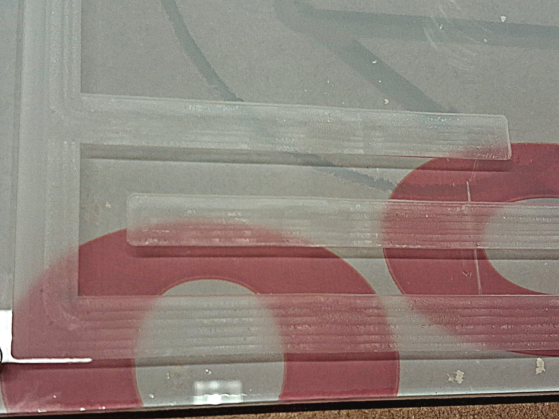 Interestingly, the acryllic glue Acrifix 0192, solved the issue of the small scallops in the CNC cutting, by dissolving them and making the glued surfaces clear again (see photo, bottom line is glued).