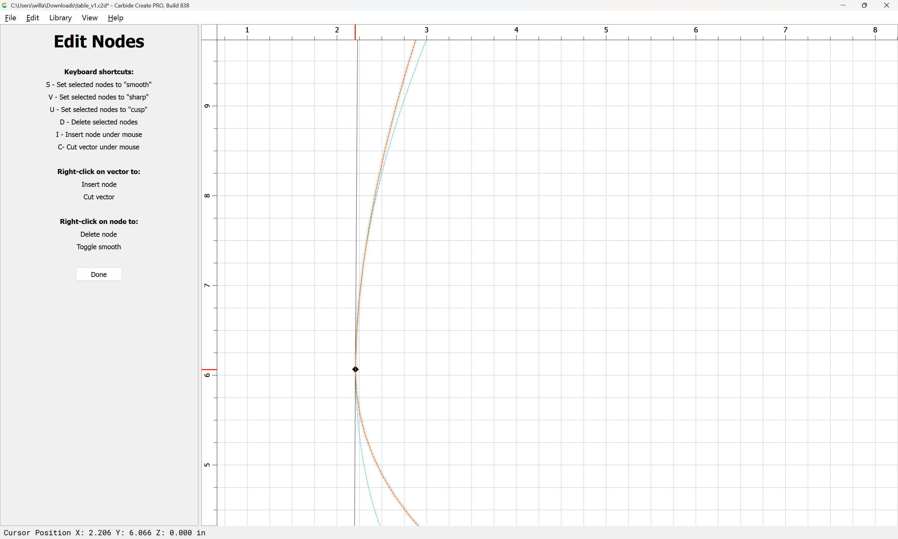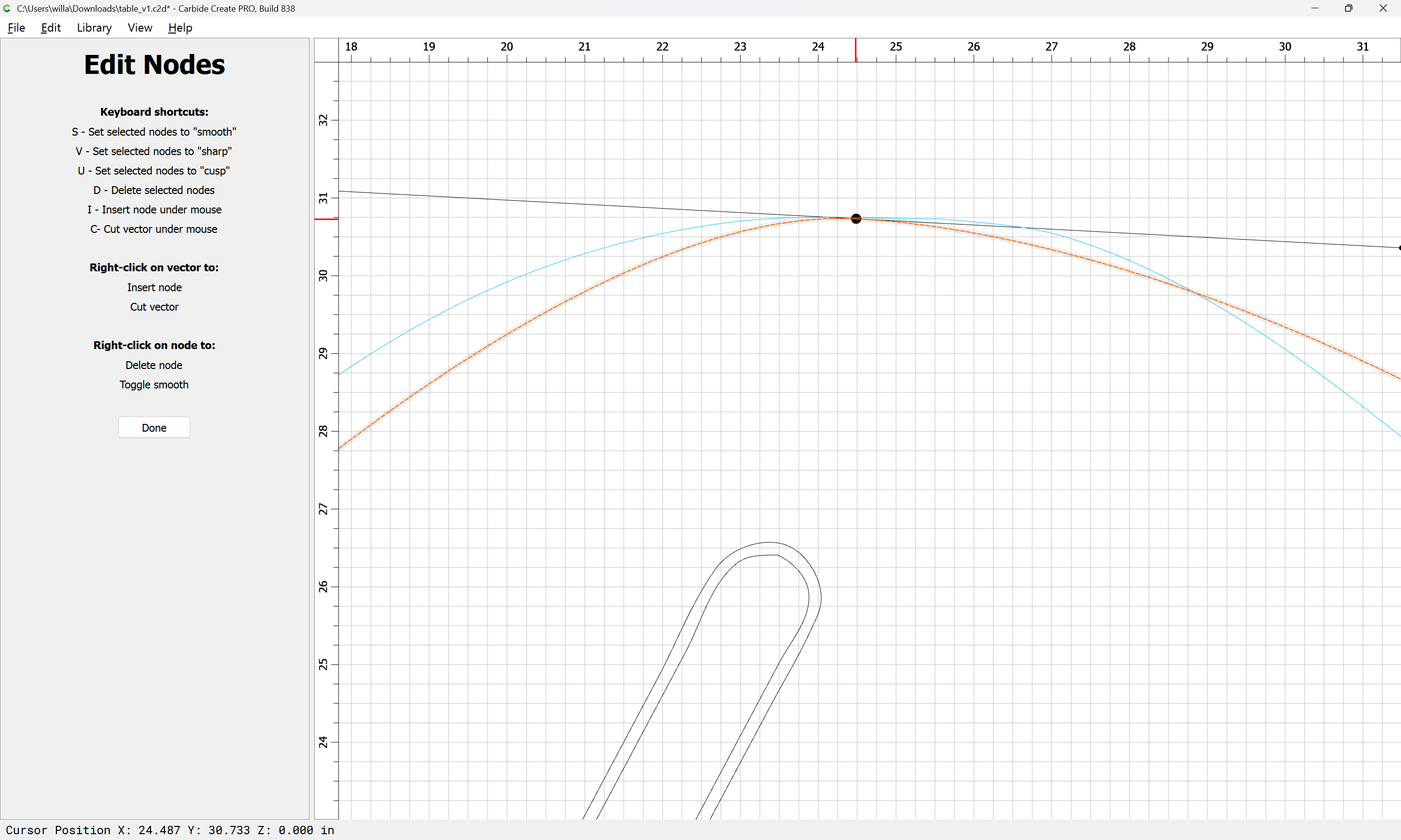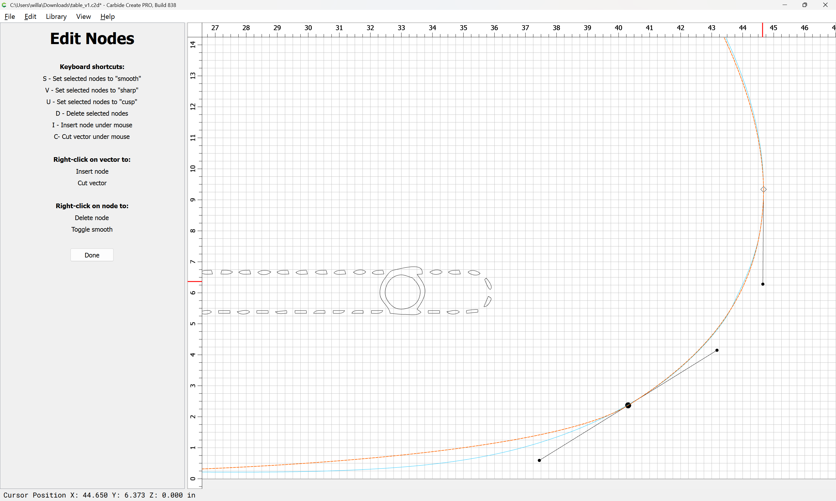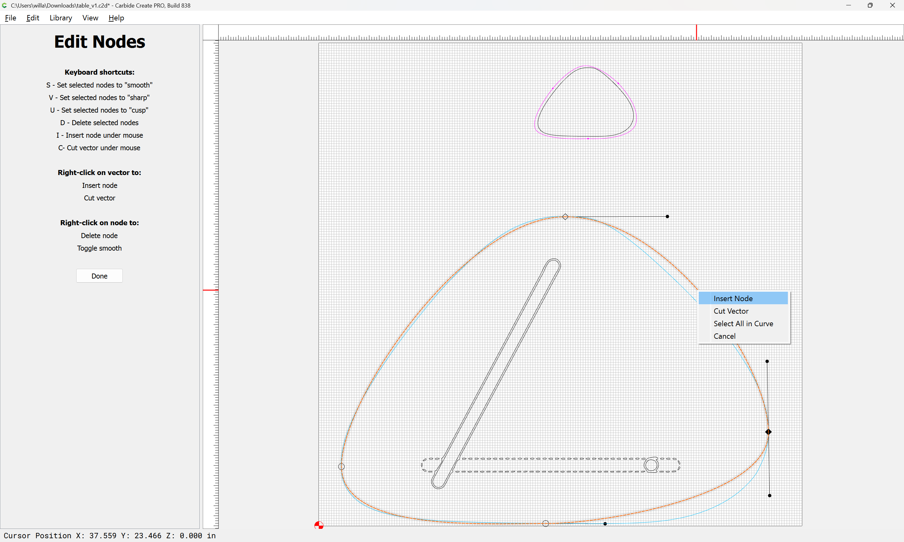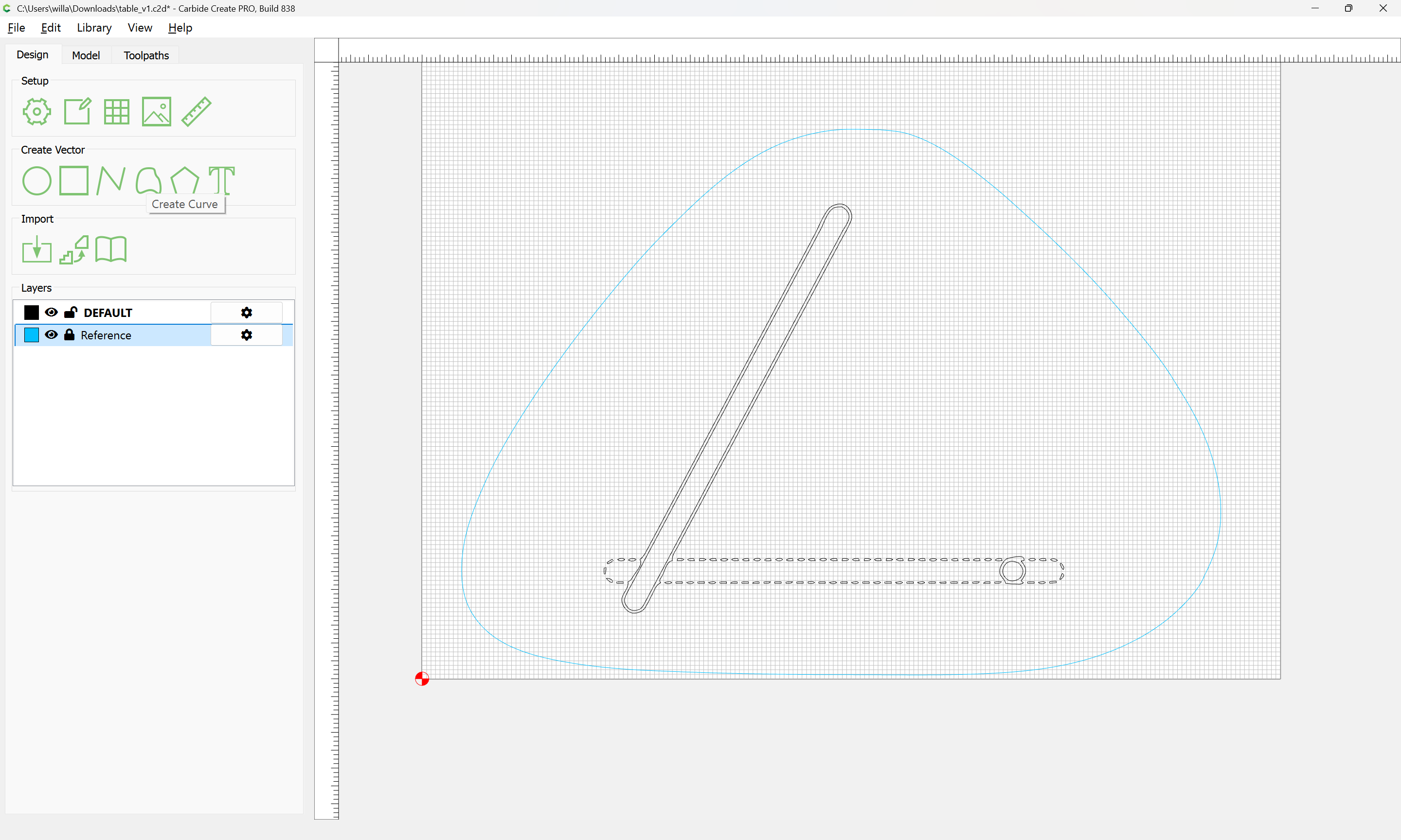 I am looking to create a similar table to the iconic Noguchi coffee table that features a triangular shape with differing rounded corners. That shape lends itself to the Curve tool very well, but I cannot for the life of me create a completely convex (no inward facing edges/nodes) shape using the curve tool alone. I always end up with one concave node. I’ve tried this in Carbide Create as well as the Bezier tool in Inkscape. Inkscape offers a little more flexibility in editing and rearranging the nodes as well as some “Simplify” tools to smooth things out, but in the end the shape ends up still having odd bumps, lumps, or other imperfections.