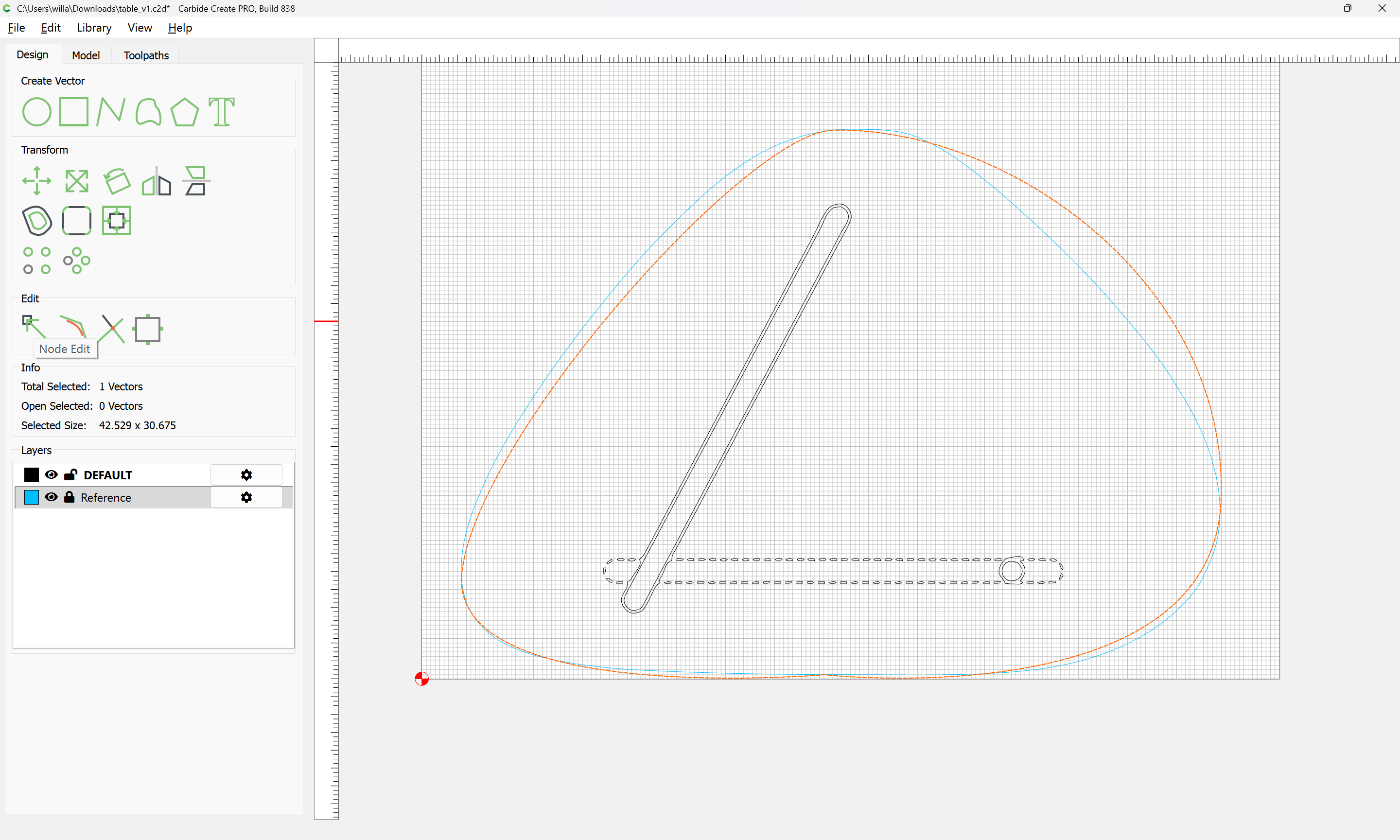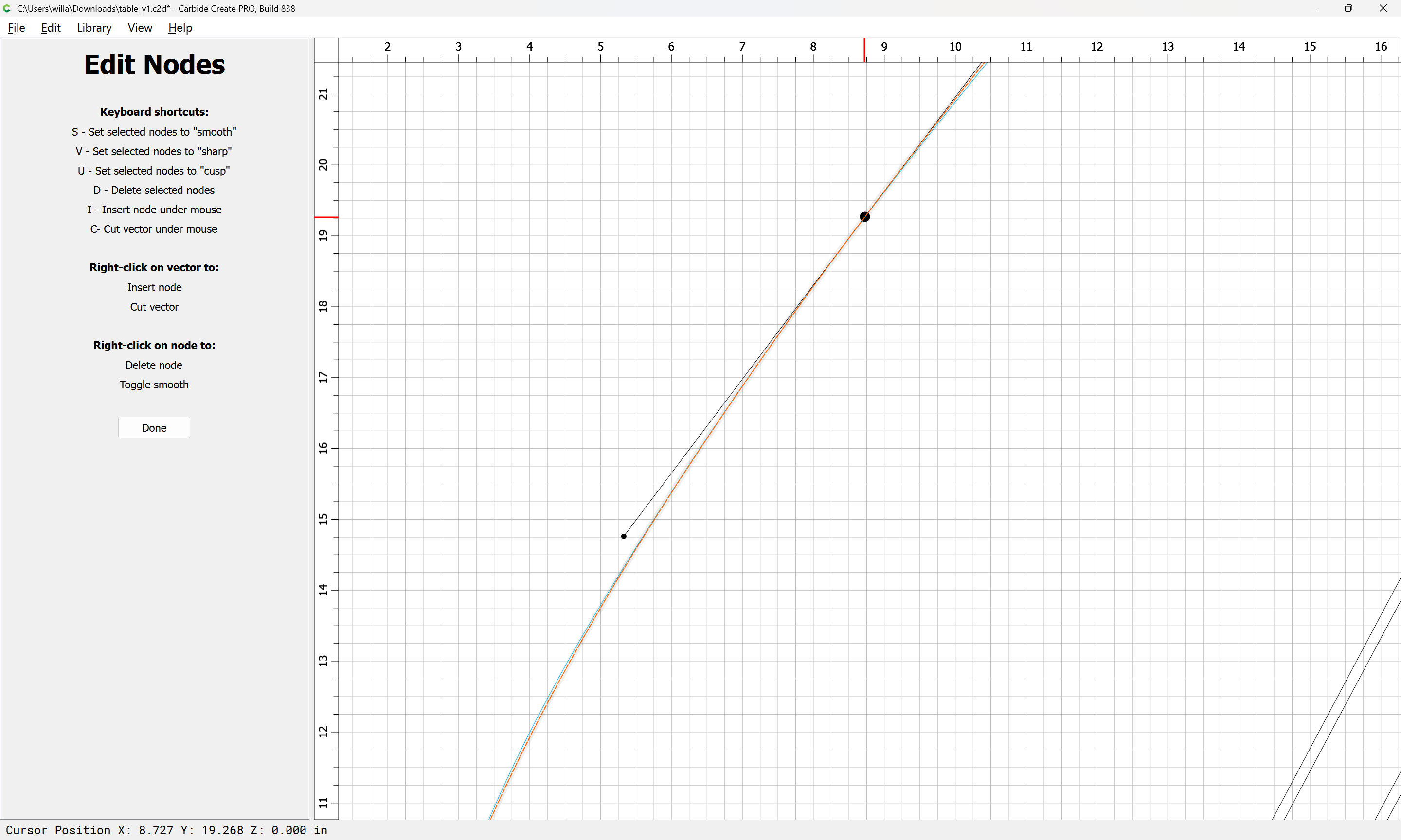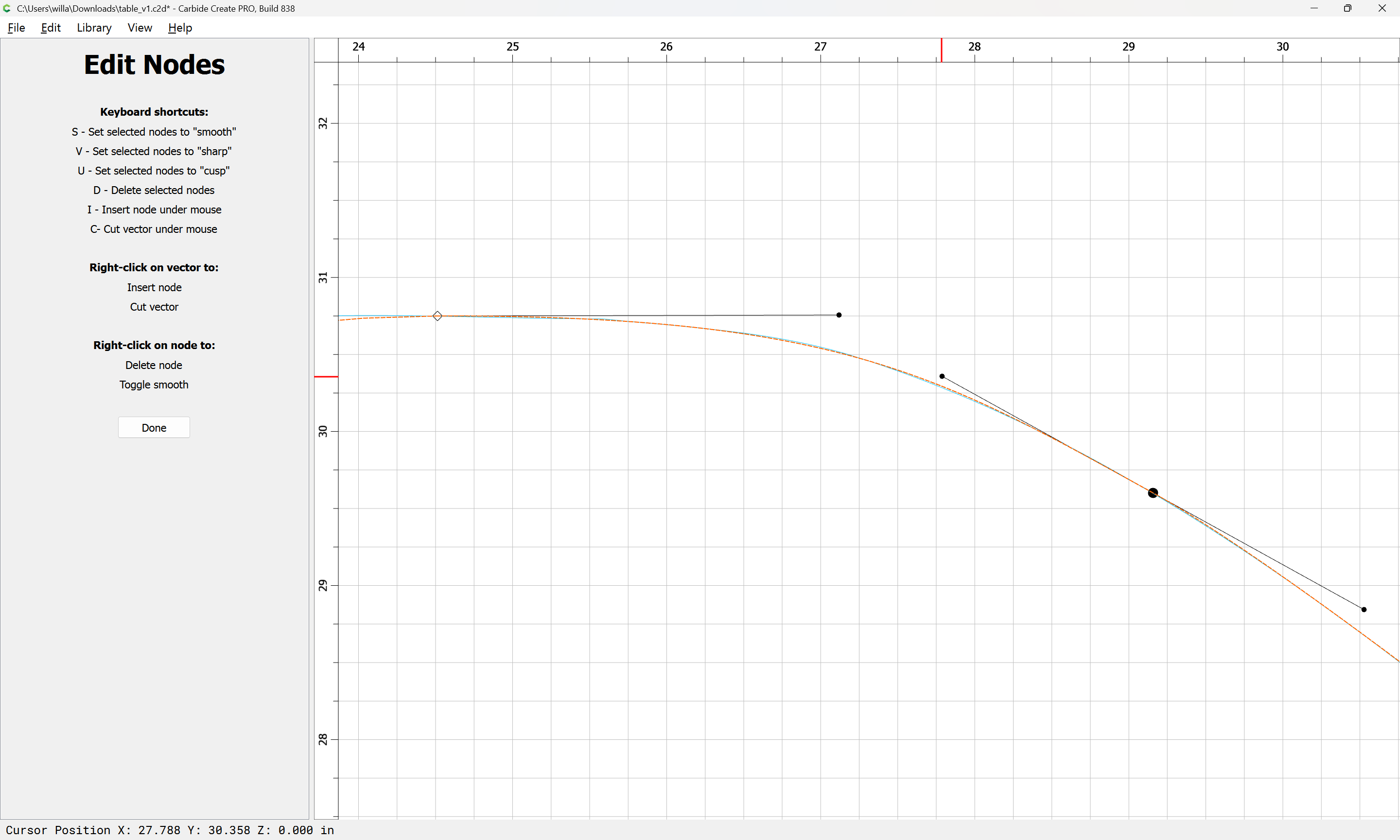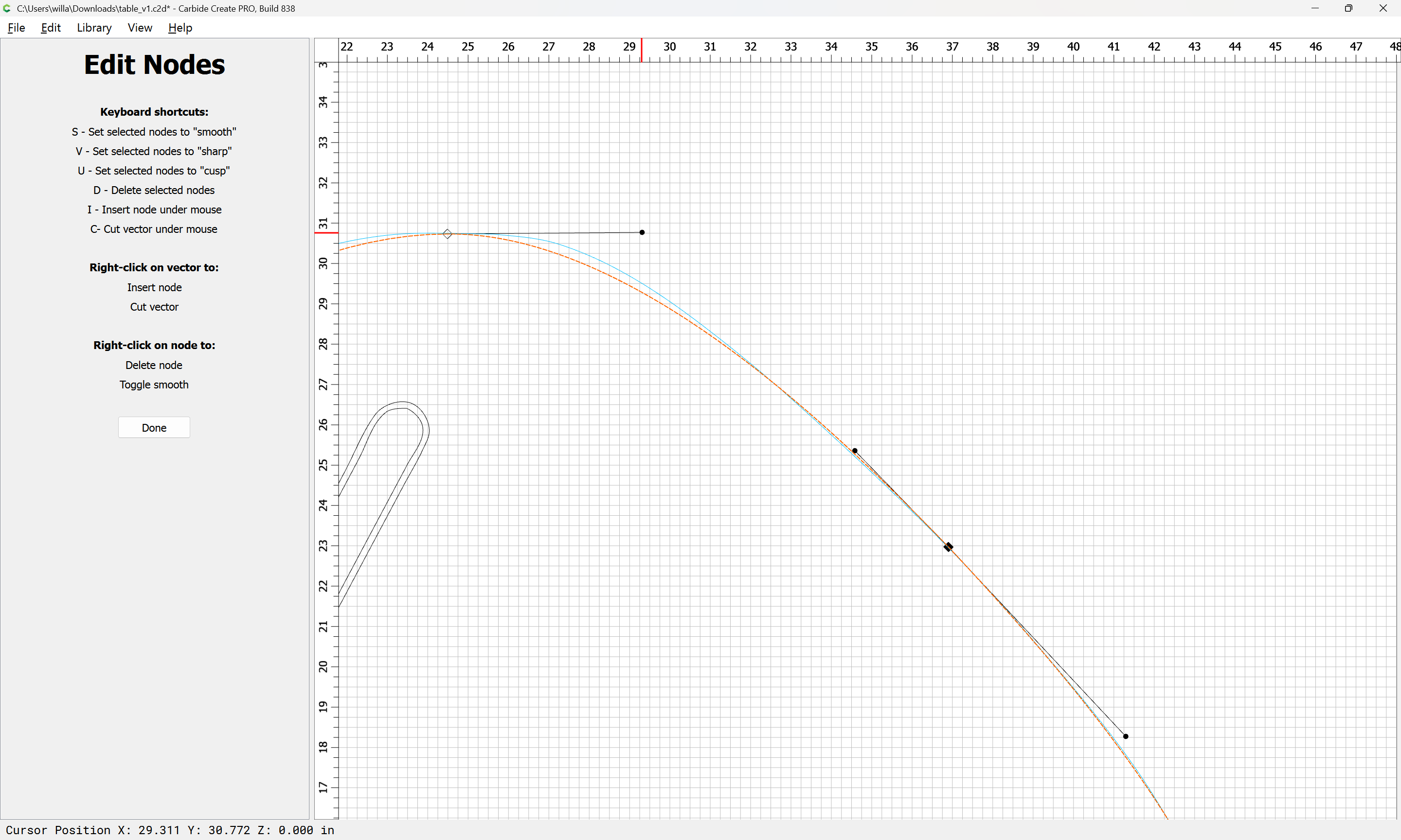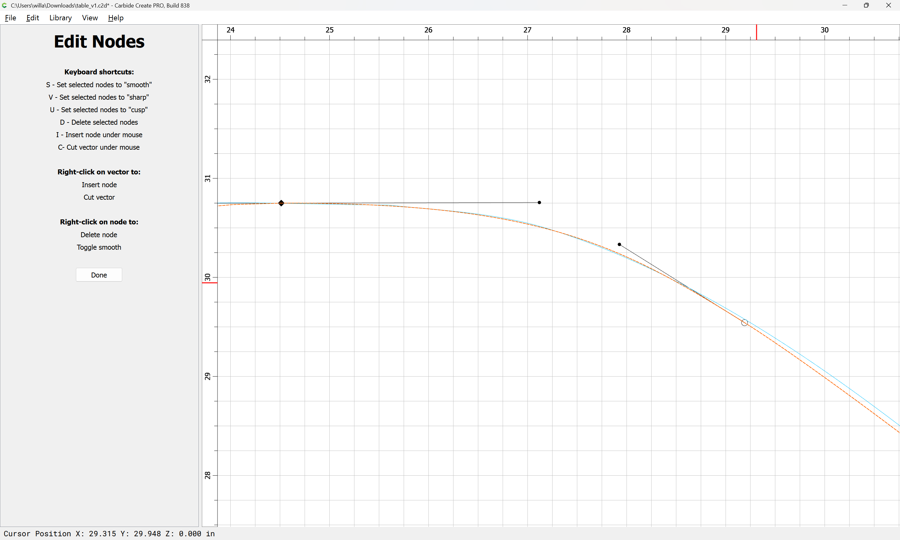 I am looking to create a similar table to the iconic Noguchi coffee table that features a triangular shape with differing rounded corners. That shape lends itself to the Curve tool very well, but I cannot for the life of me create a completely convex (no inward facing edges/nodes) shape using the curve tool alone. I always end up with one concave node. I’ve tried this in Carbide Create as well as the Bezier tool in Inkscape. Inkscape offers a little more flexibility in editing and rearranging the nodes as well as some “Simplify” tools to smooth things out, but in the end the shape ends up still having odd bumps, lumps, or other imperfections.