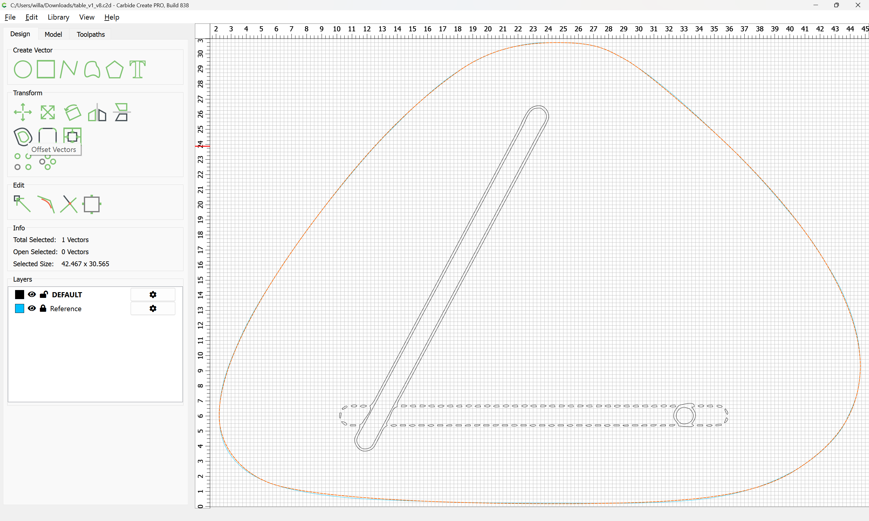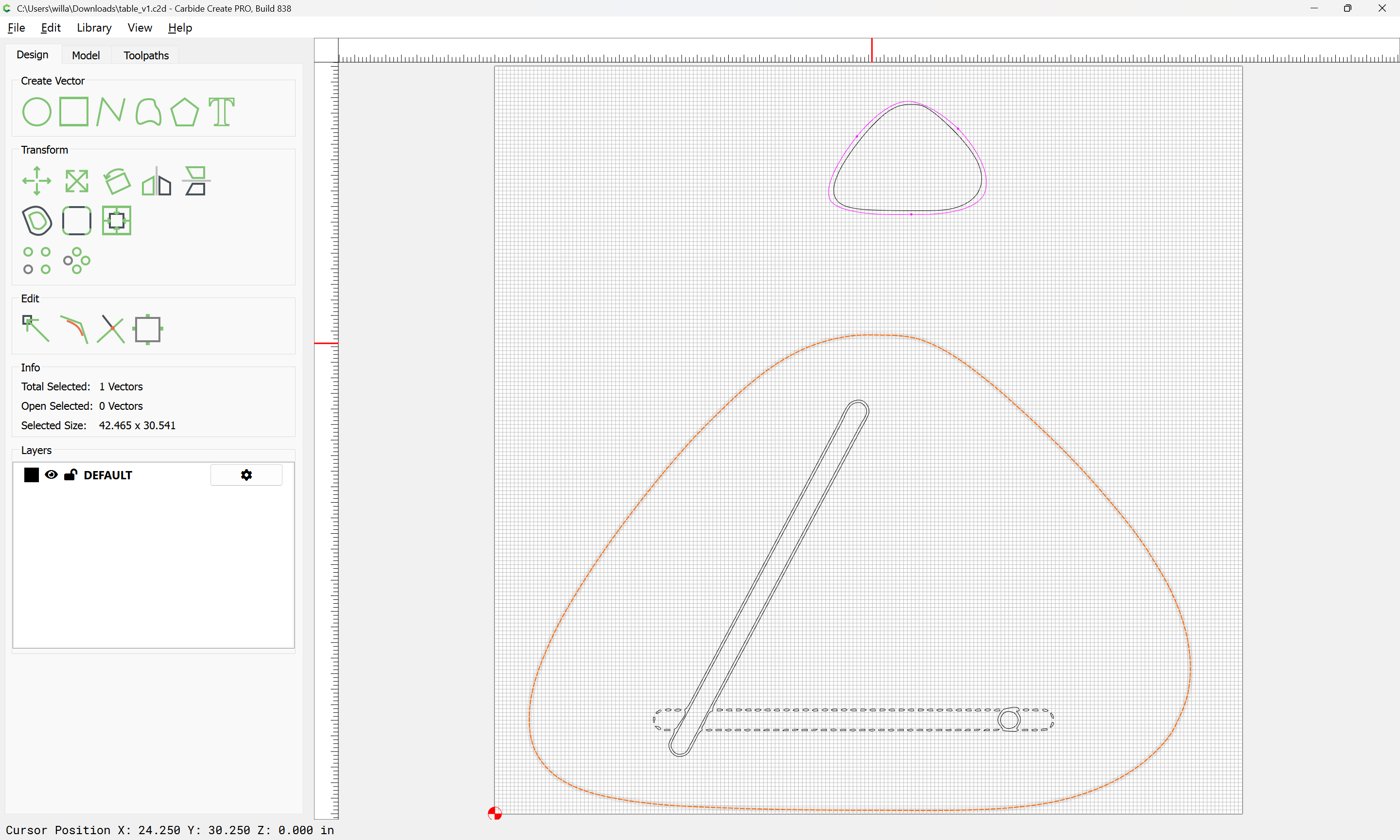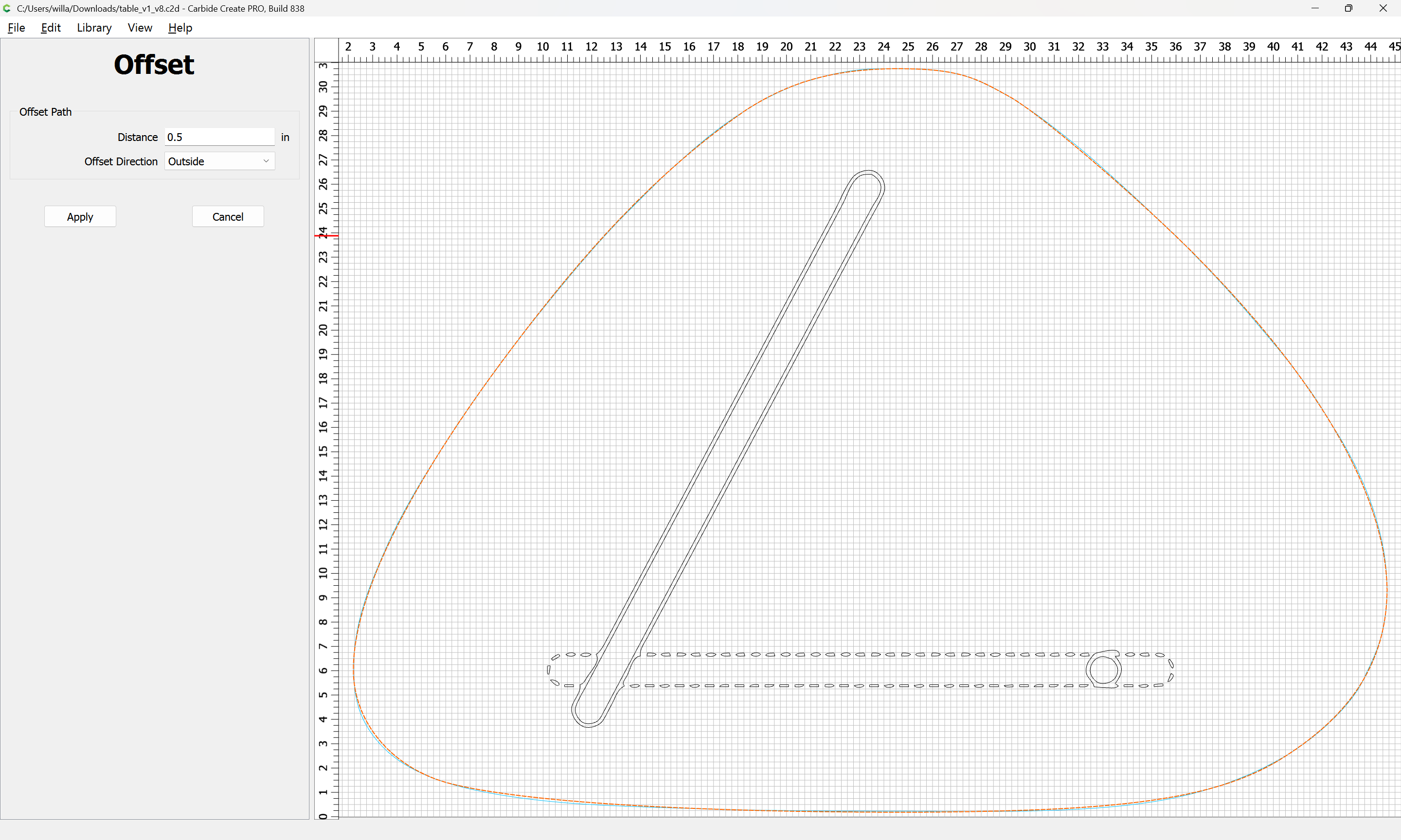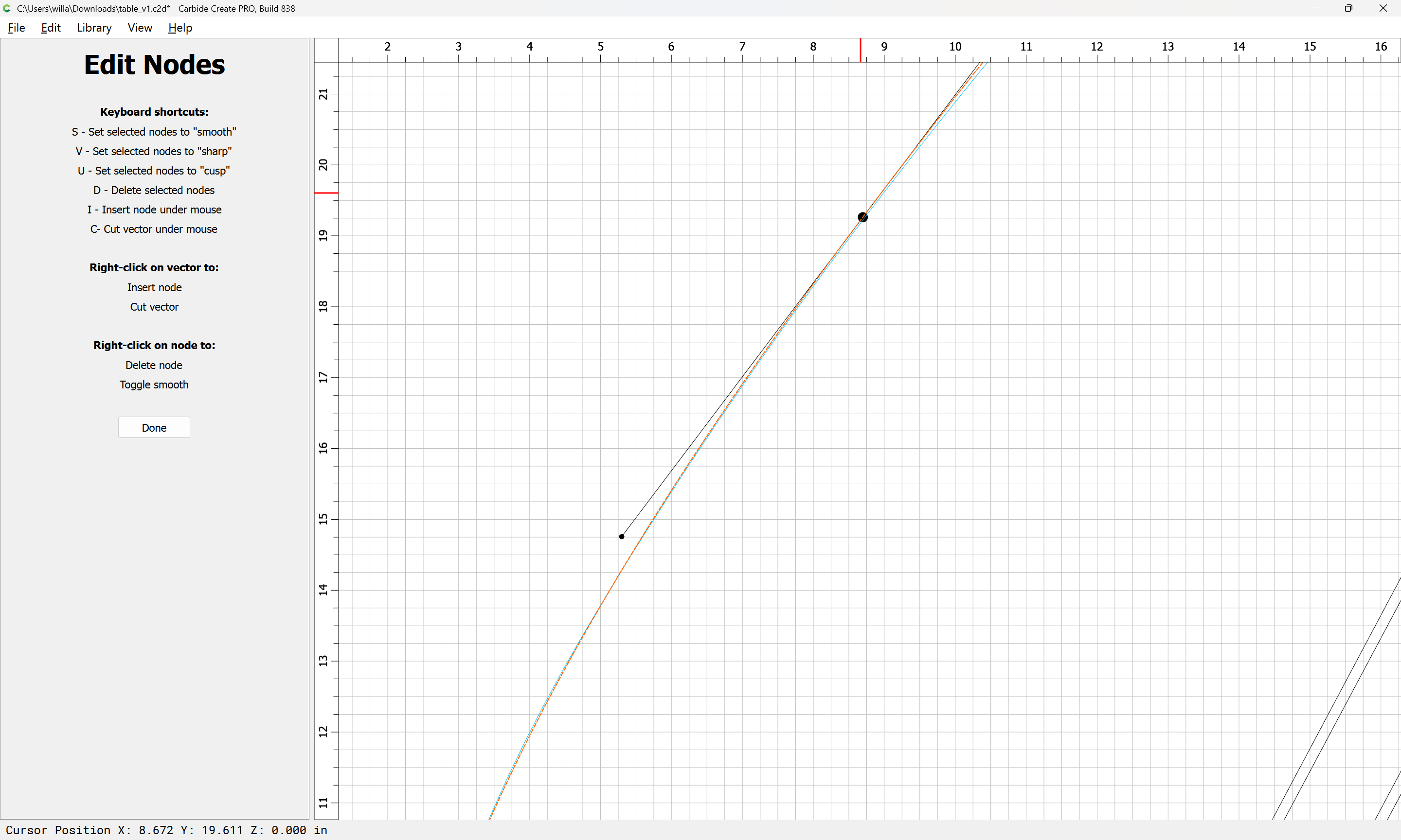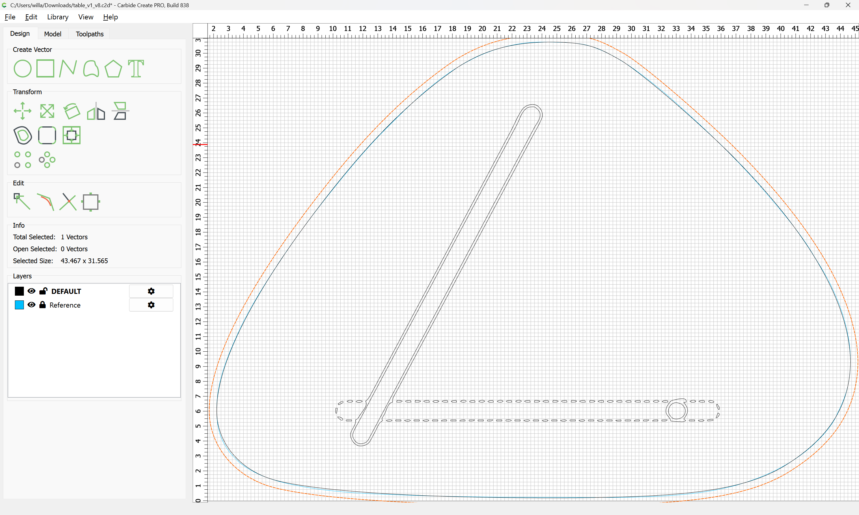 I am looking to create a similar table to the iconic Noguchi coffee table that features a triangular shape with differing rounded corners. That shape lends itself to the Curve tool very well, but I cannot for the life of me create a completely convex (no inward facing edges/nodes) shape using the curve tool alone. I always end up with one concave node. I’ve tried this in Carbide Create as well as the Bezier tool in Inkscape. Inkscape offers a little more flexibility in editing and rearranging the nodes as well as some “Simplify” tools to smooth things out, but in the end the shape ends up still having odd bumps, lumps, or other imperfections.