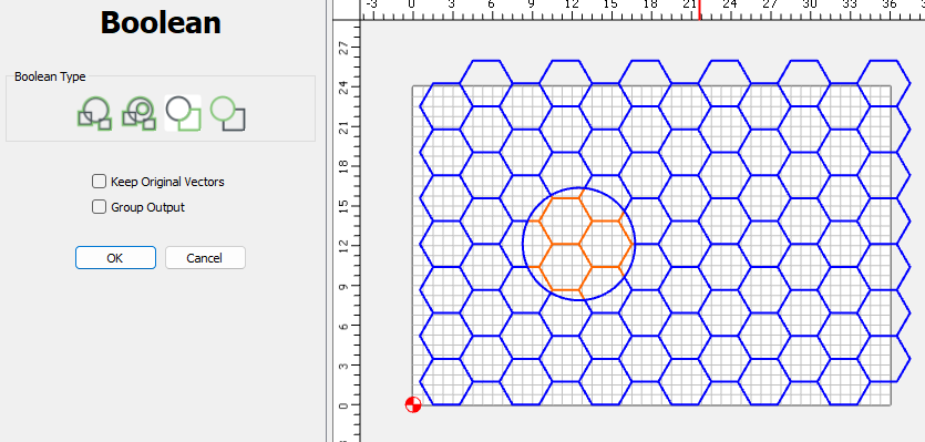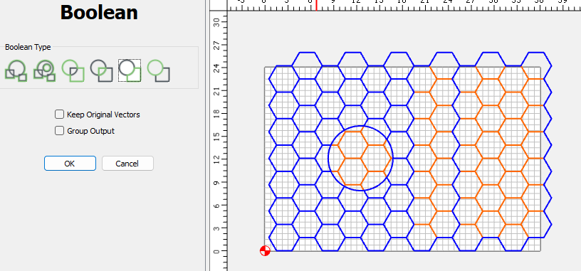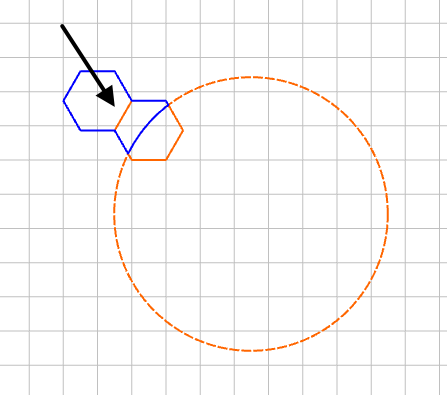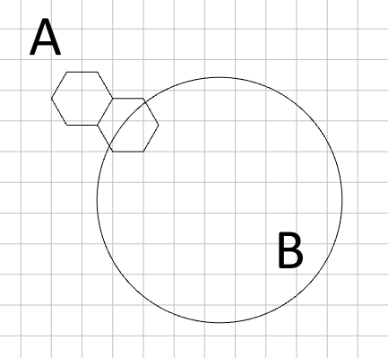 I typically have a group of polygons - in this example, two hexagons joined together (A). They are intersected by a circle (B) and I want to remove everything inside the circle (leaving the intersection circle arc). Note that in this example, the order that A or B is selected doesn’t change the results.