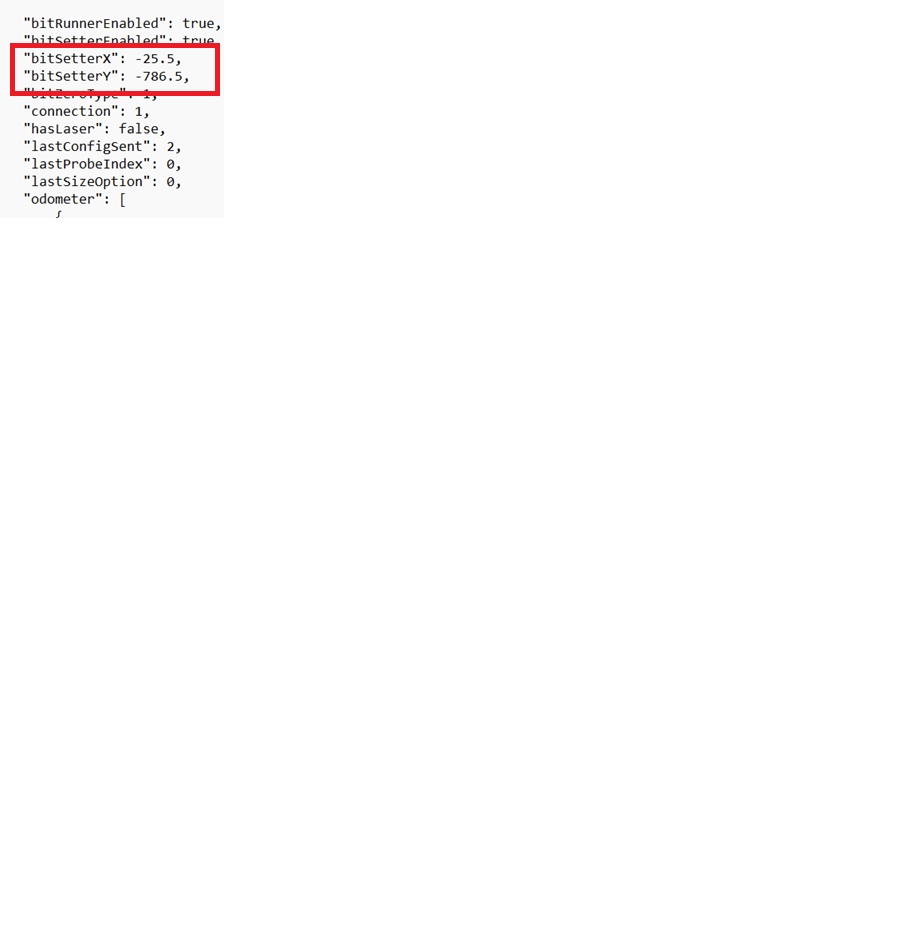 In the shapeoko.json file is the position set during setup of your BitSetter. The numbers are negative. When you initialize homing position is “Zero” position. All movements are negative relative to the home position. (machine internal coordinates).