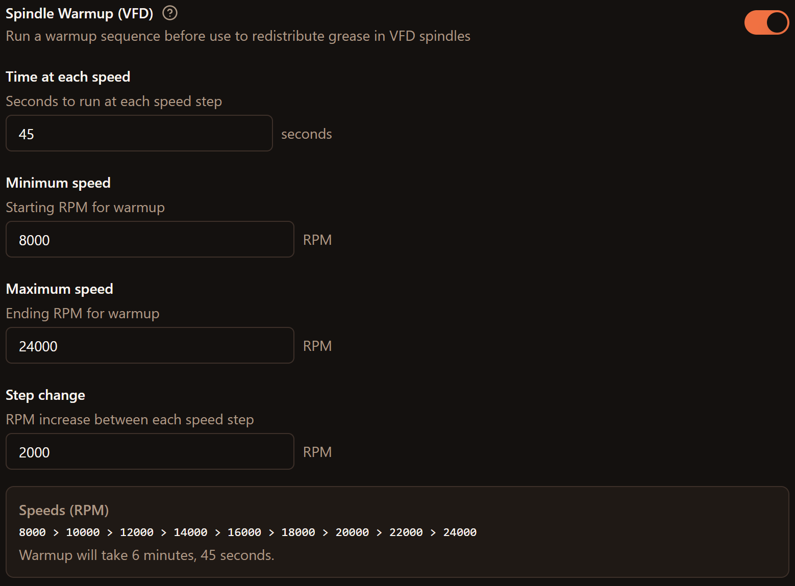I have Stop Spindle disabled while Warmup is running. Maybe I’ll just hide it while warmup is running to make it simpler. They do the same thing.