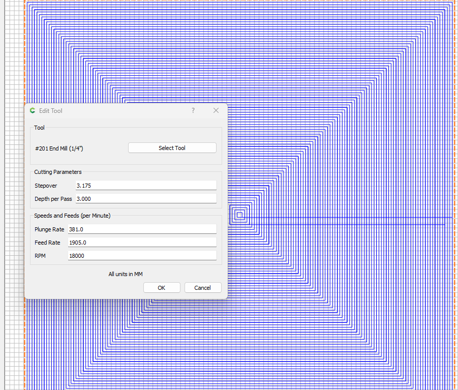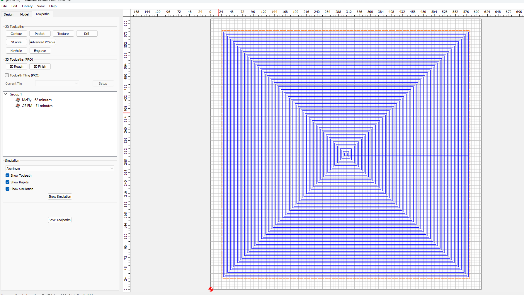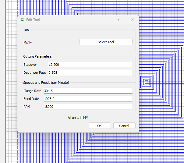 Can you push the McFly, sure you can, but it’s really designed for surfacing, not pocketing. Besides, you will end up with some areas that are missed since the diameter is 1".