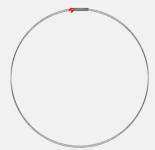 I temporarily enlarged the canvas size and drew two circles of the required radius, then chopped off desired segments. This worked, but cutting on the machine was very slow because there were four tool paths instead of just one. Each path was cut one at a time and not in order according to position. Very inefficient. By the way, that reminds me of another question, is there any way to re-order the segments when drawn or to combine them into one tool path?
