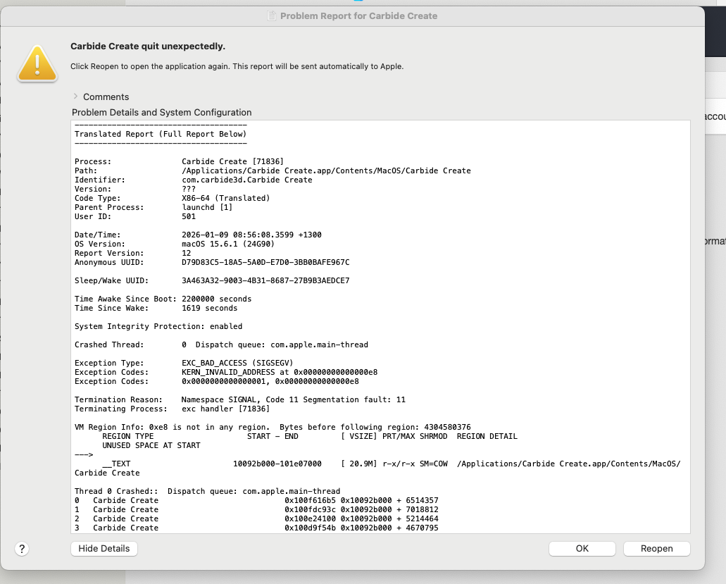 If you could save that as a .txt (or .log?) file and send it in to us at support@carbide3d.com we’ll do our best to look into it.