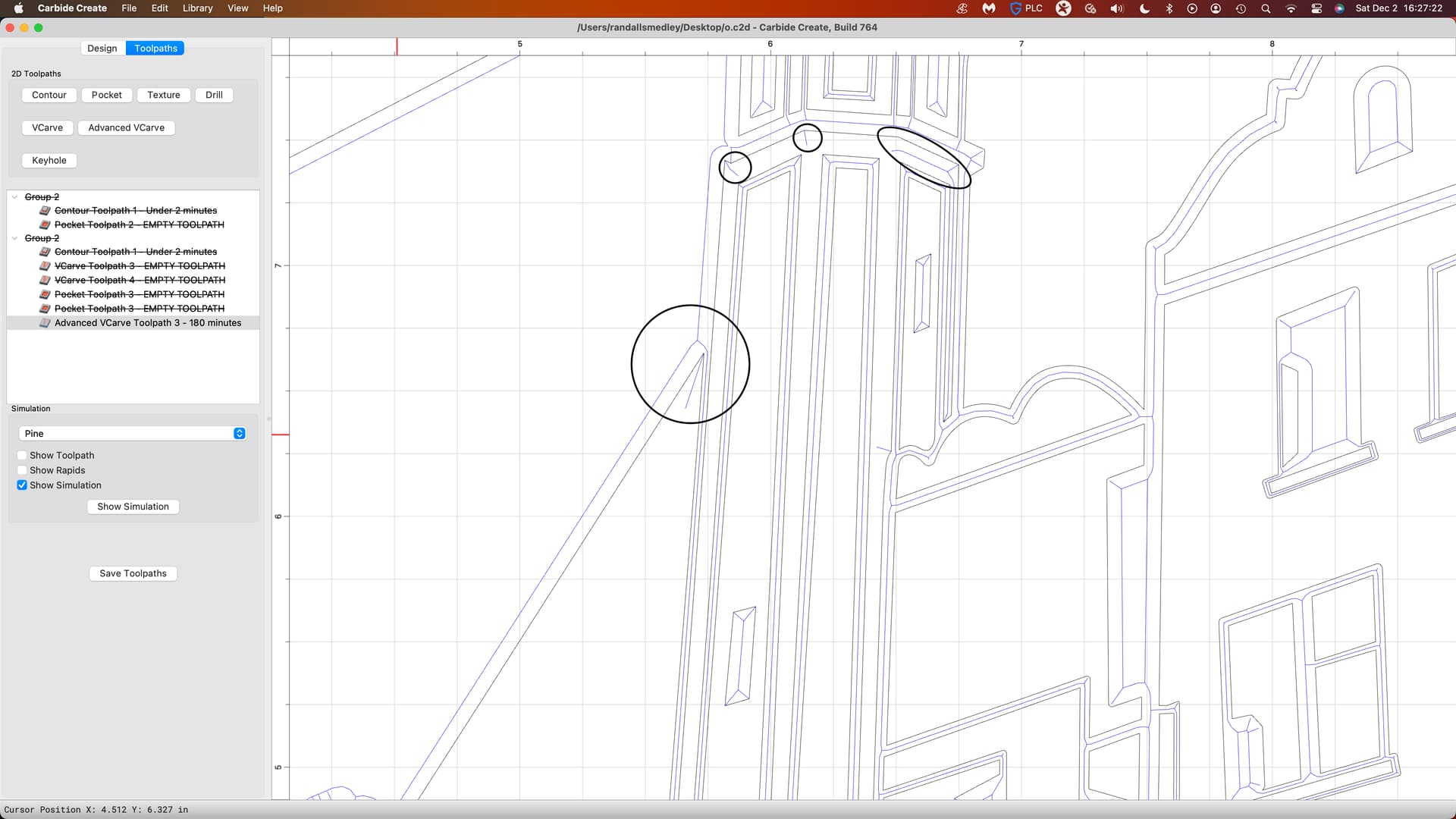 I recently adjusted some of the lines in a file in which I carved before but now there are extra/random tool paths that have appeared in the corners of some of the lines that should not be there. Is this caused by some lines overlapping maybe? I’ve been trying to figure it out but can’t seem to get them to go away. I already started my carving otherwise I would have just started from scratch.