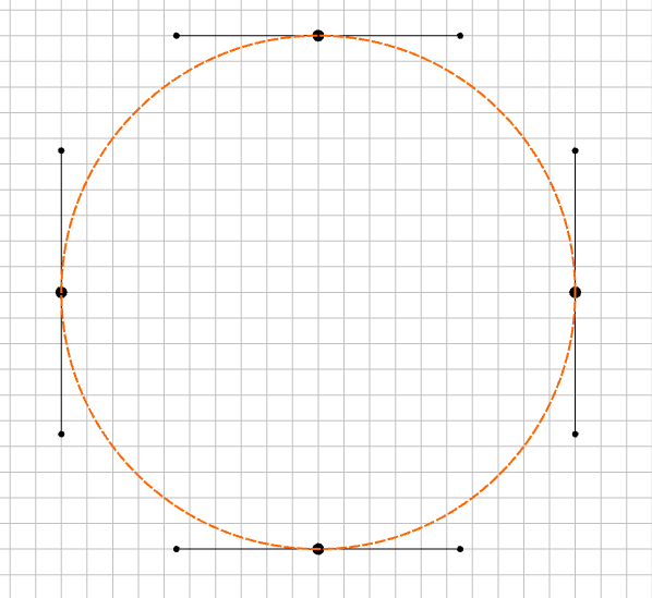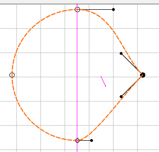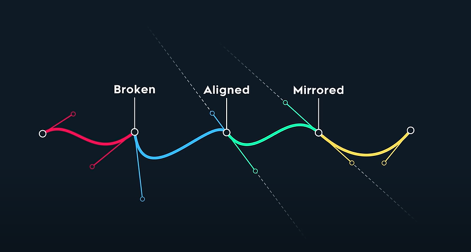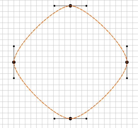 When drawing with a Bézier curve, there are several possible relationships between the on-curve node and the two associated off-curve nodes.