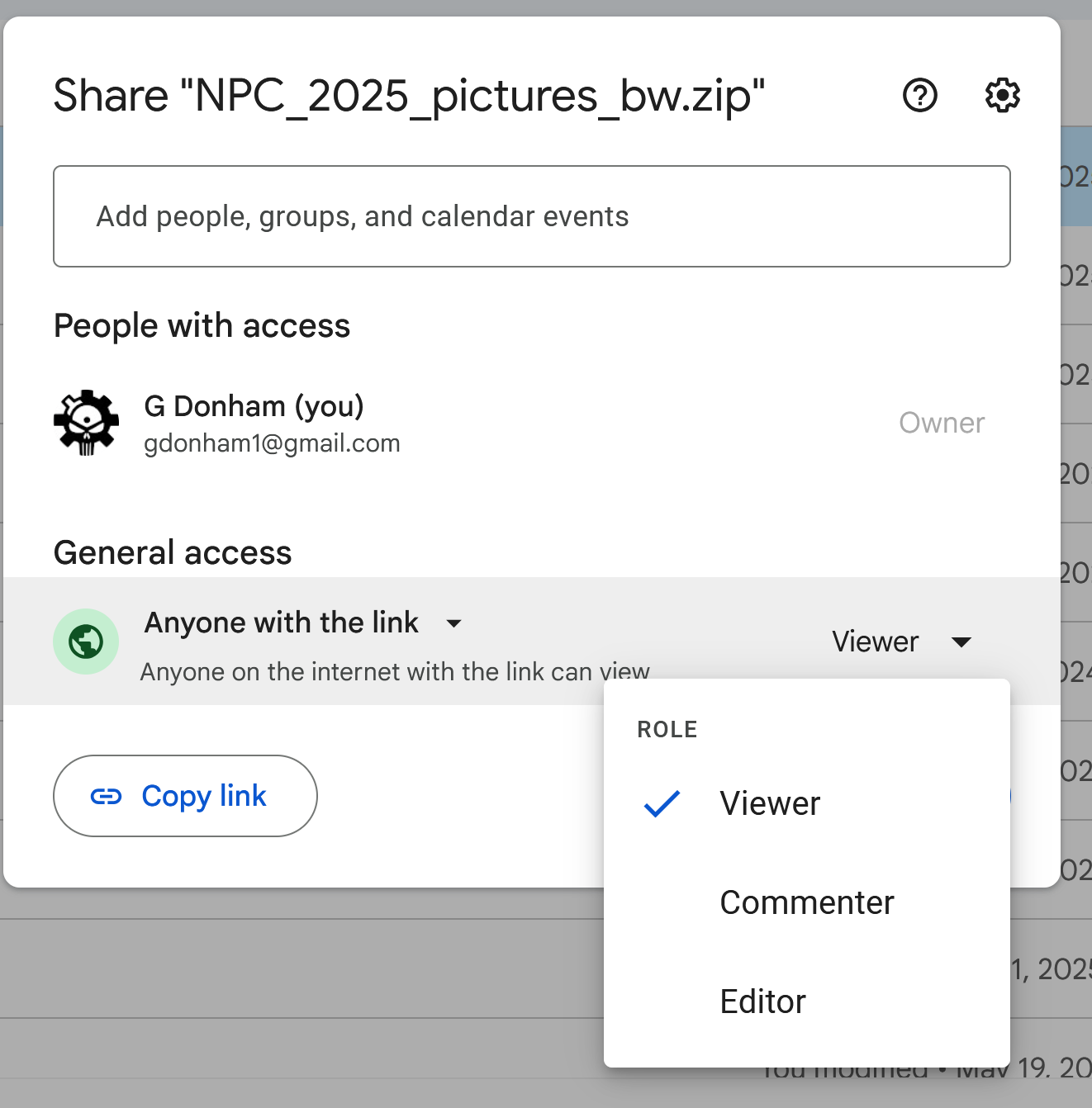 I generally use Anyone with the link because I am emailing a specific person. They could share the link but my files are not super secret. However to only allow a certain person choose only view.