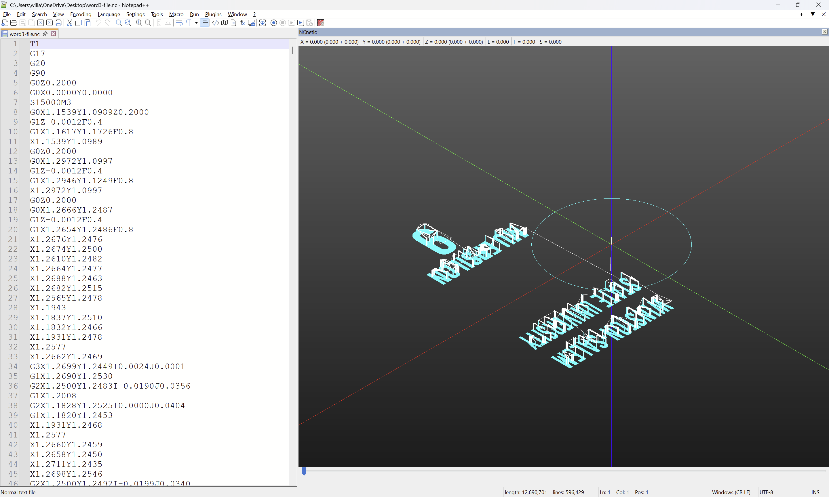 I’ve adjusted this to a min cut depth like .0125 and I still get an error which leads me to believe that this is a software issue. This appears to only happen when trying to cut text. Cutting pockets and or cutting out the project overall appears to have no issues at all. word3-file (3).zip (3.1 MB)