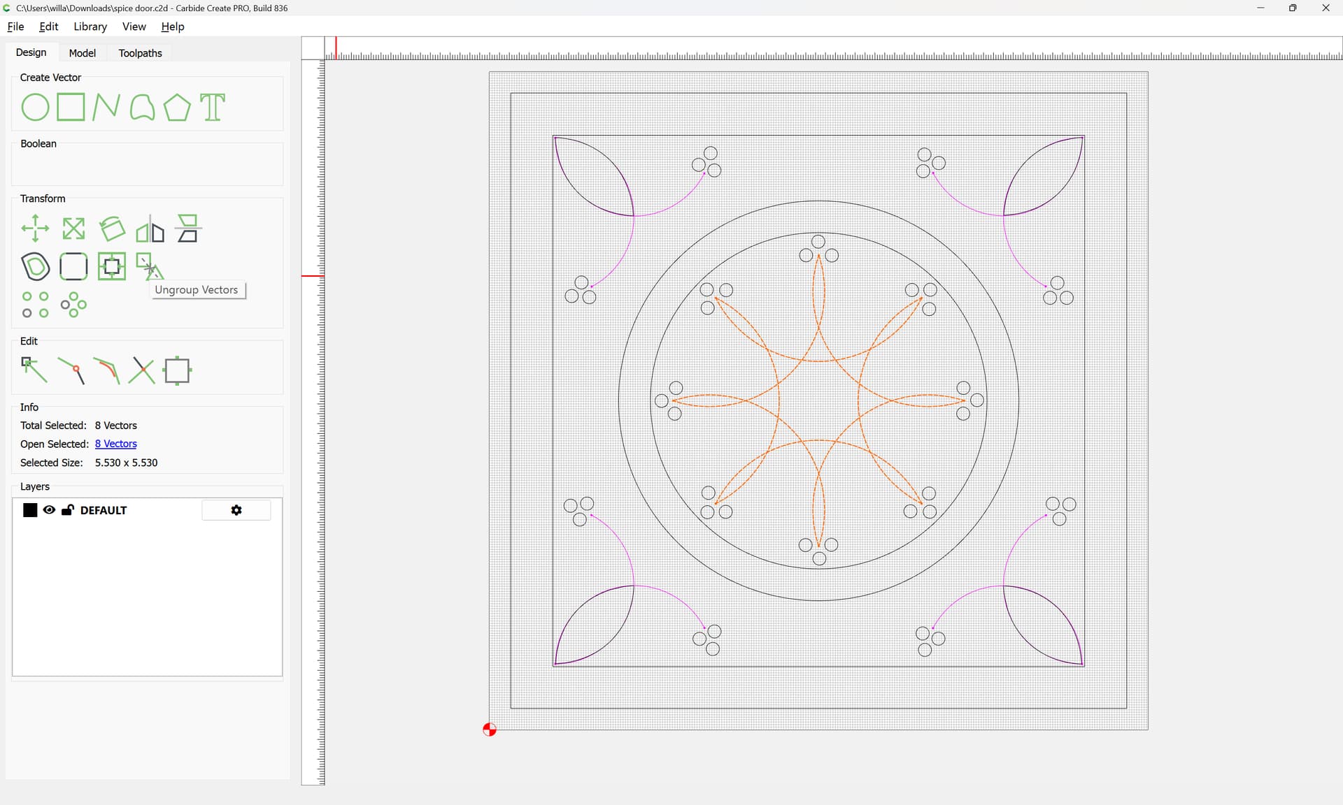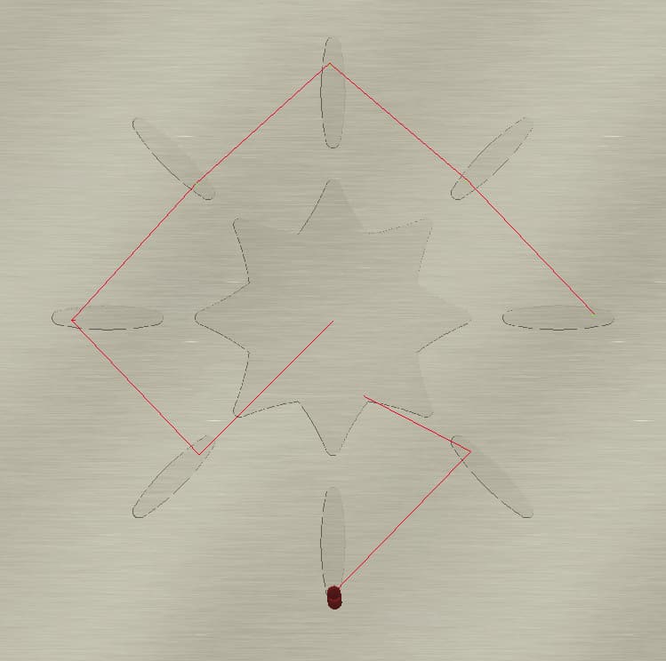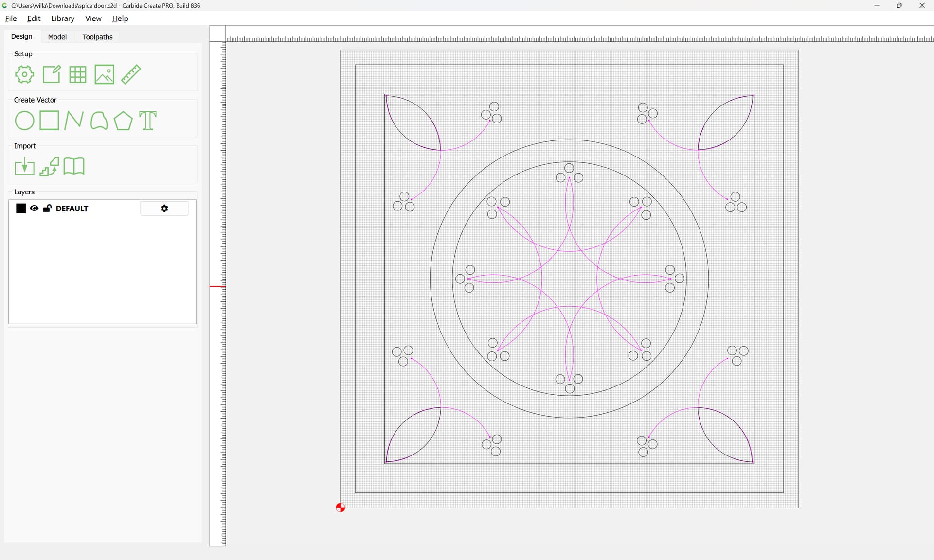 The thing is, this sort of design is typically done as chip carving, which involves cuts at an angle, but one also removes closed in areas as is done at the corners in the closed geometry which has been created: