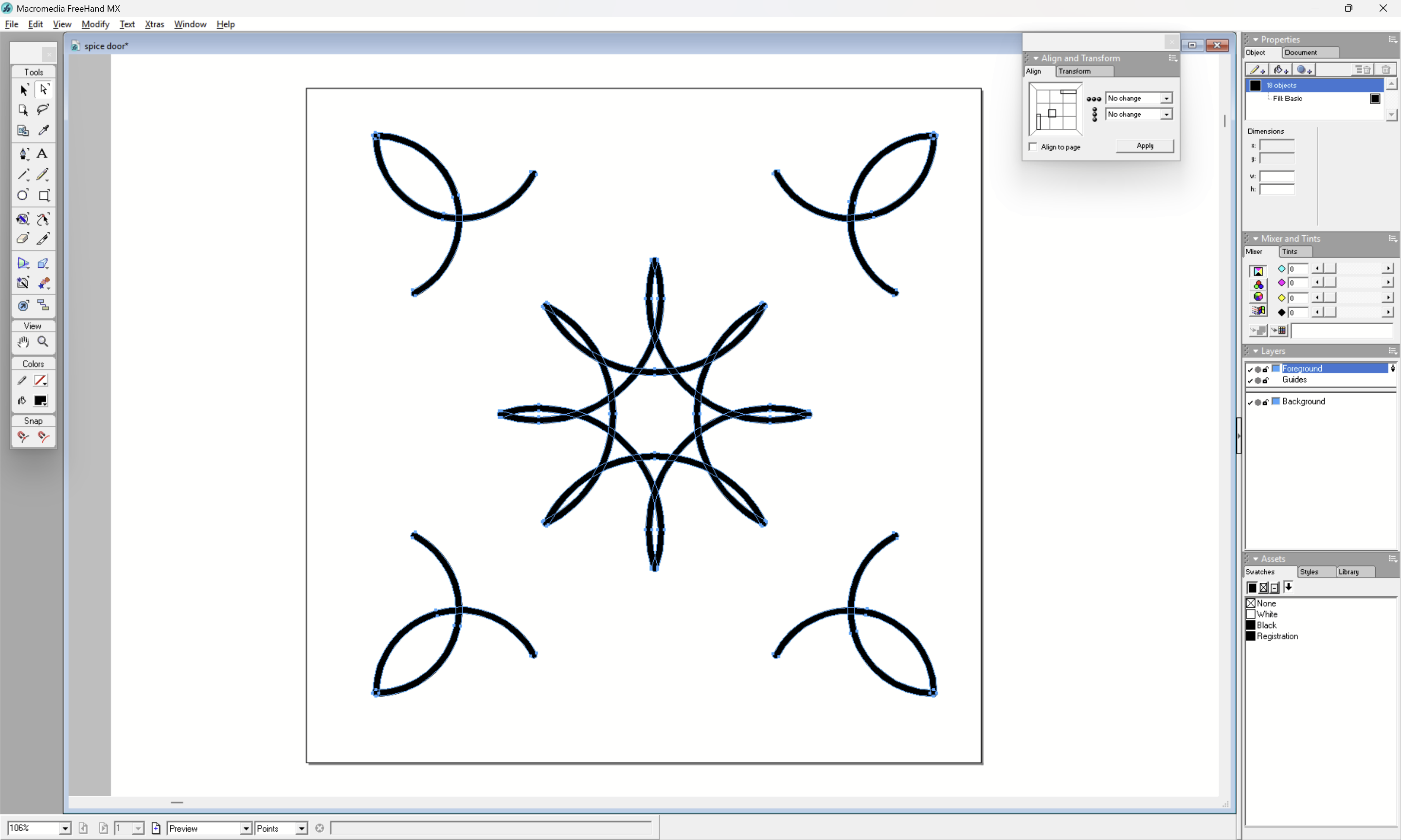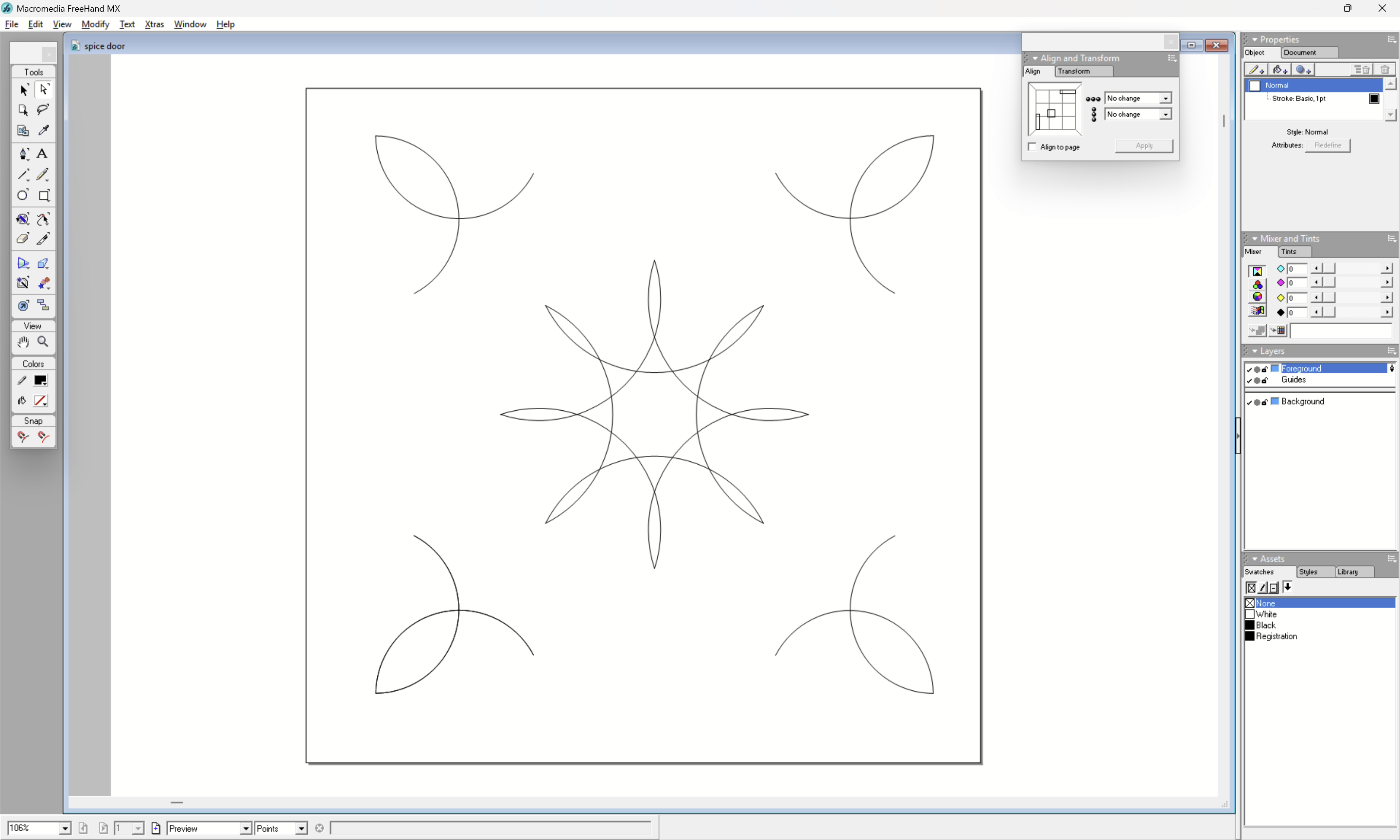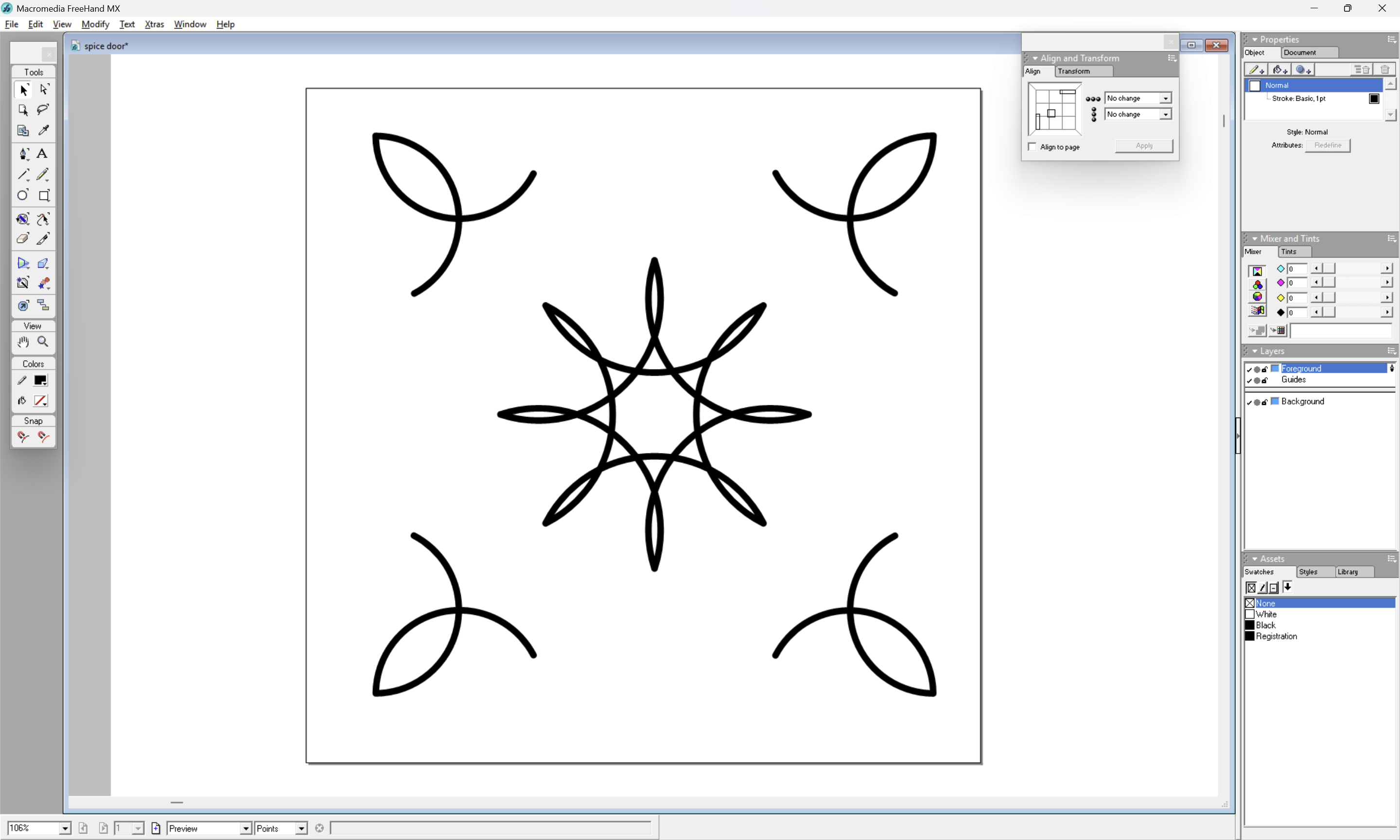 The thing is, this sort of design is typically done as chip carving, which involves cuts at an angle, but one also removes closed in areas as is done at the corners in the closed geometry which has been created: