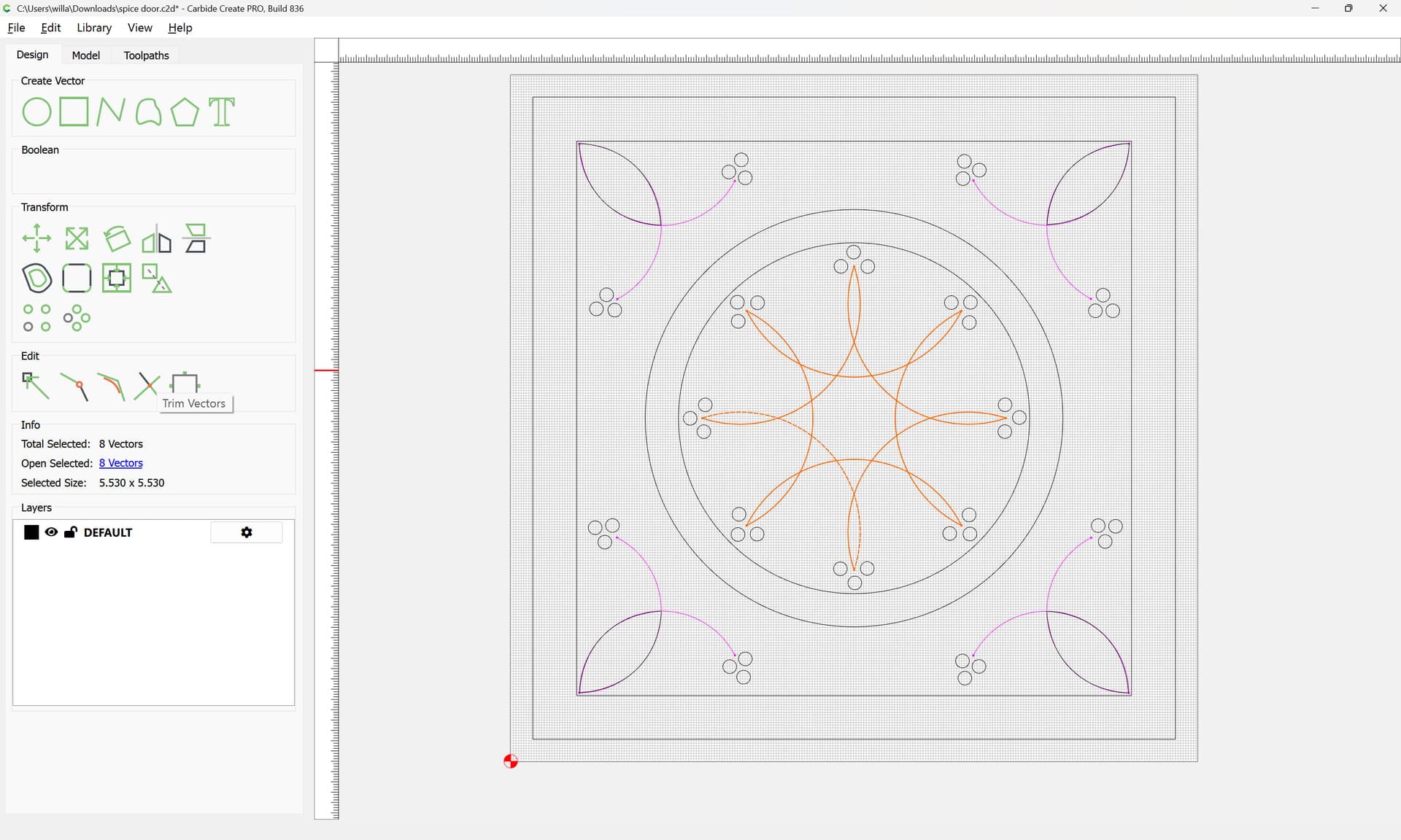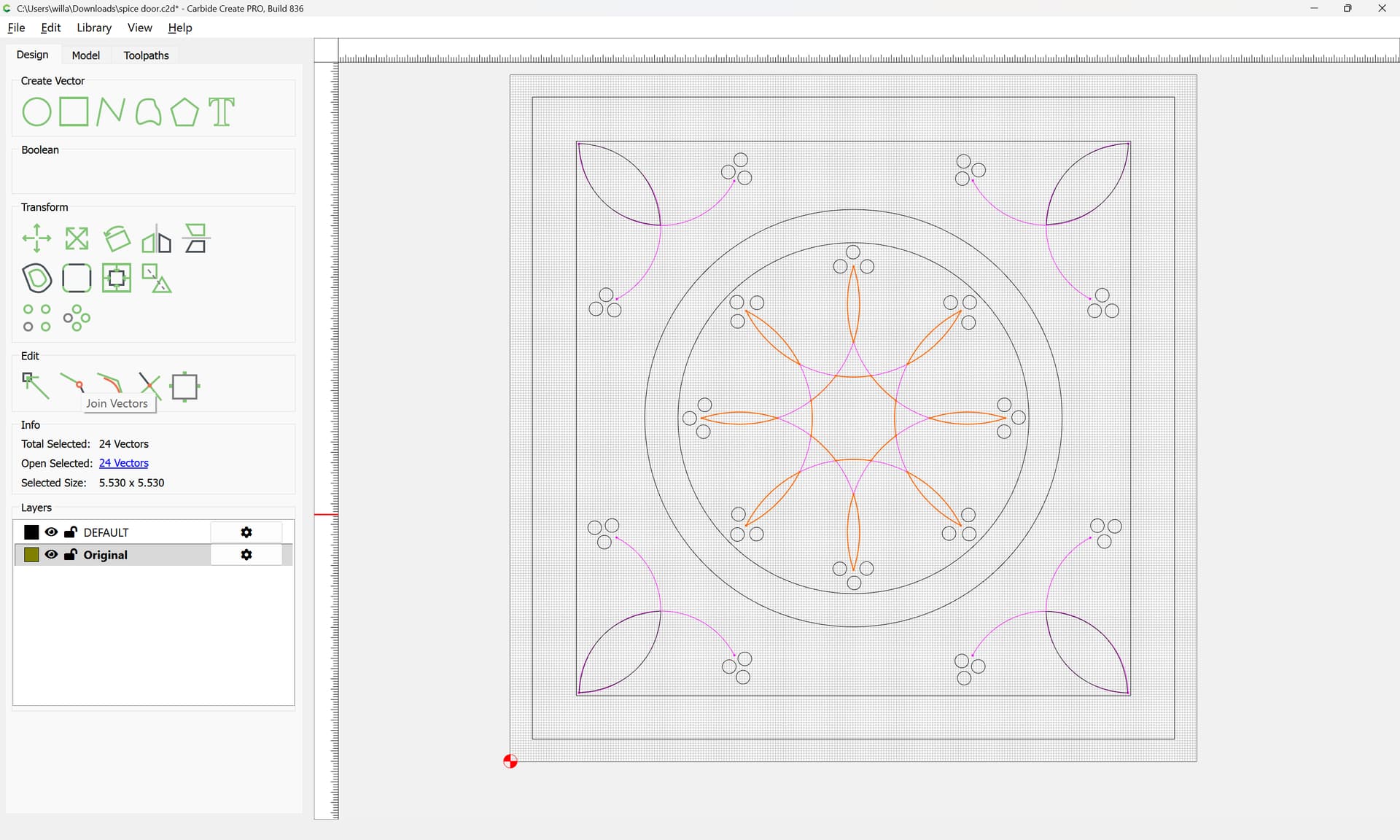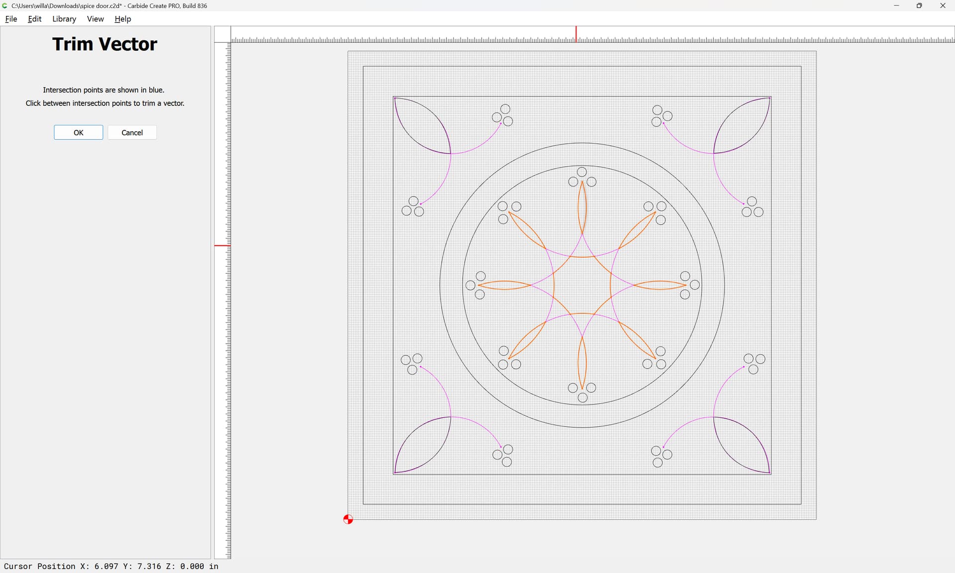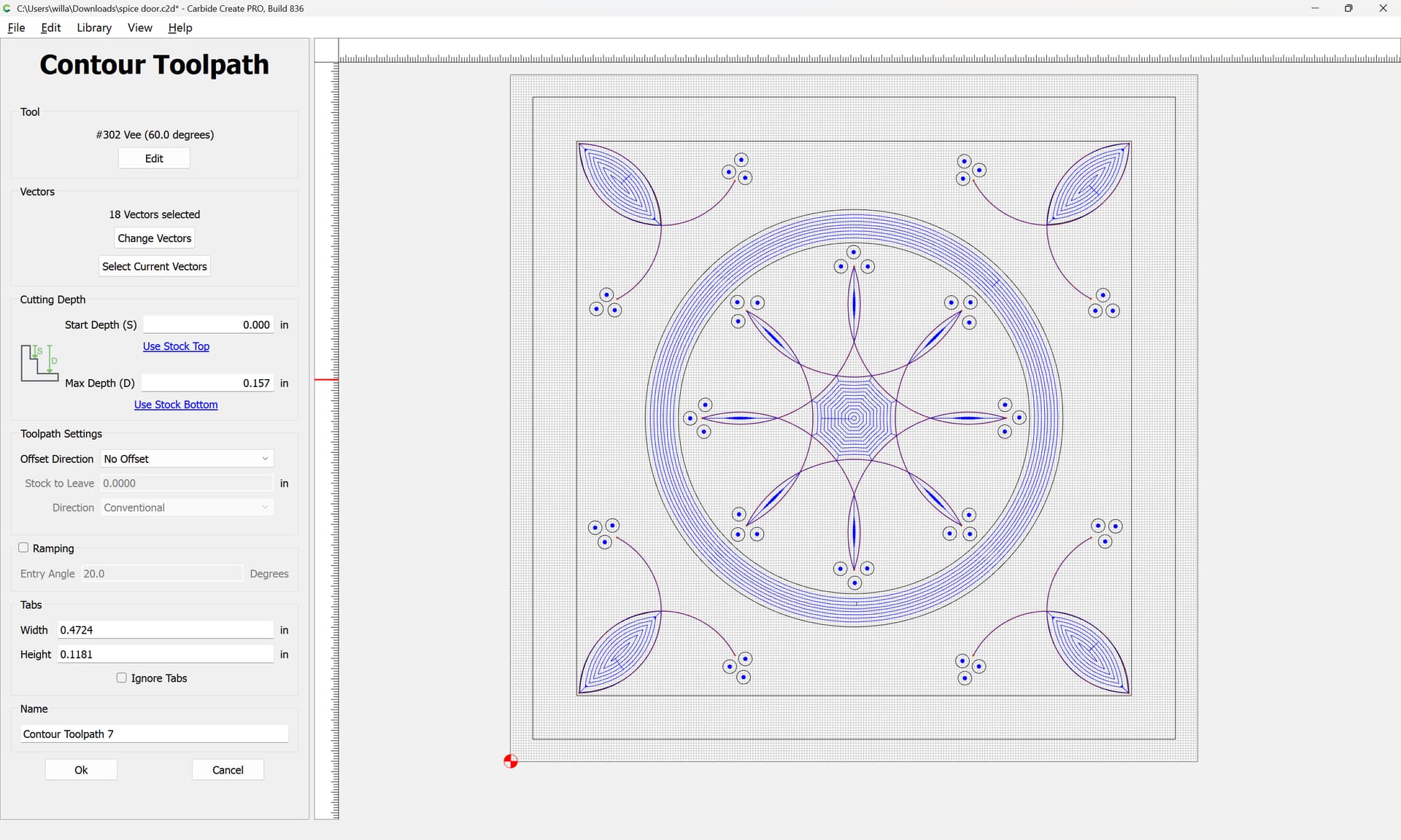 Thank you, Being new to Carbide Create your help was greatly appreciated. I now have a workable file. The chip carving aspect is interesting, but I will be doing inlays on this project.