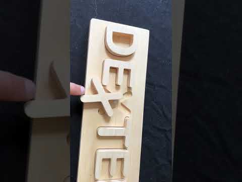 Children’s name puzzles with embeded magnets. My thought was that these not only double as letters for the fridge but the magnetic snap adds tactile reinforcement/encouragement when the letter is guessed correctly.