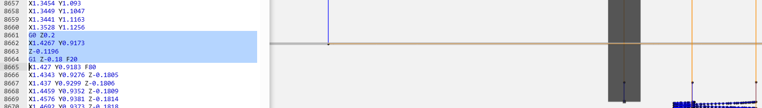 The issue I’m running into at this point is the pesky transitions from one tool path to another from the original 3d. These lead ins and lead outs are harder to automagically detect than I would have thought.