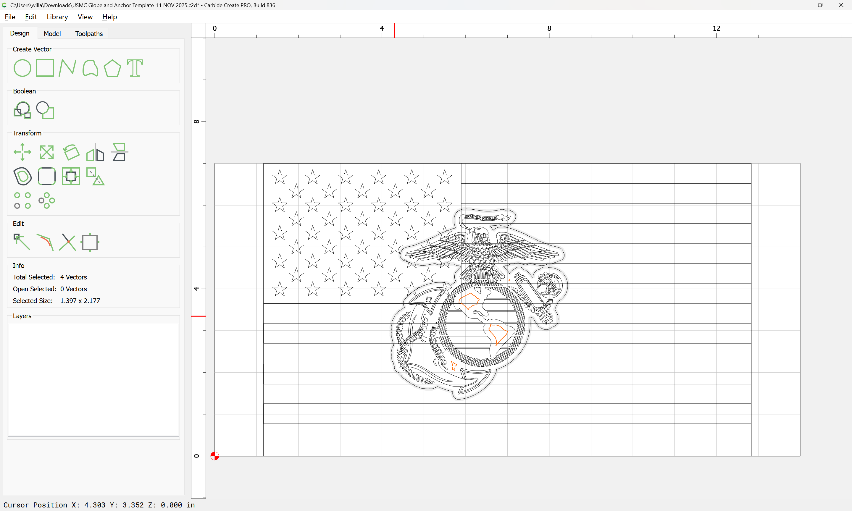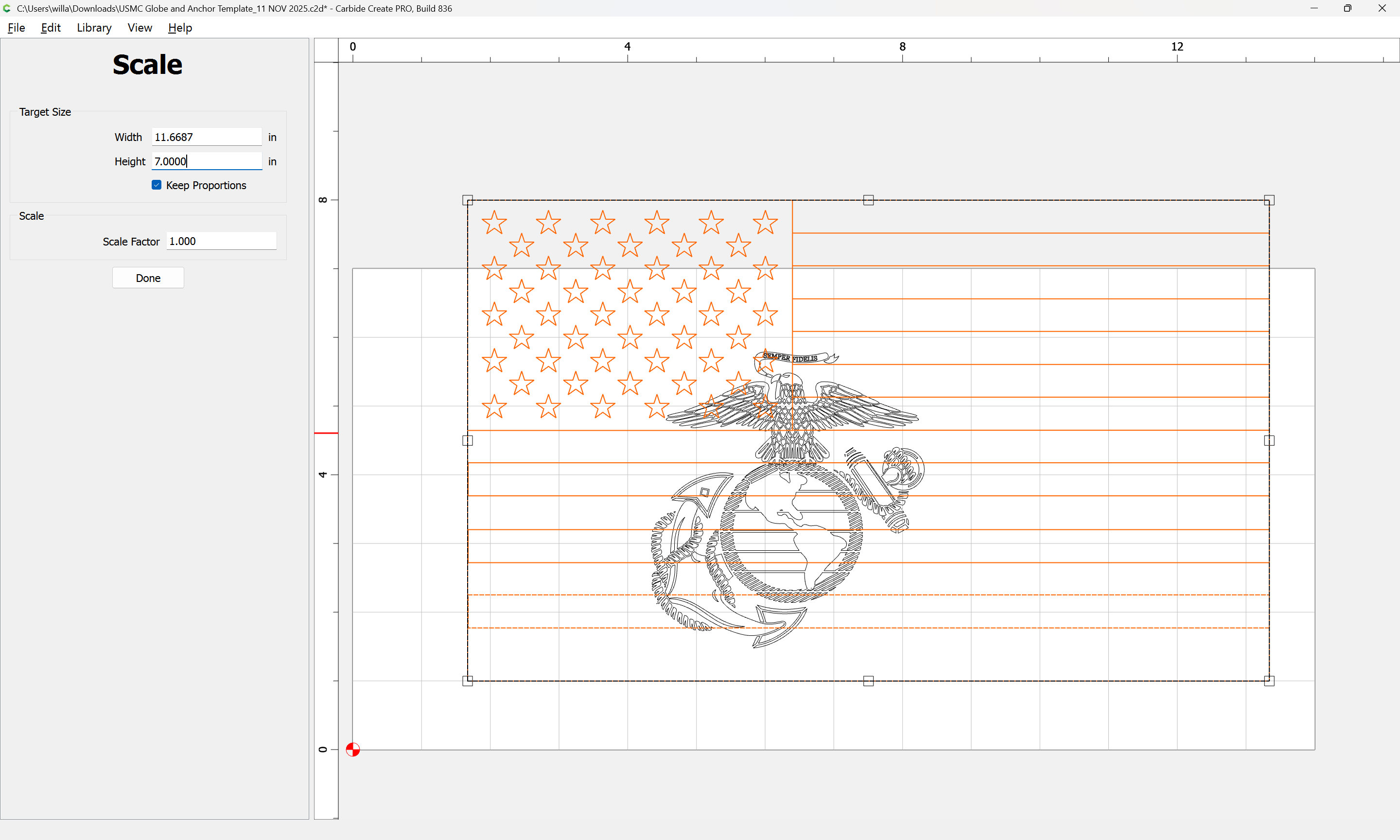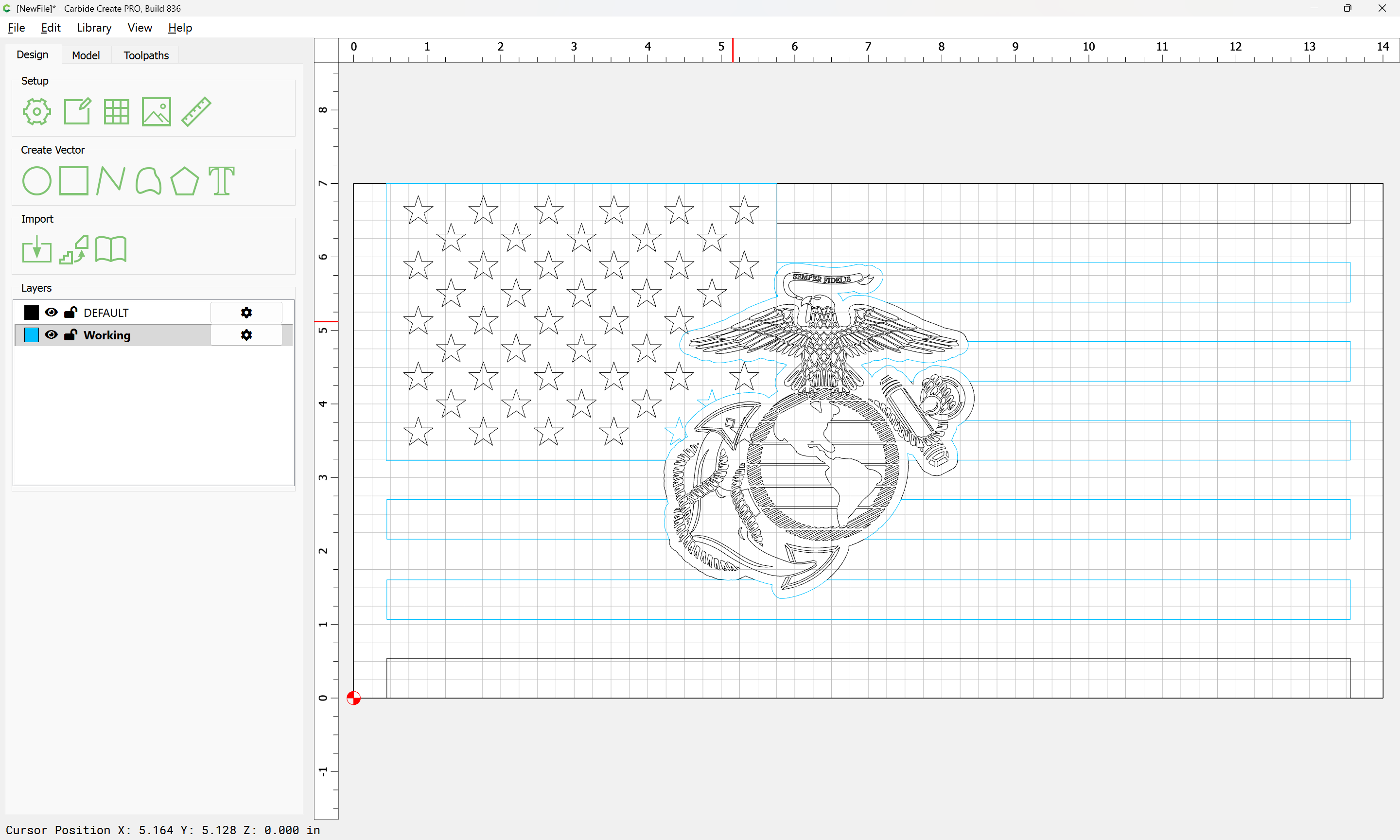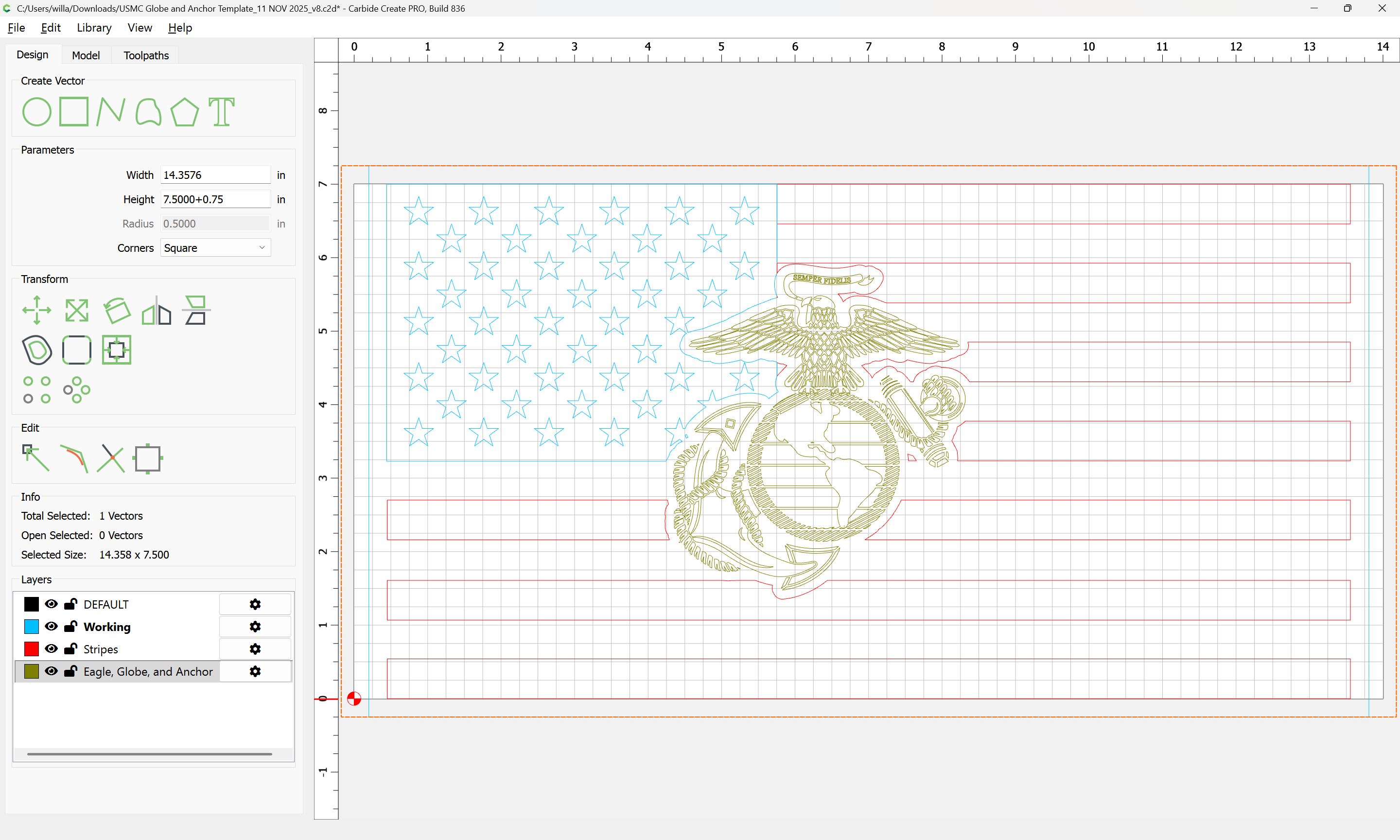 I’m trying to add the USMC Globe and Anchor to the US flag tray. The art work I have doesn’t have a border around it and I want the stripes in the flag to start and stop as shown in the Carbide Create Boolean video. I understand the process of the Boolean, but I’m having big issues with creating a border around the globe and anchor.