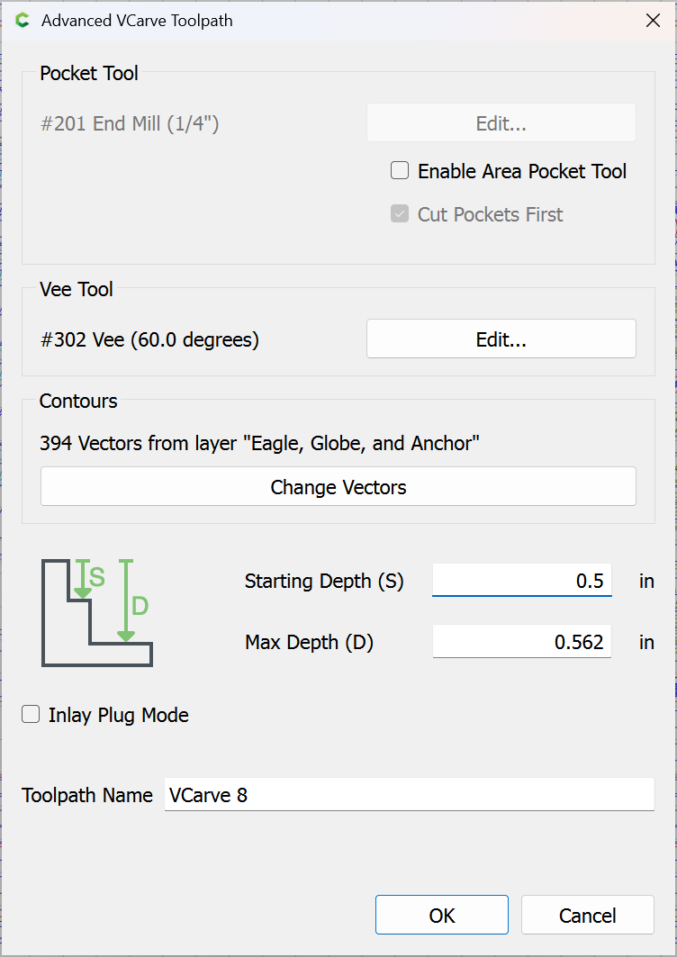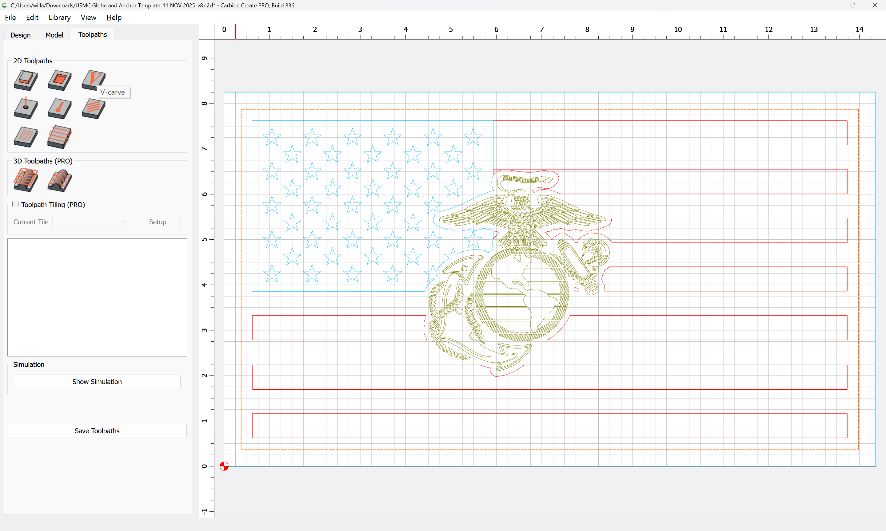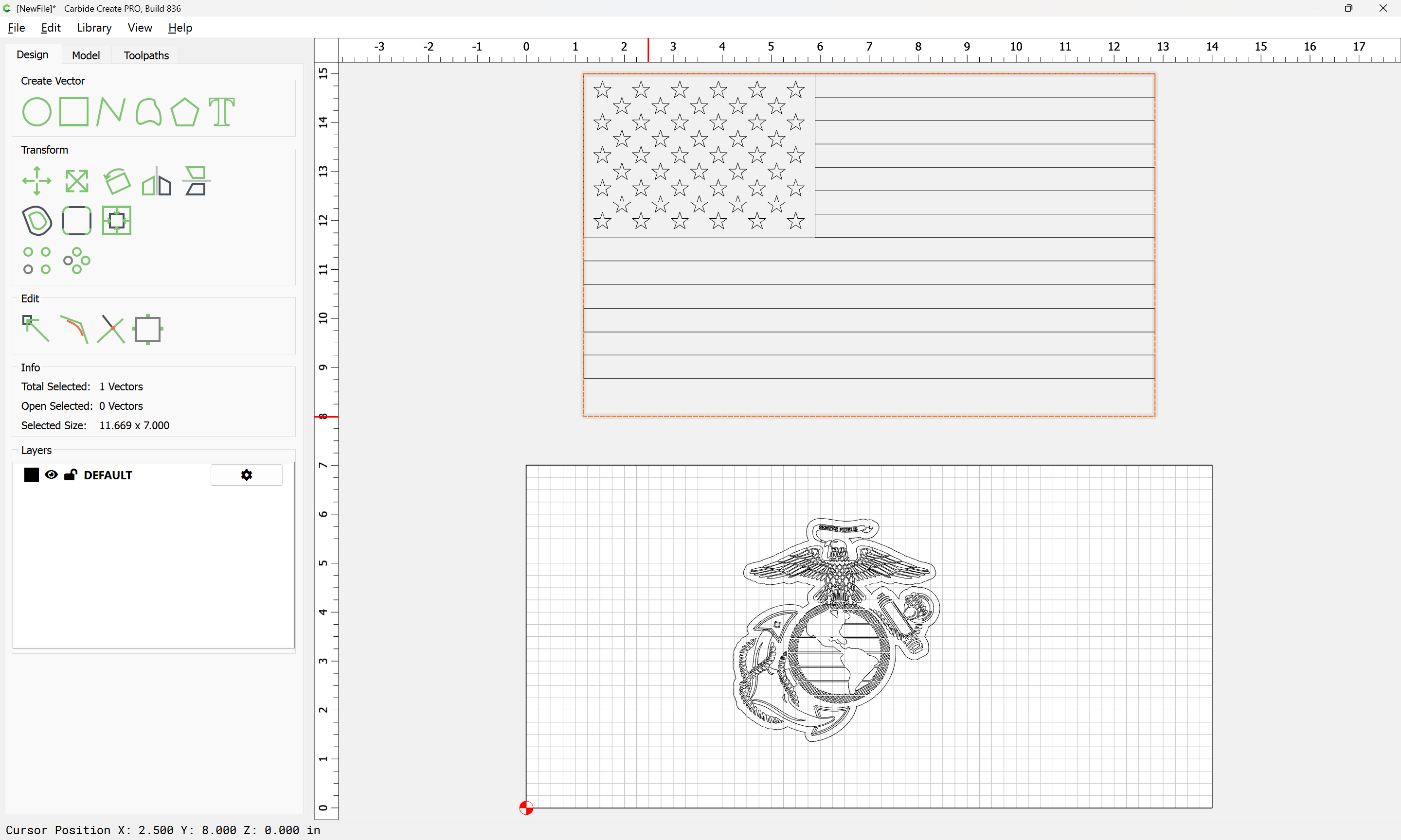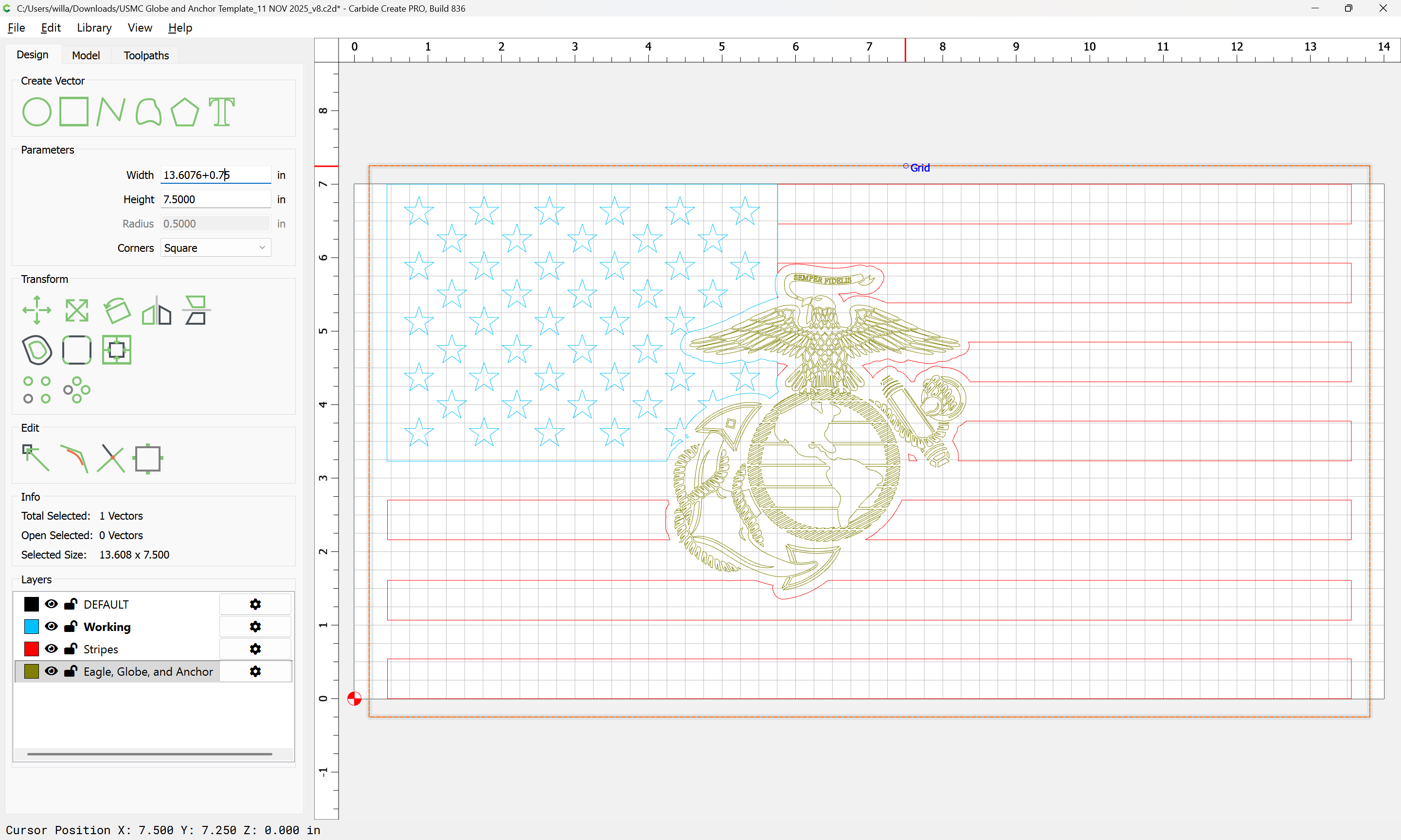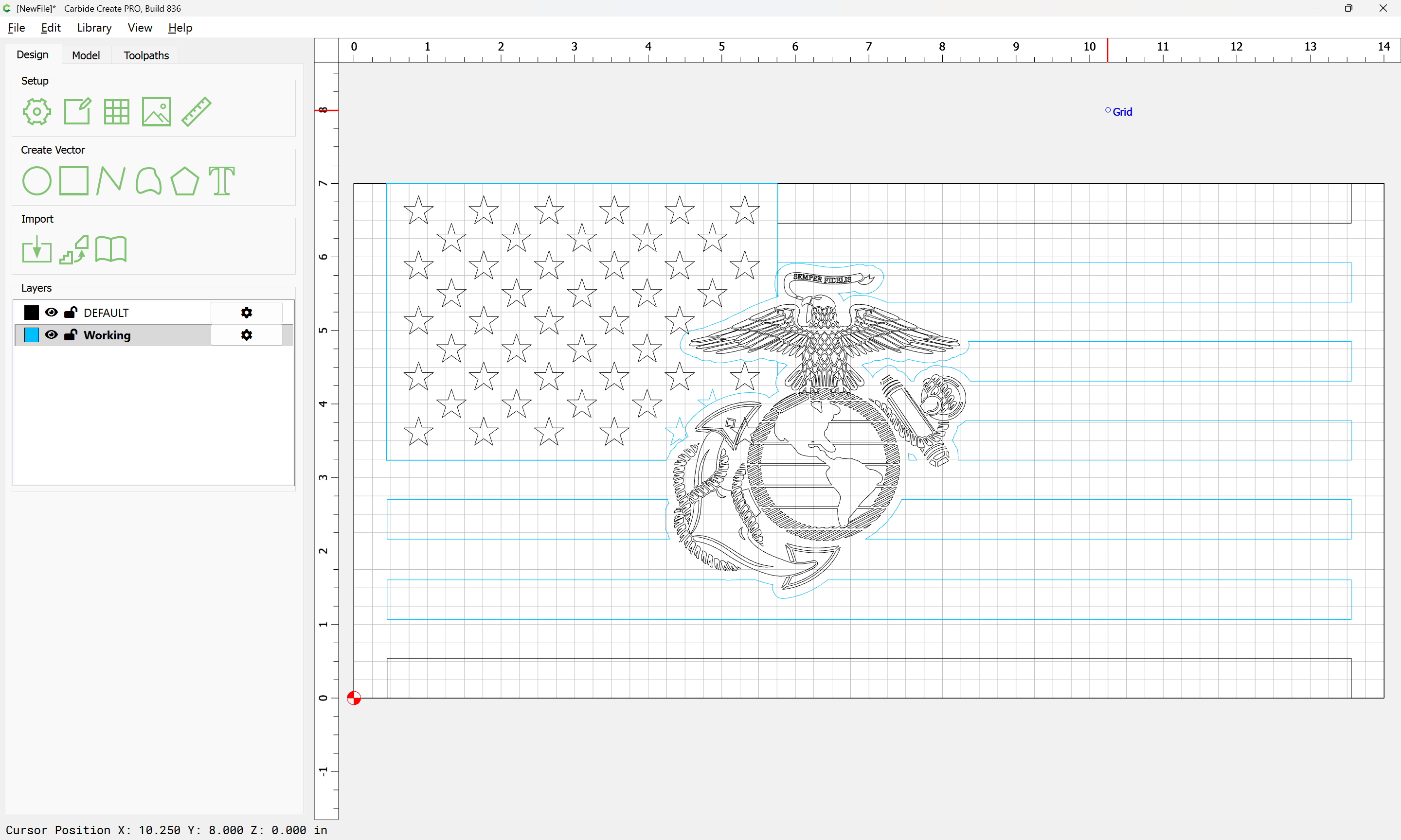I’m trying to add the USMC Globe and Anchor to the US flag tray. The art work I have doesn’t have a border around it and I want the stripes in the flag to start and stop as shown in the Carbide Create Boolean video. I understand the process of the Boolean, but I’m having big issues with creating a border around the globe and anchor.