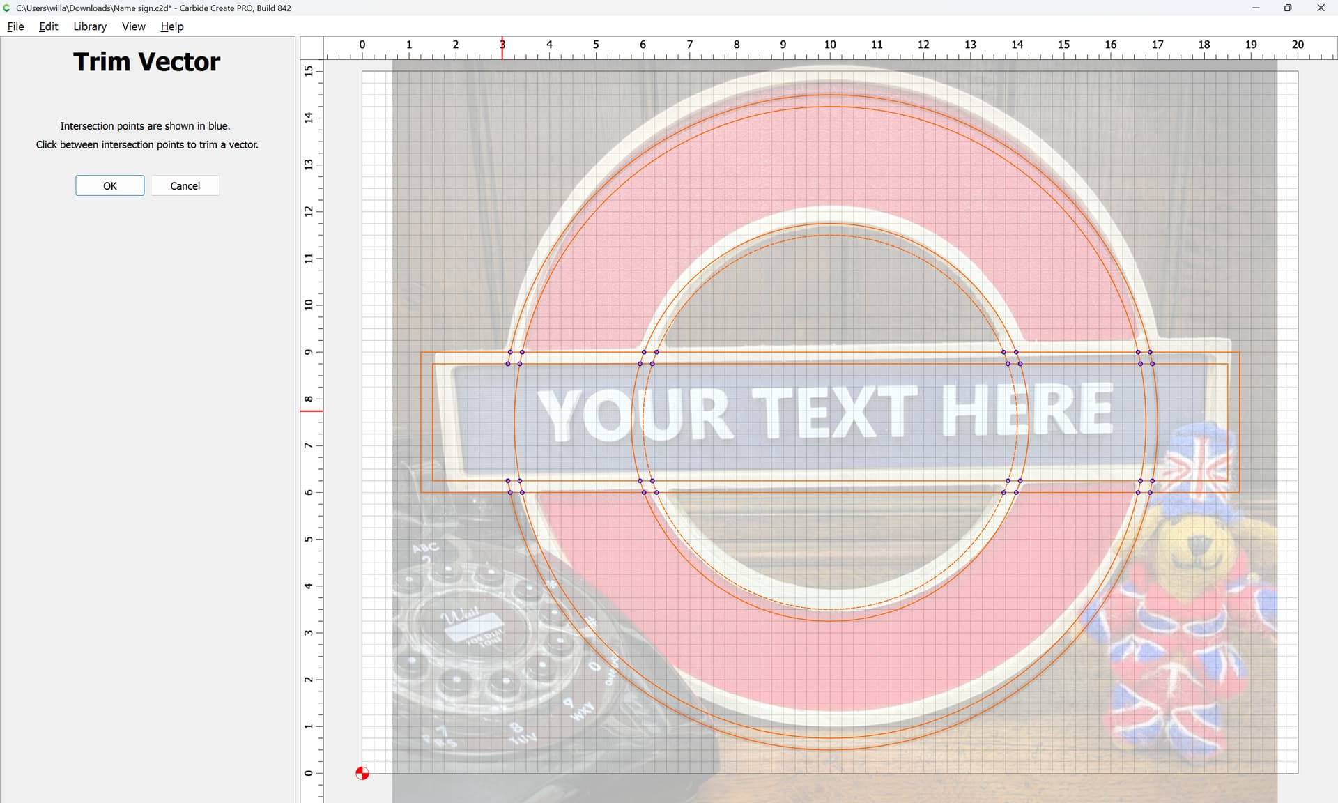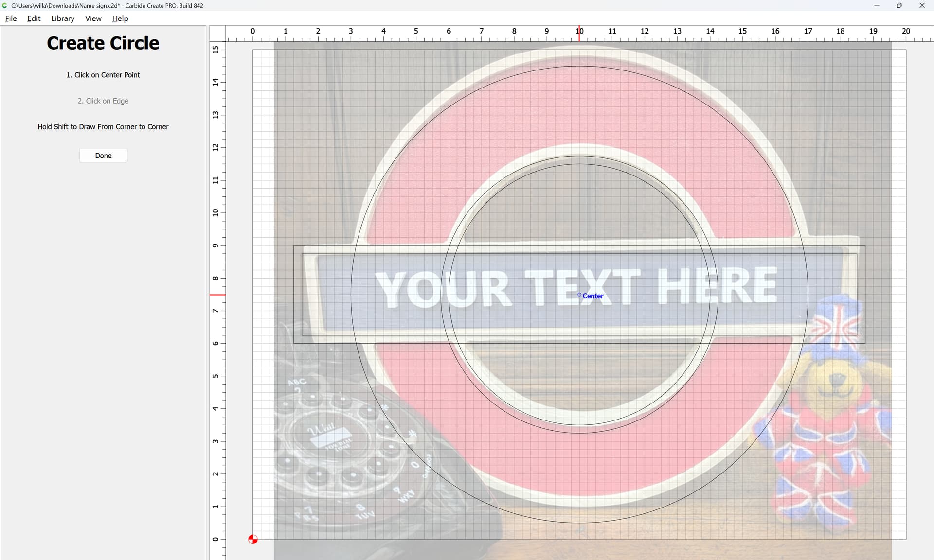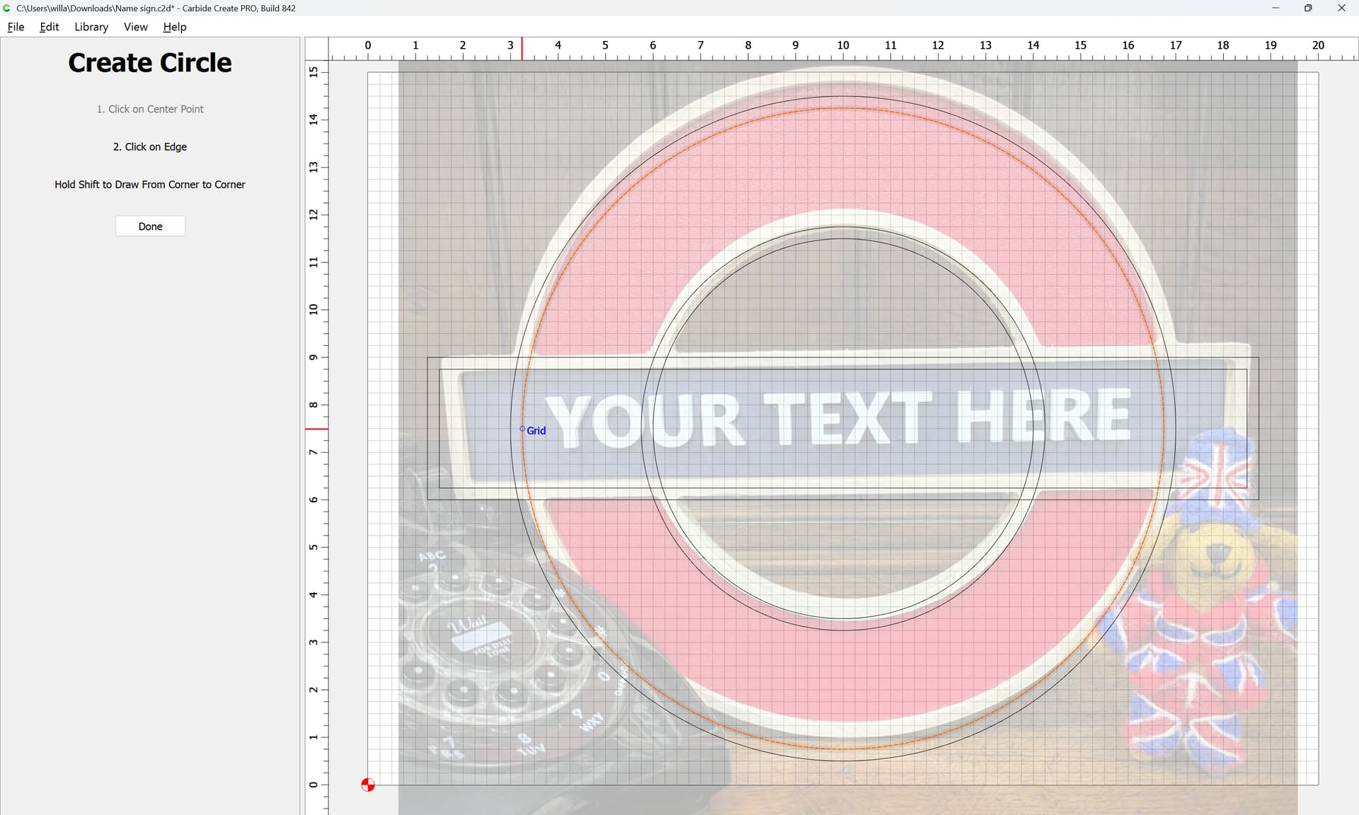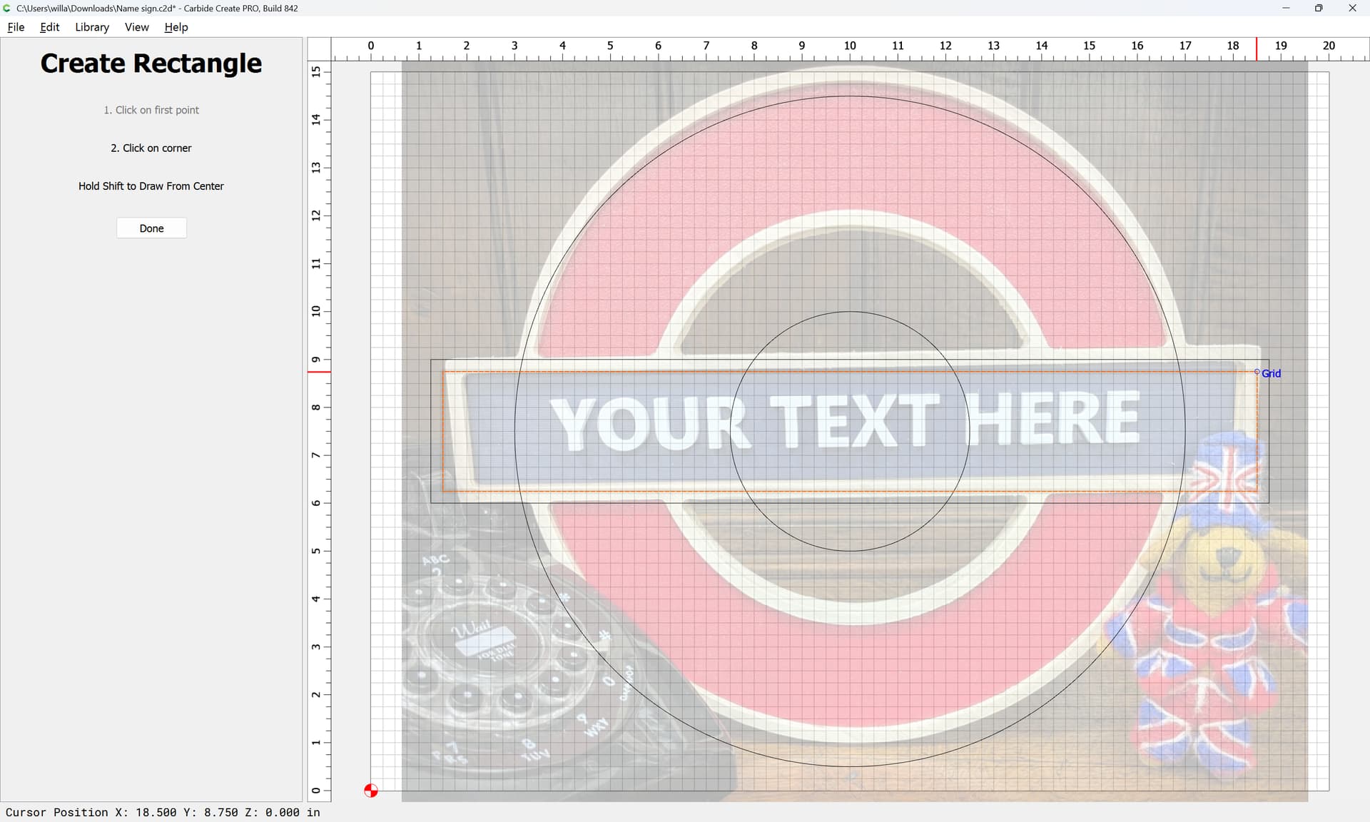 I was asked to make a sign with an outer circle and an inner circle with a rectangle running through the middle … The issue is I can’t seem to get the rectangle to continue as a whole. I have tried the booleens and editing the nodes without any success.