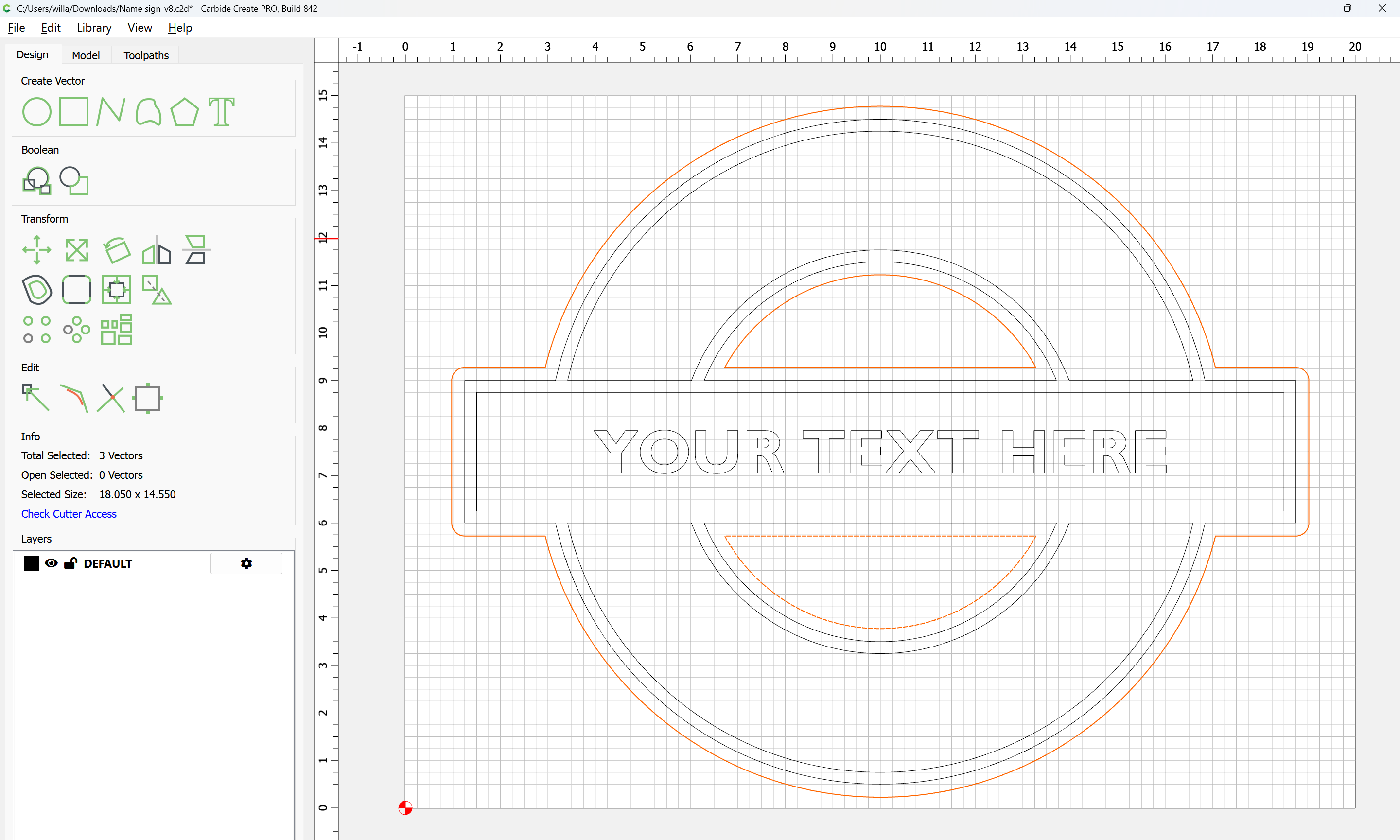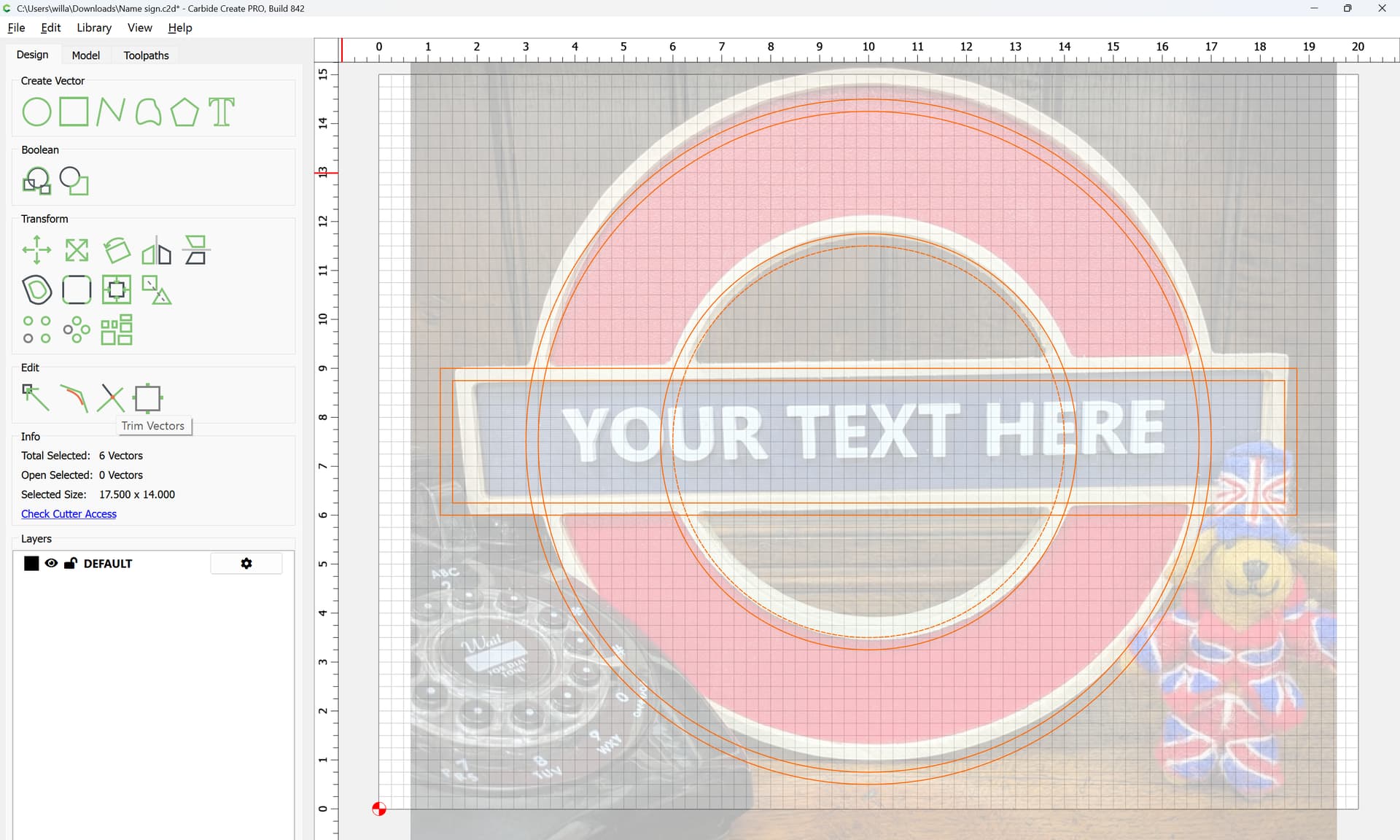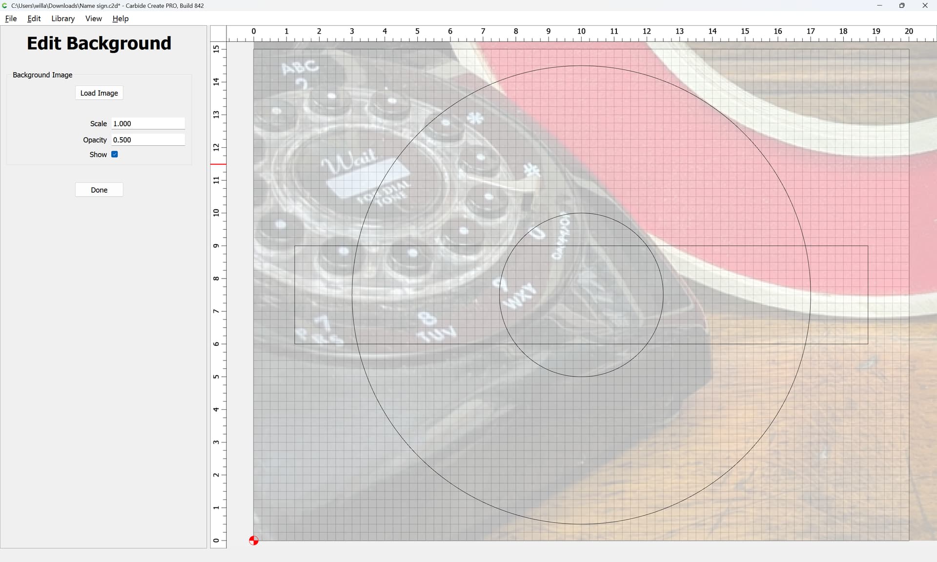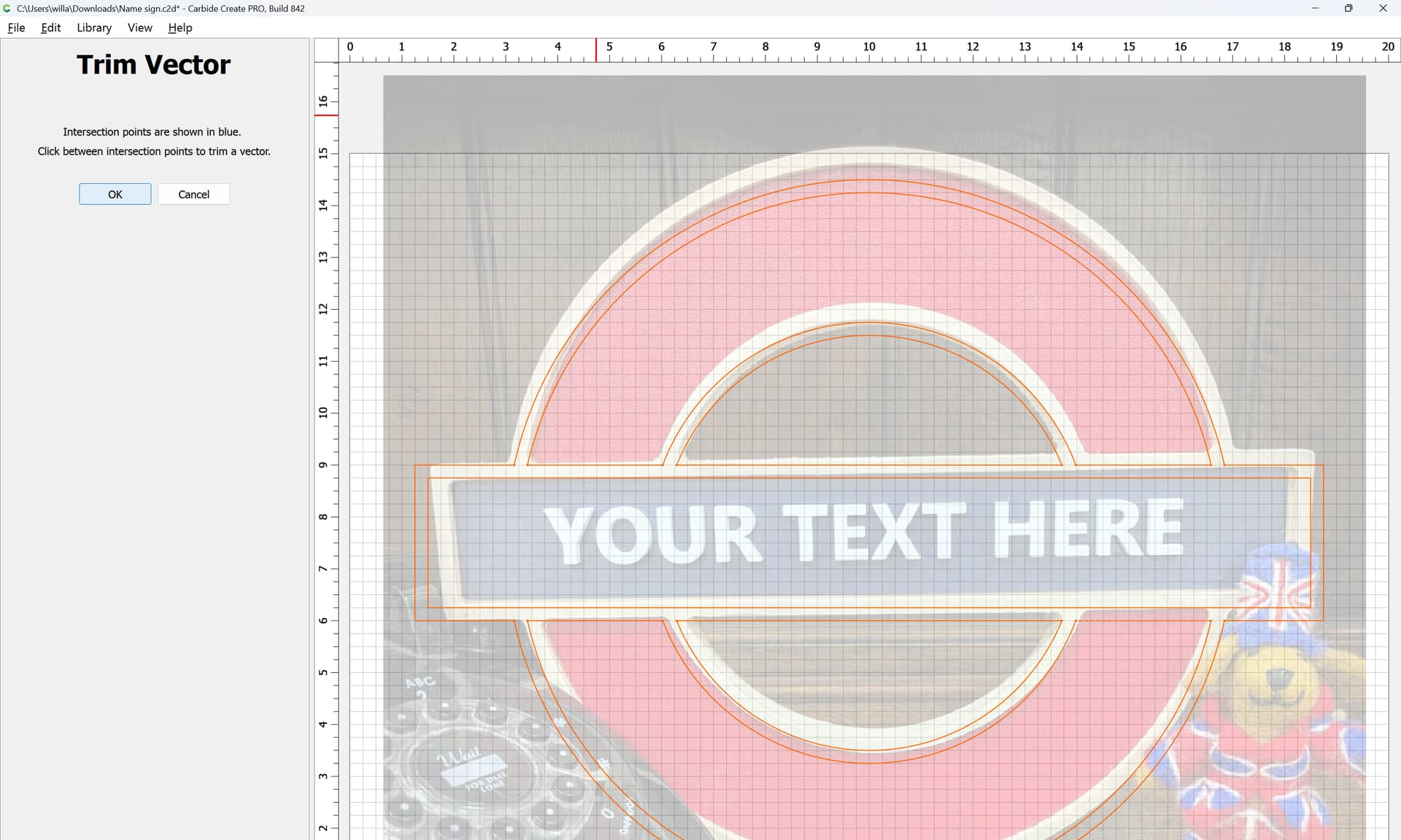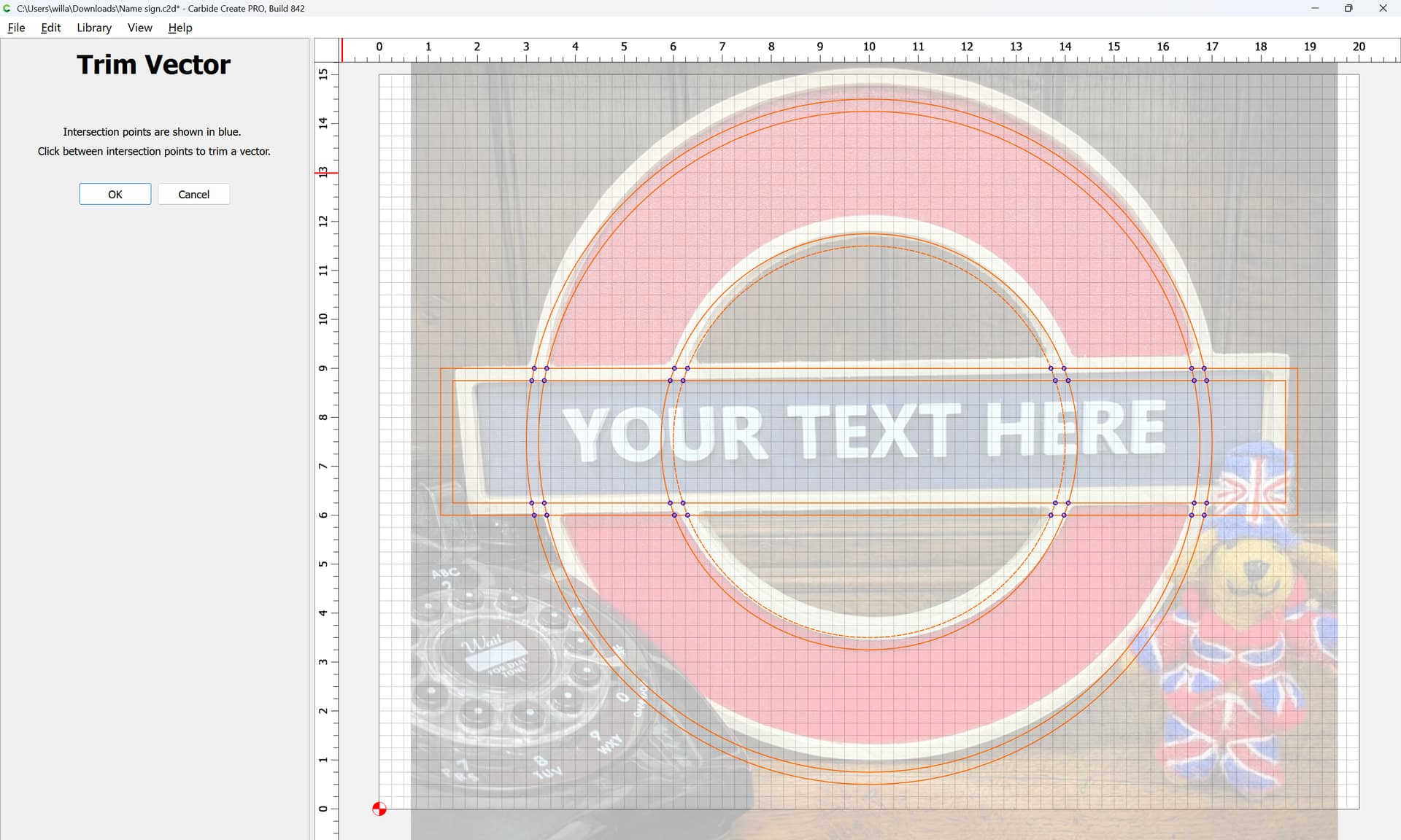 I was asked to make a sign with an outer circle and an inner circle with a rectangle running through the middle … The issue is I can’t seem to get the rectangle to continue as a whole. I have tried the booleens and editing the nodes without any success.