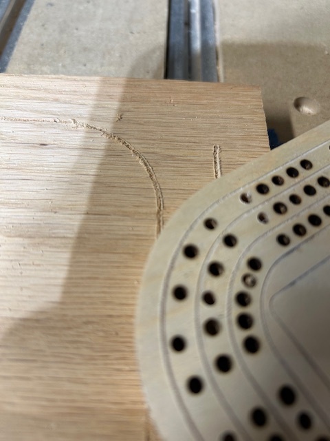 Why would my result look good on my practice stock (plywood) but on my final cut on hardwood (oak) look wider? I am trying to get a very fine line engraved. The tool and toolpath are the same.