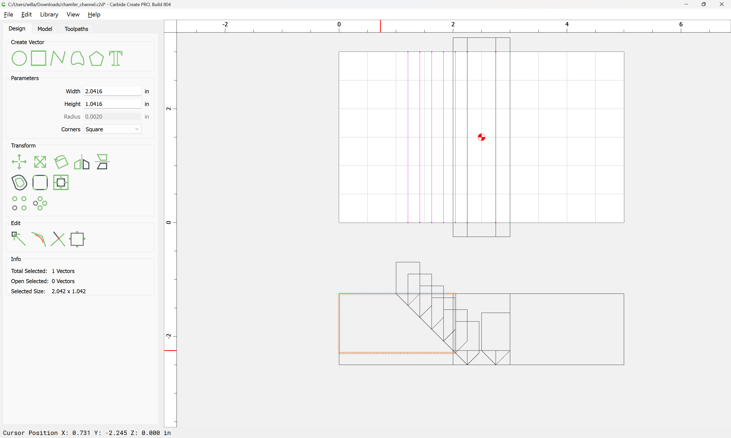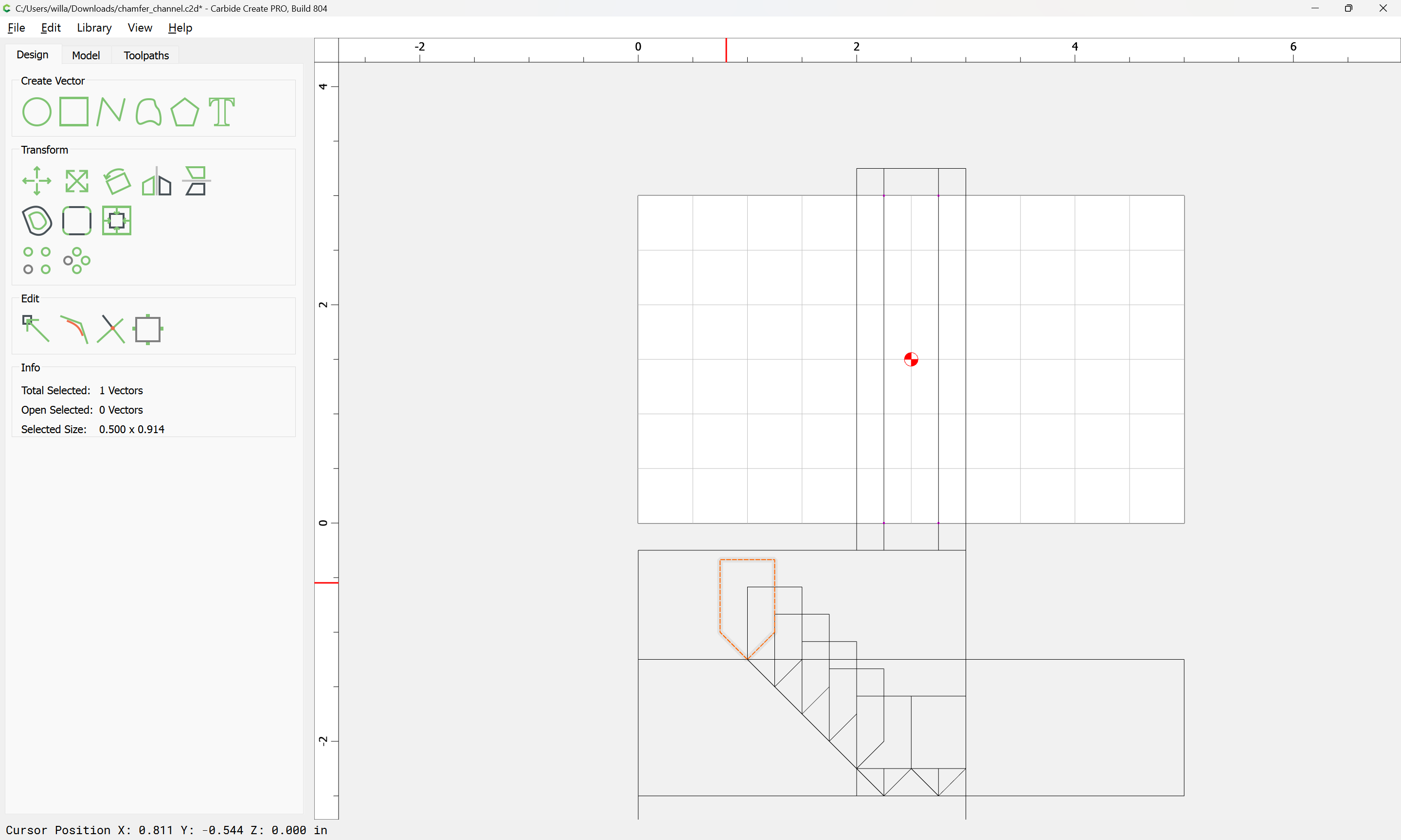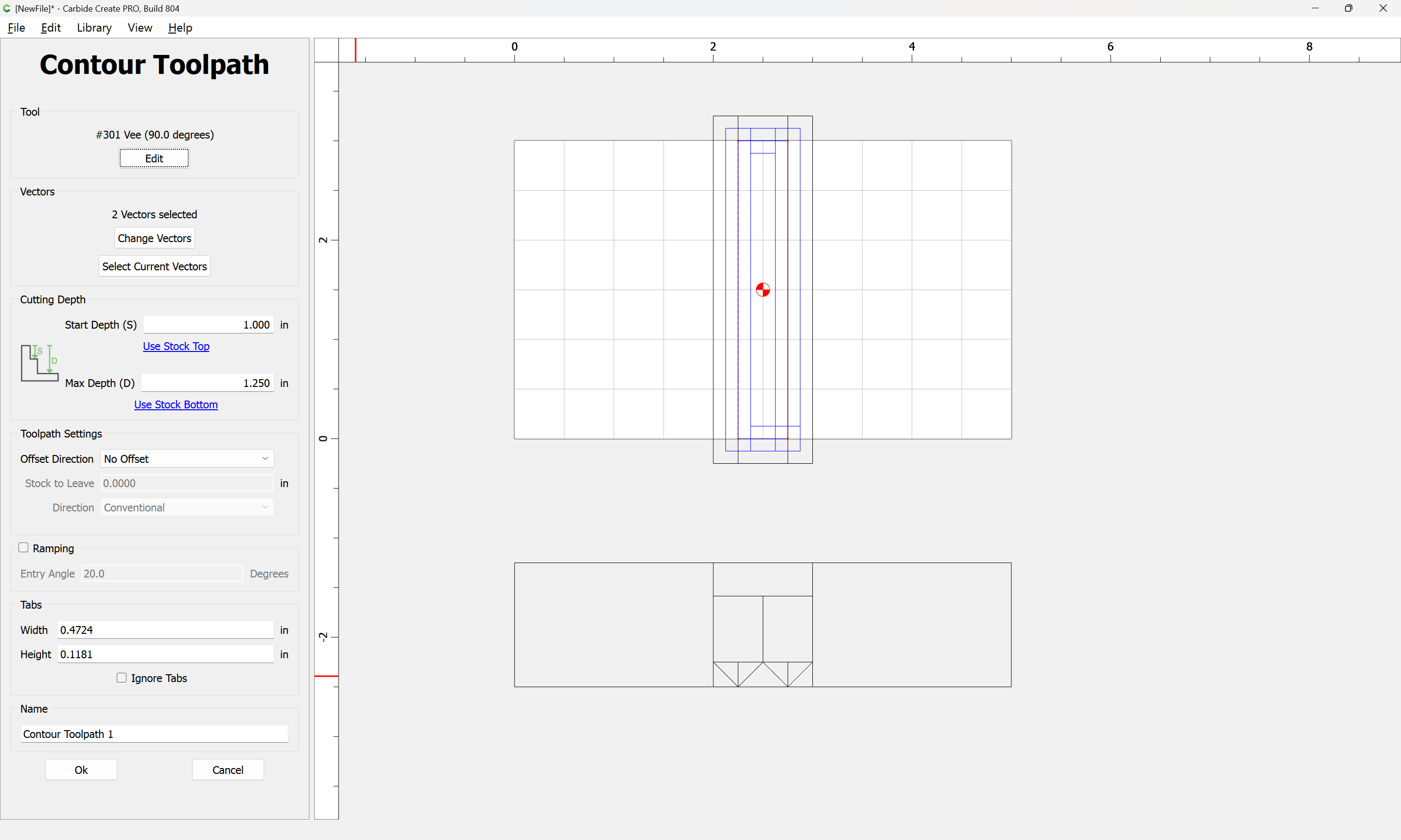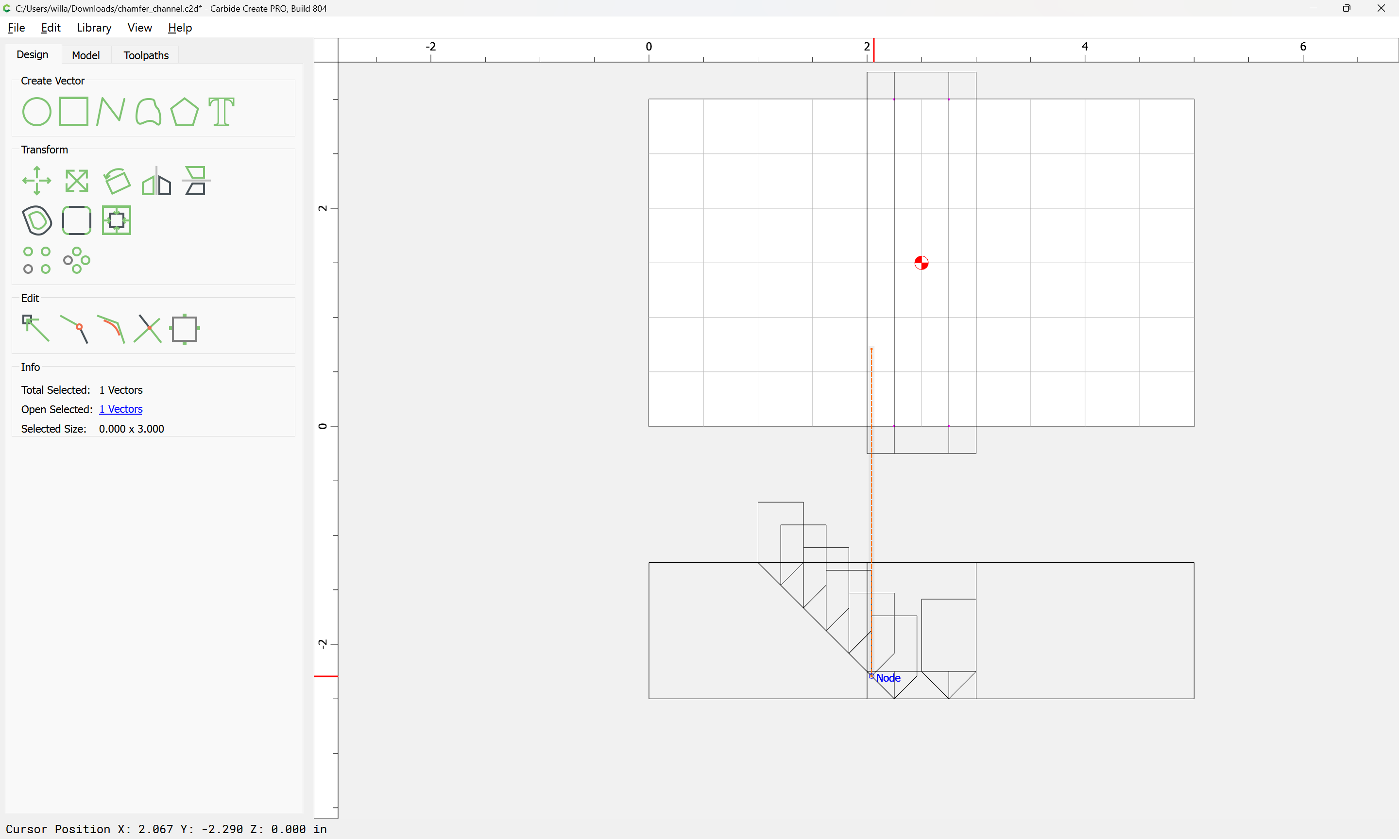 If you need to cut an angle longer than the length of the cutting flutes you will need additional lines — draw/position them in the profile and assign cuts to a suitable depth.