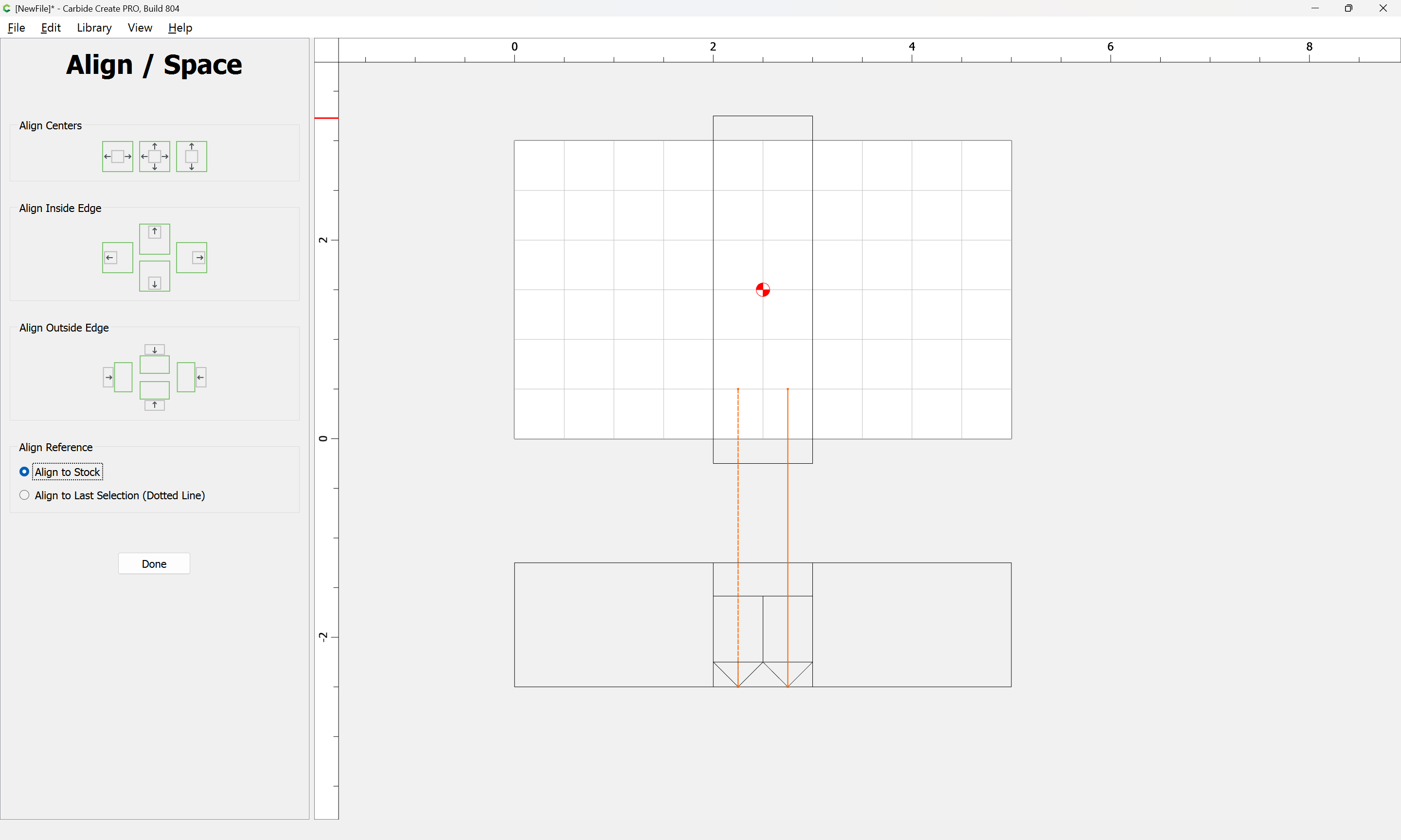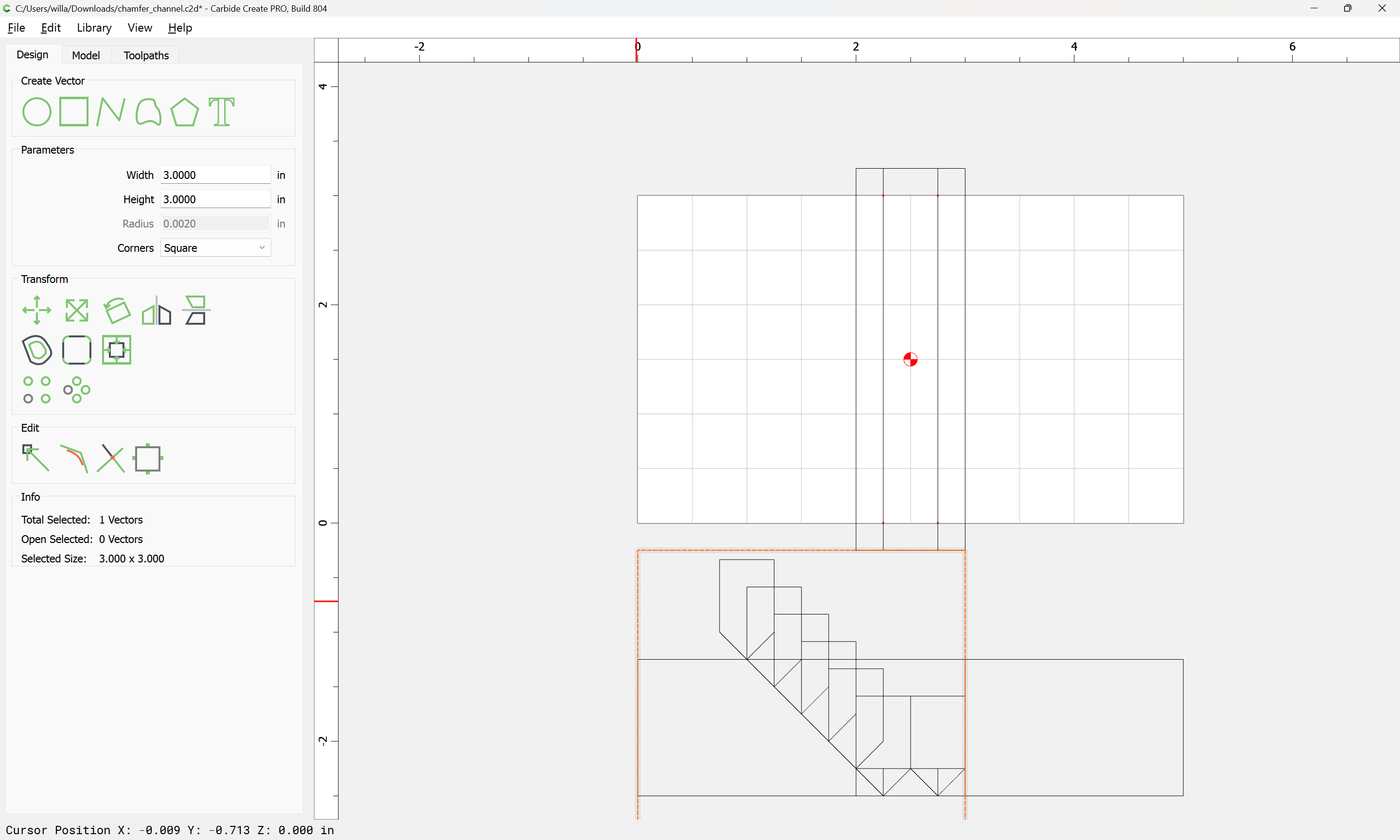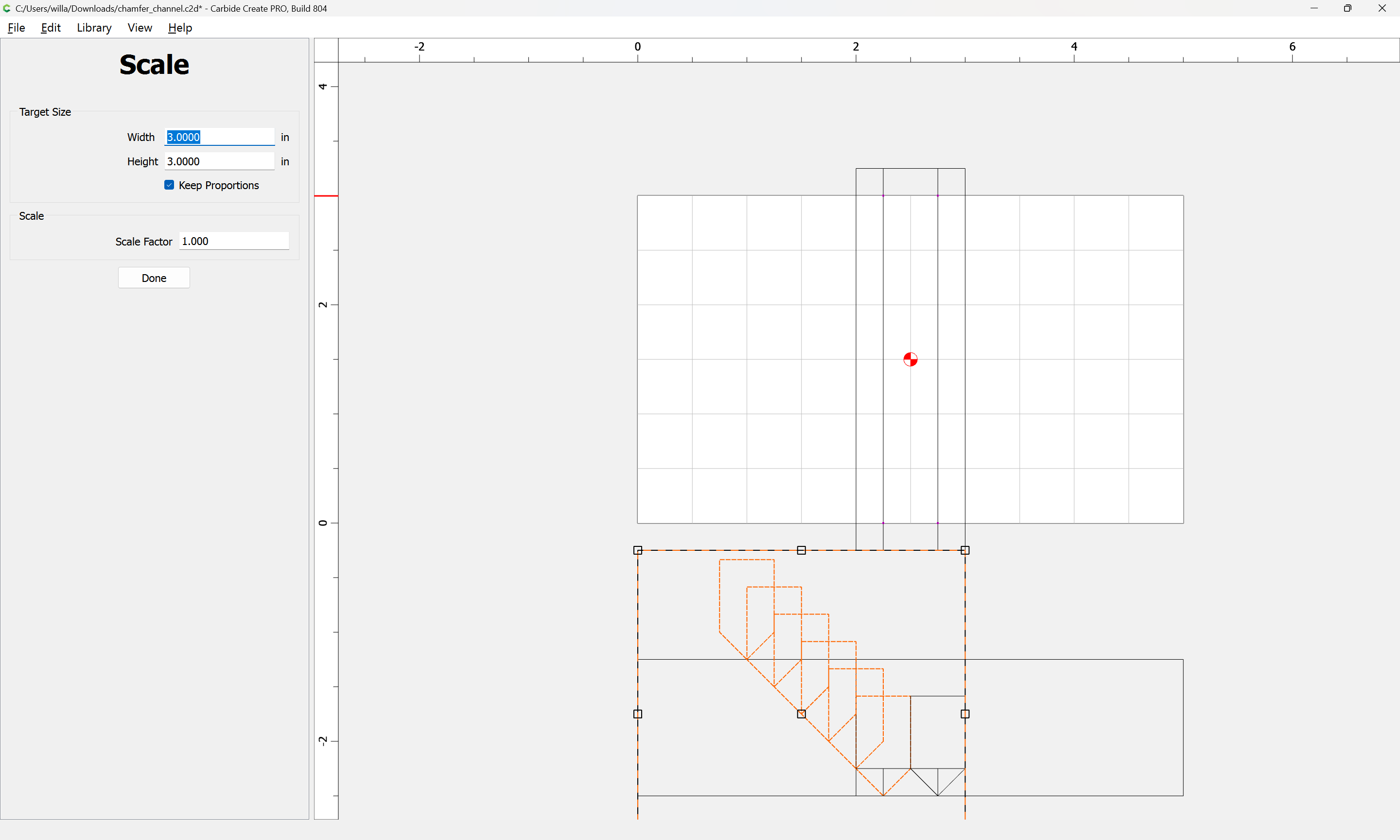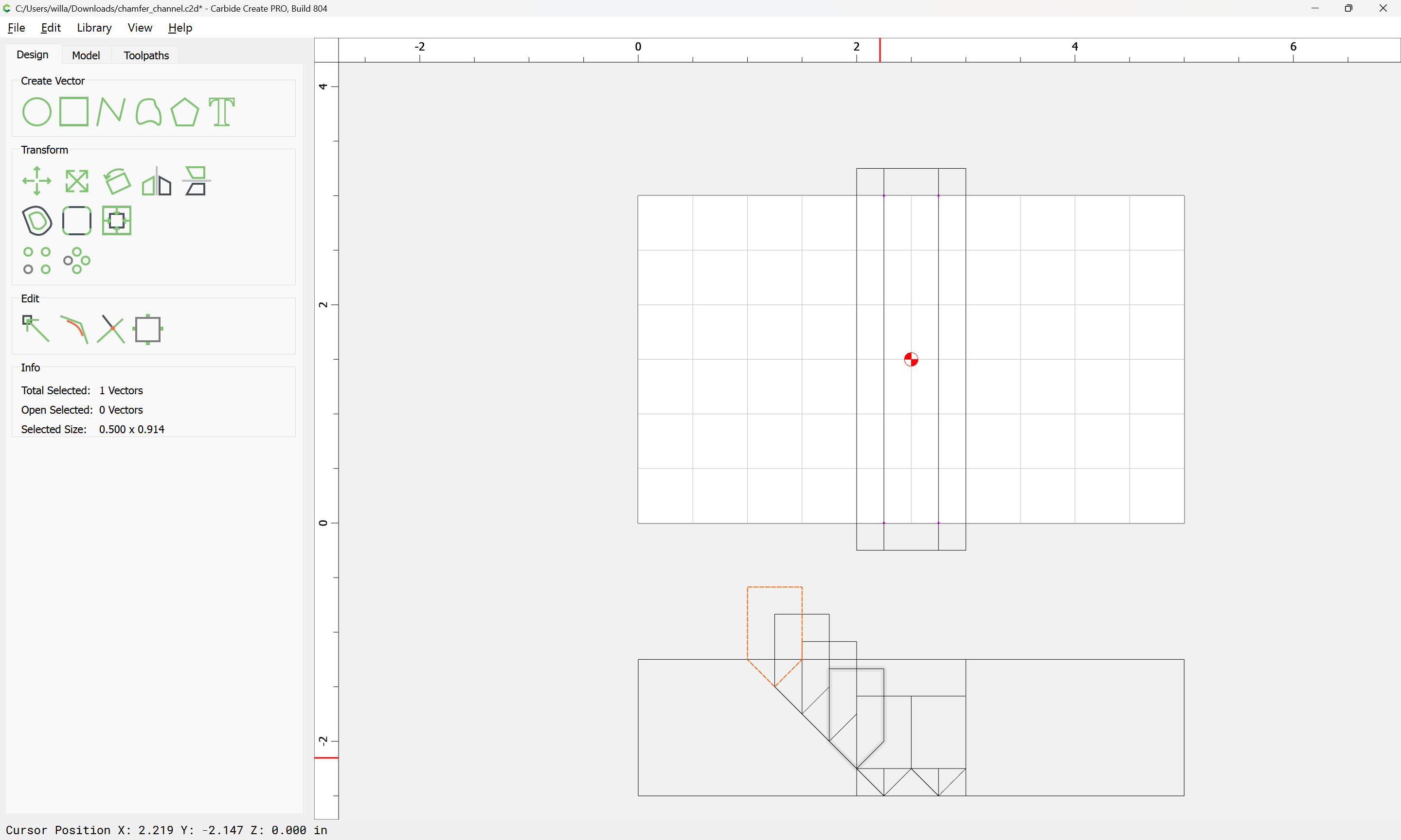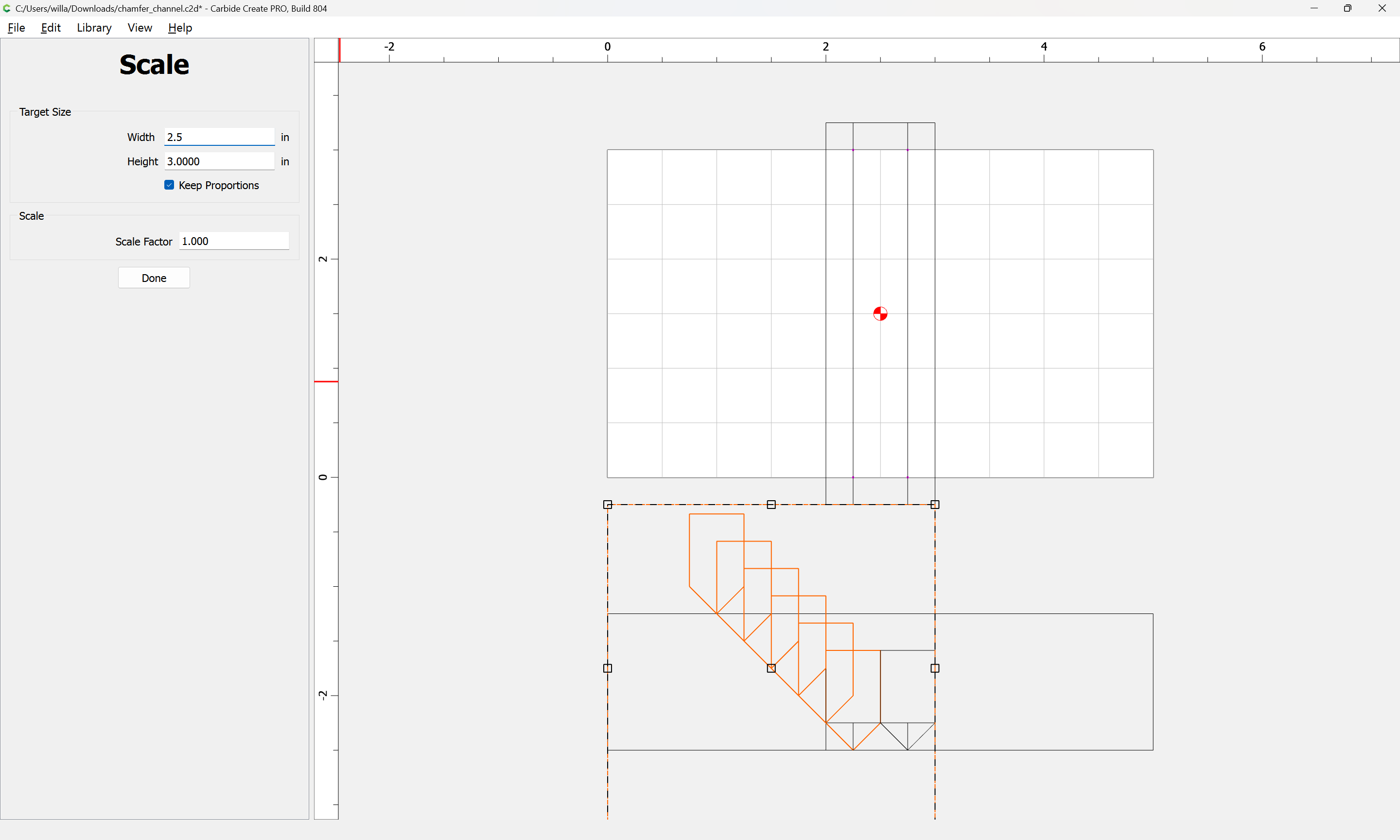 If you need to cut an angle longer than the length of the cutting flutes you will need additional lines — draw/position them in the profile and assign cuts to a suitable depth.
