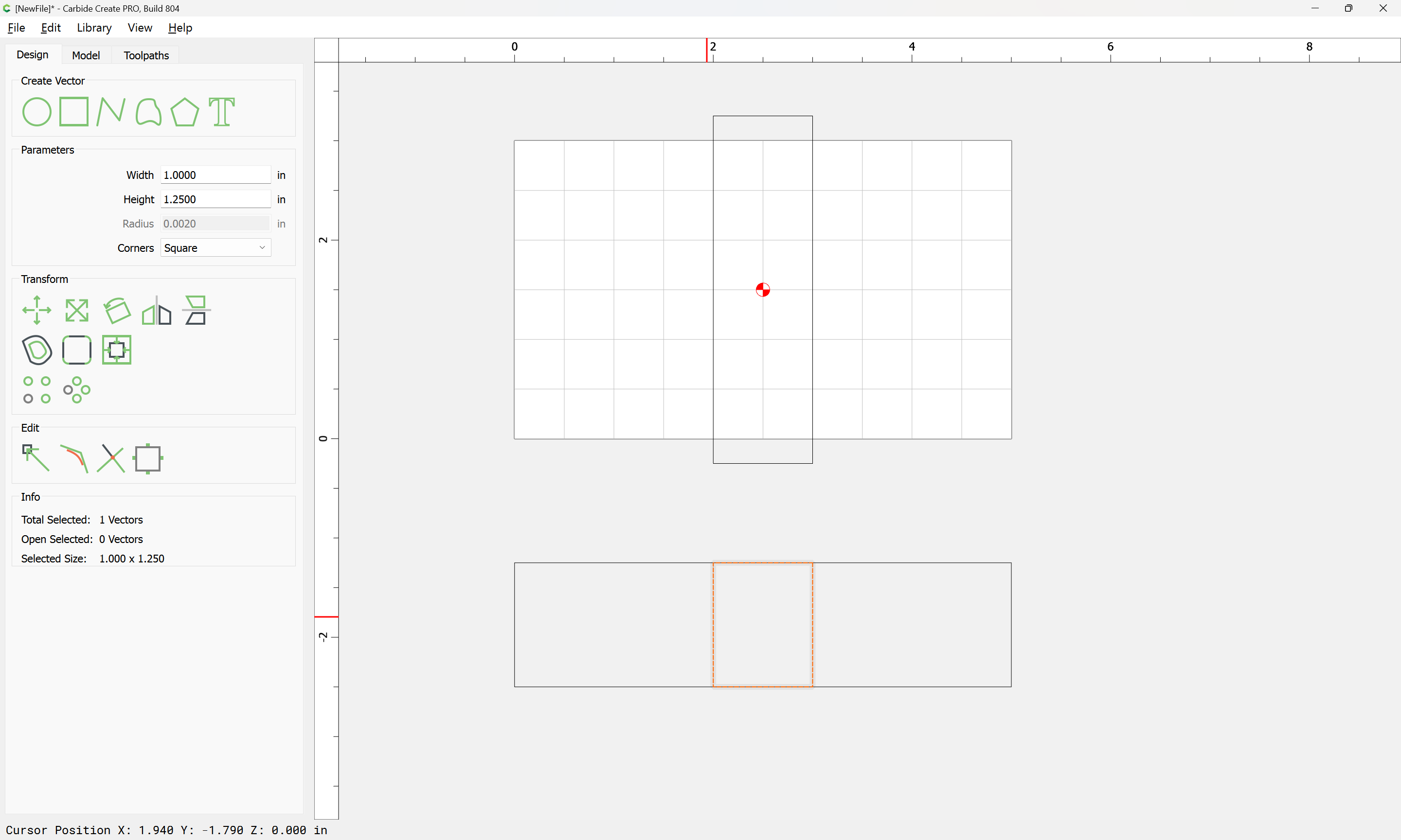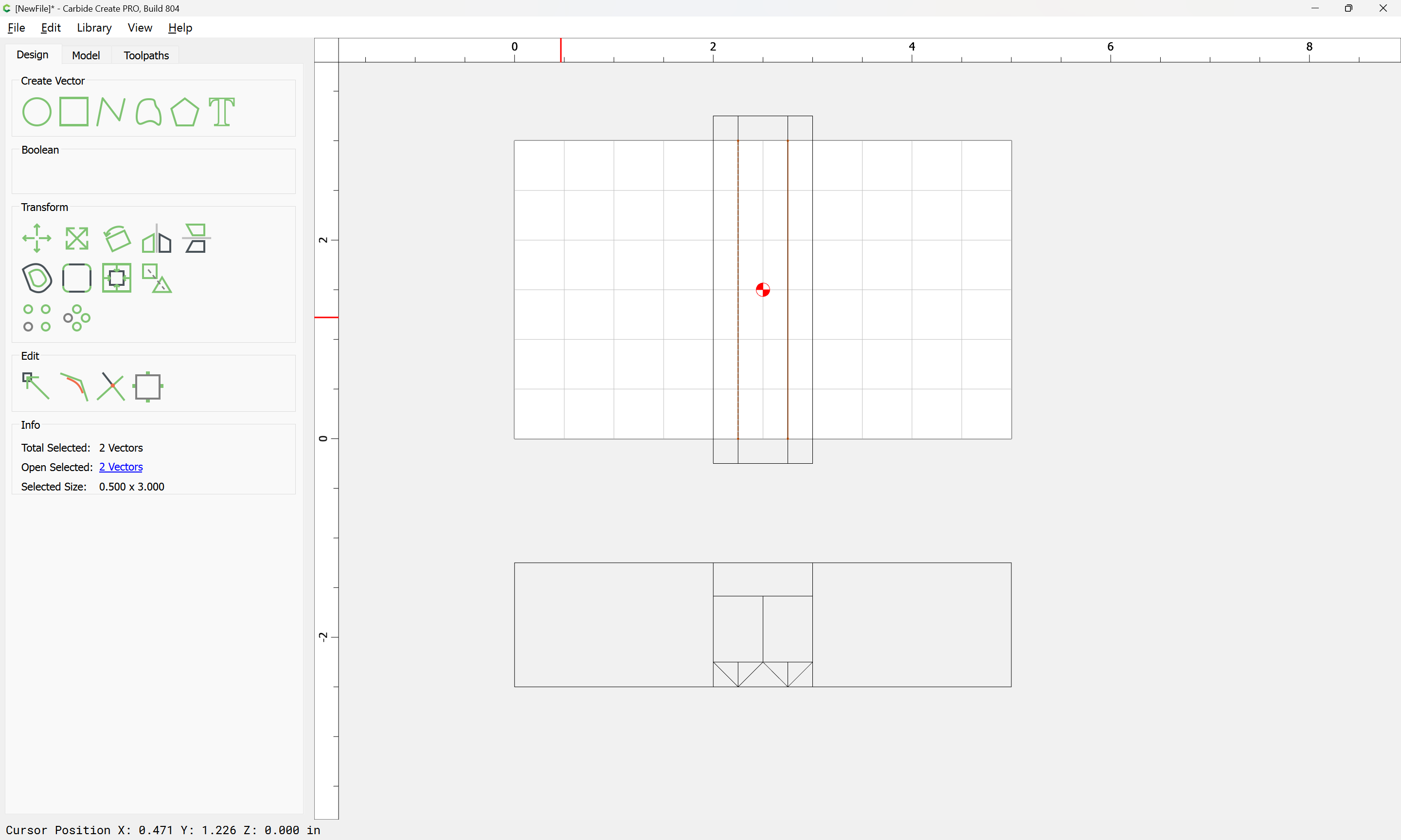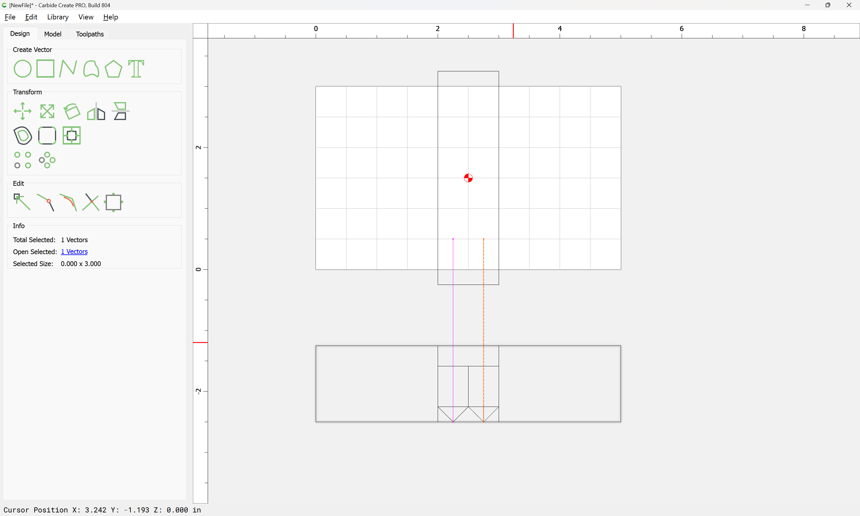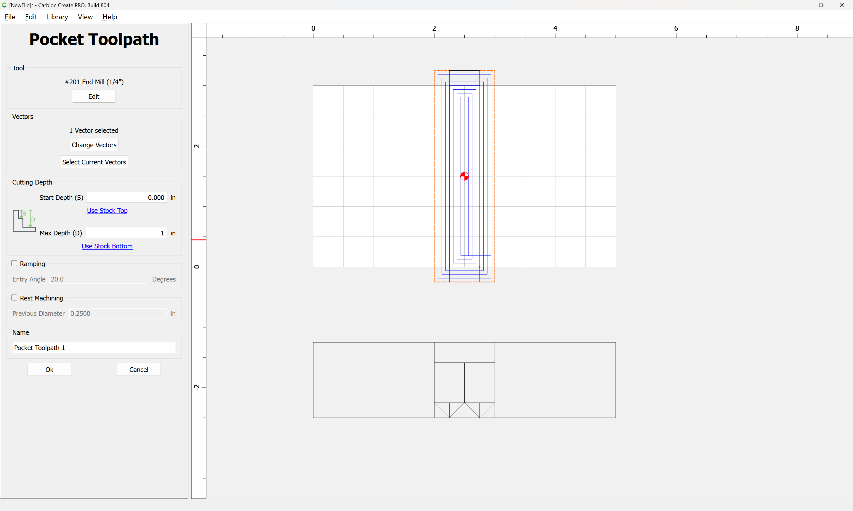 If you need to cut an angle longer than the length of the cutting flutes you will need additional lines — draw/position them in the profile and assign cuts to a suitable depth.