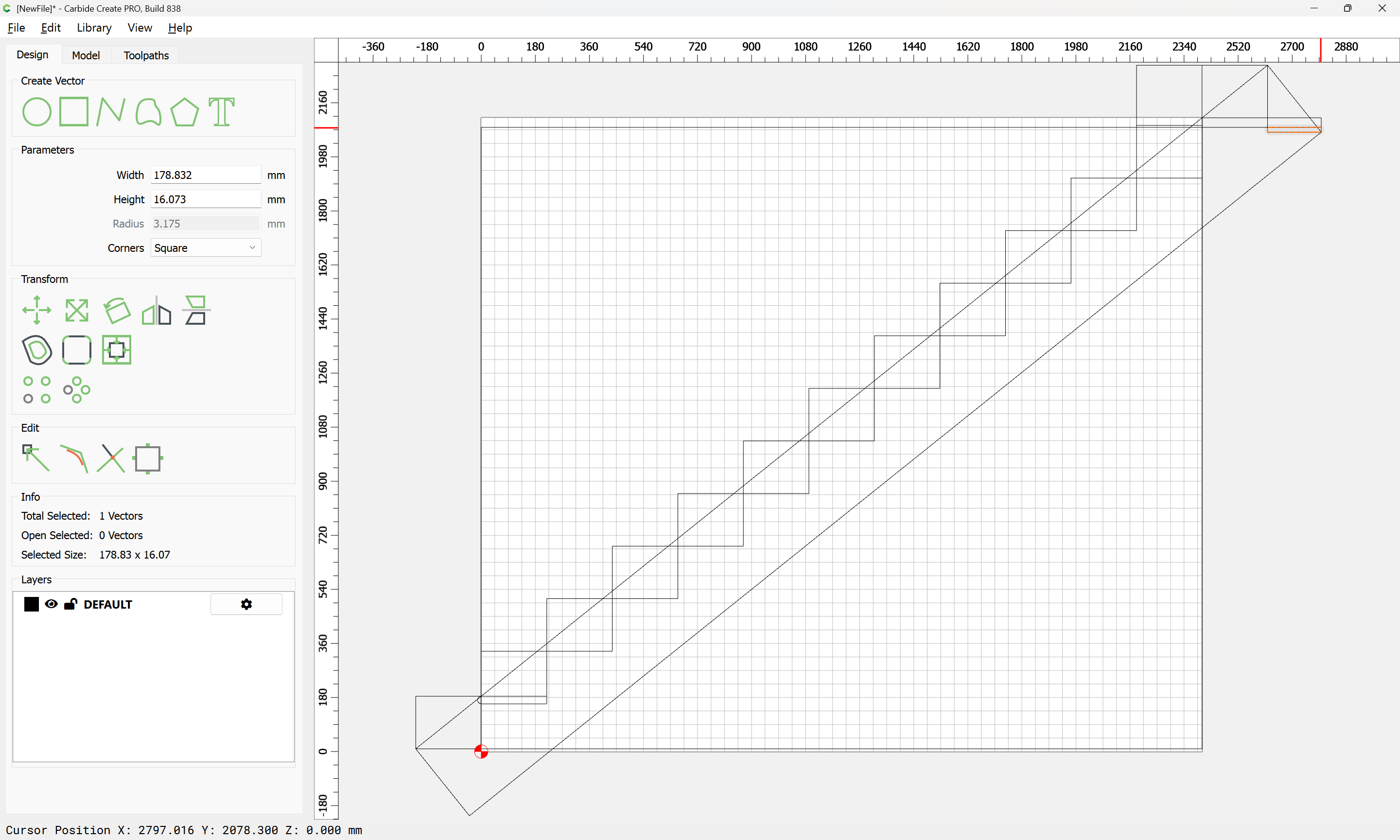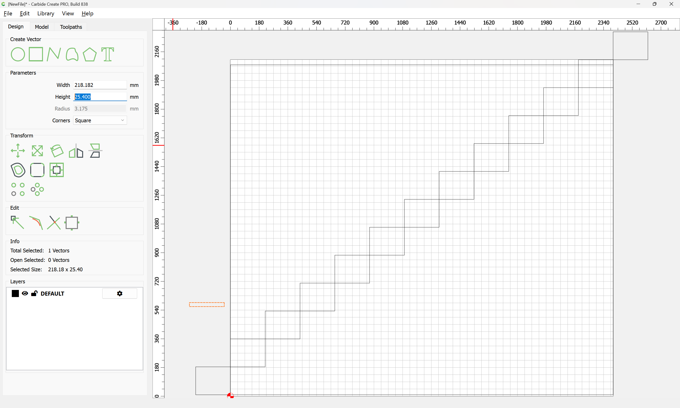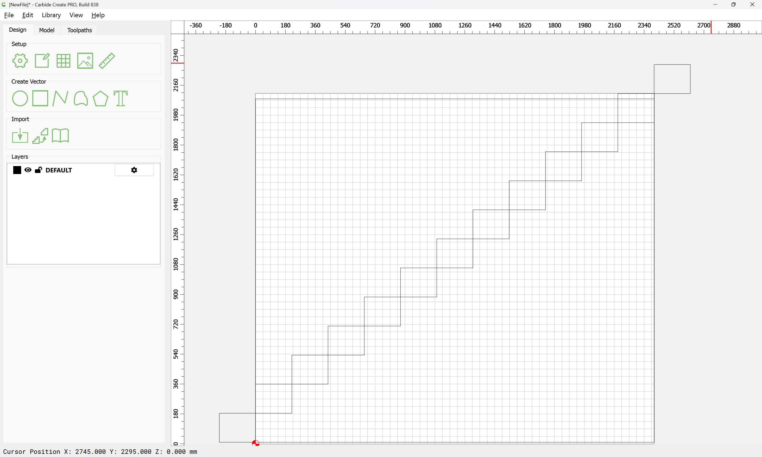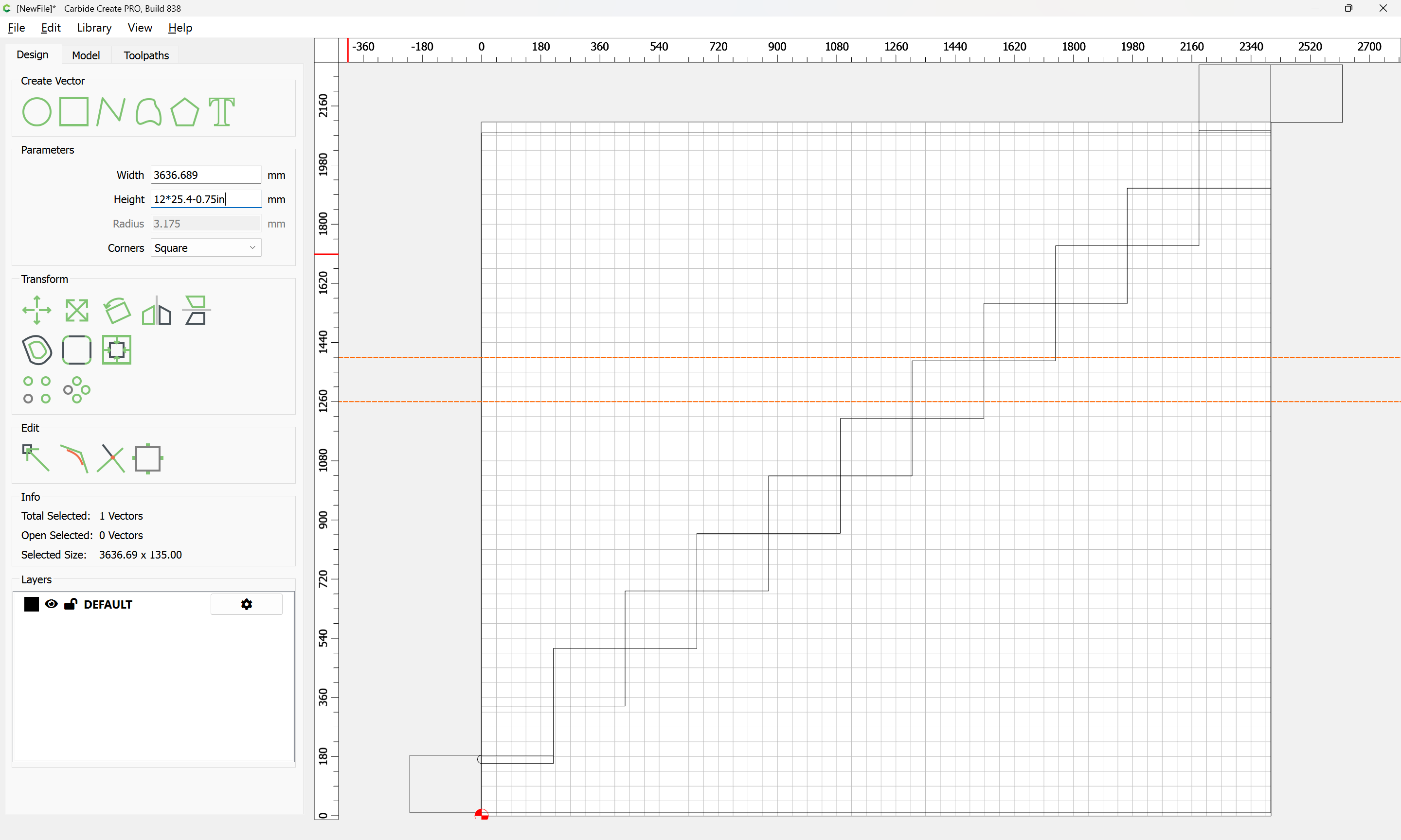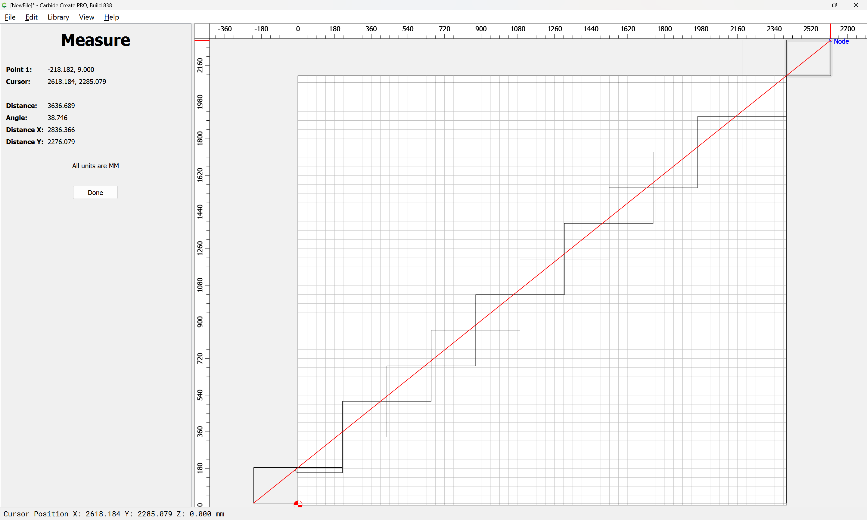 Given all these, it should be pretty straight-forward to just draw up the profile of the stairs and the matching structure, use the Measure tool to get some dimensions, then use Linear Array to duplicate Stair Treads (or a proxy for same), then finally, use the measure tool to get the angle of rotation for a 2x12 and Boolean subtract the stair treads (and the space above) so as to arrive at a stair stringer which may then be measured and cut traditionally, or if one wishes to go the full monte, cut on the machine using tiling if need be (but of course that would then require a bit of adjustment in the stair treads (rounding over the bottom edge to match the radius of the tool used) as well as sourcing a “long reach” tool to cut through 2" construction lumber.