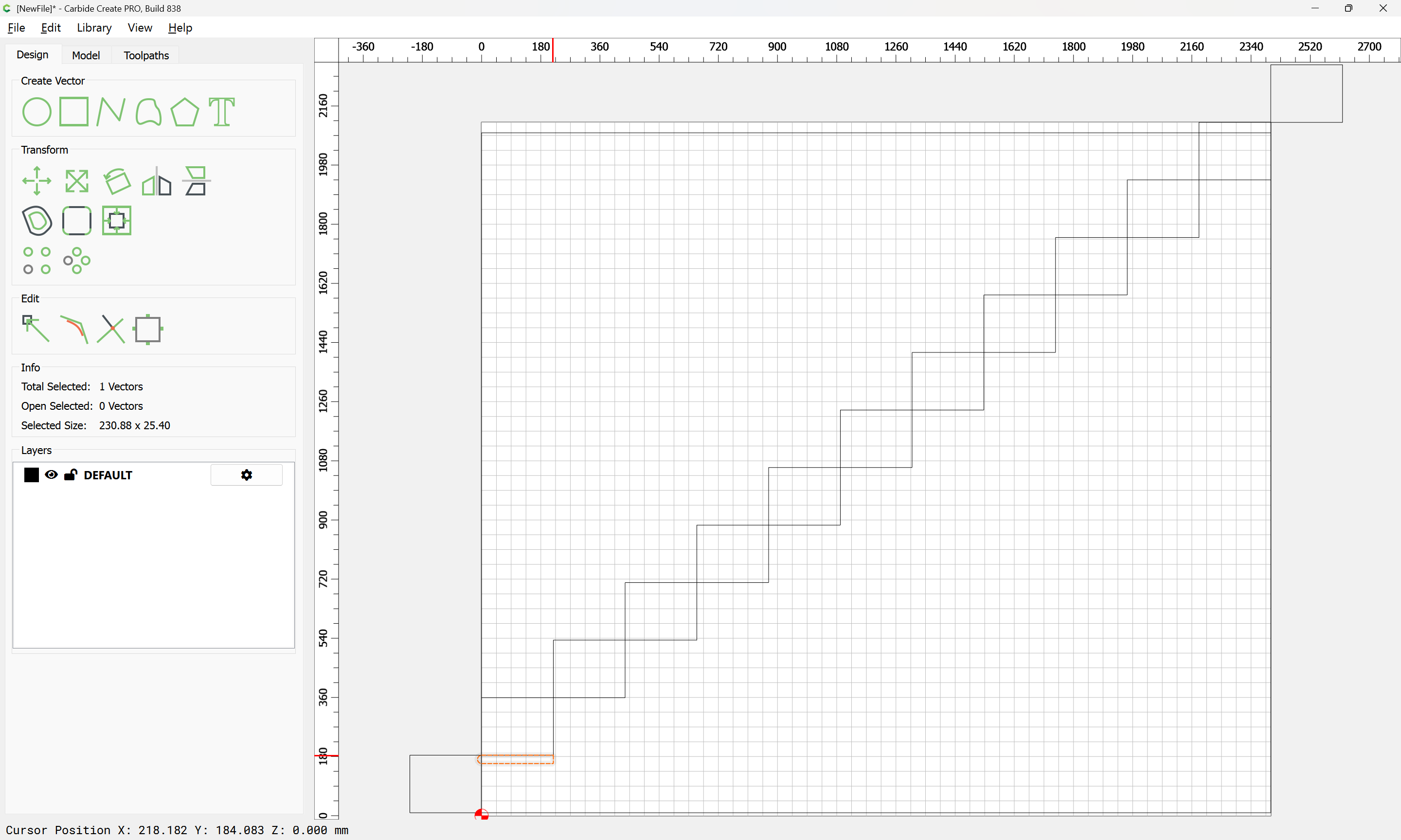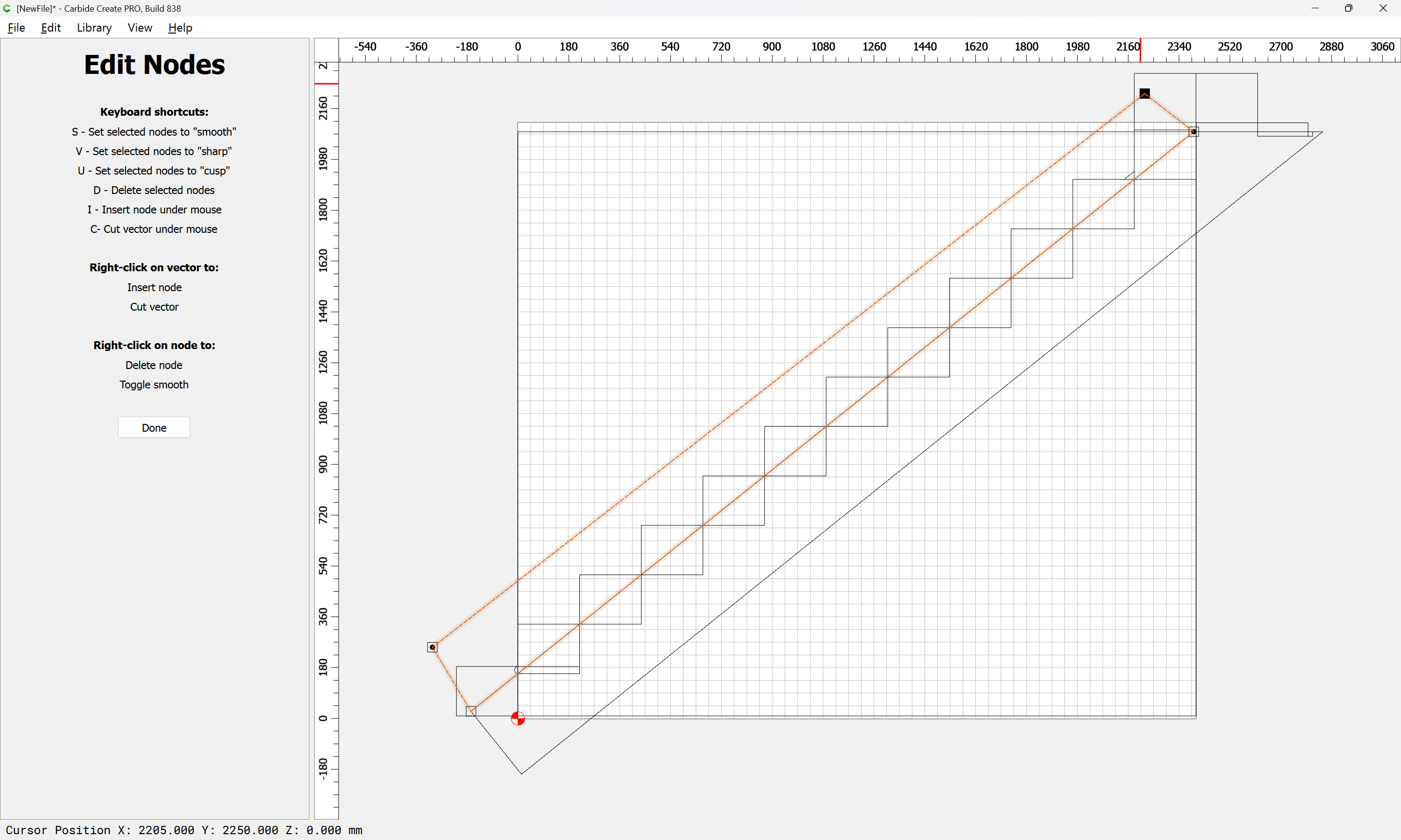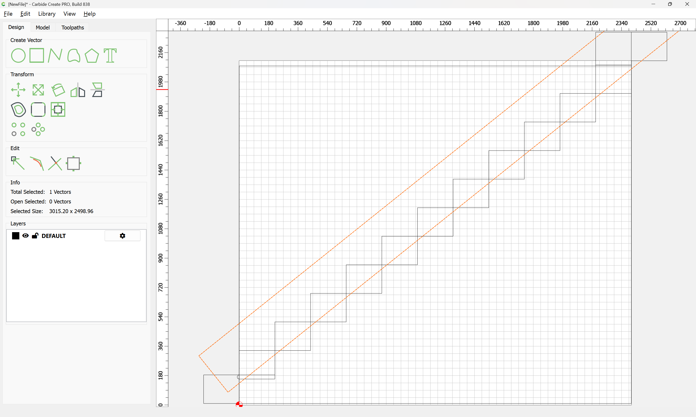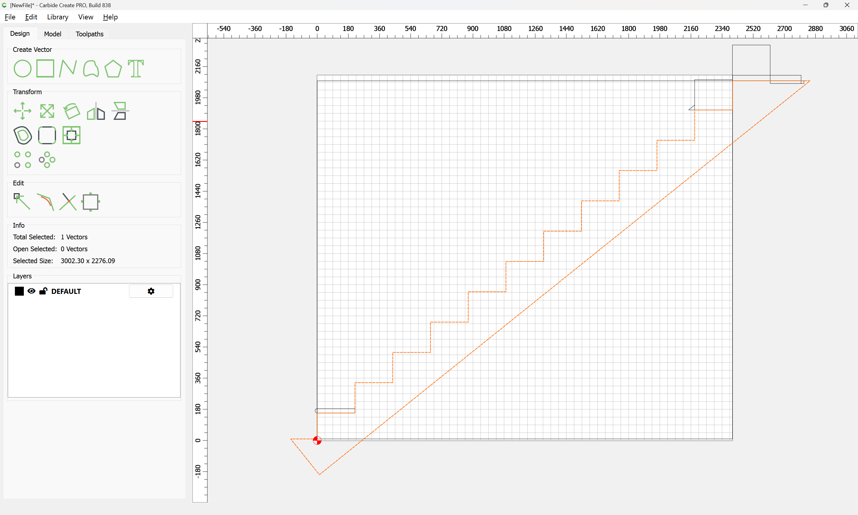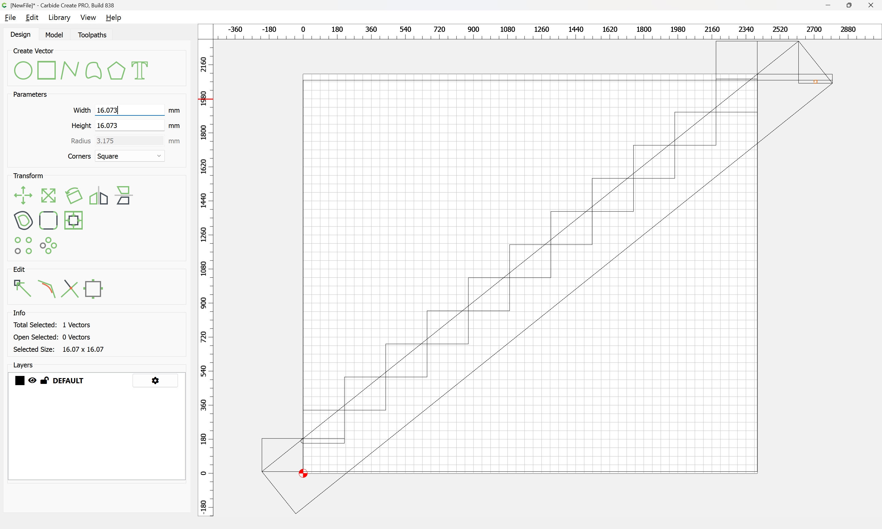Given all these, it should be pretty straight-forward to just draw up the profile of the stairs and the matching structure, use the Measure tool to get some dimensions, then use Linear Array to duplicate Stair Treads (or a proxy for same), then finally, use the measure tool to get the angle of rotation for a 2x12 and Boolean subtract the stair treads (and the space above) so as to arrive at a stair stringer which may then be measured and cut traditionally, or if one wishes to go the full monte, cut on the machine using tiling if need be (but of course that would then require a bit of adjustment in the stair treads (rounding over the bottom edge to match the radius of the tool used) as well as sourcing a “long reach” tool to cut through 2" construction lumber.
