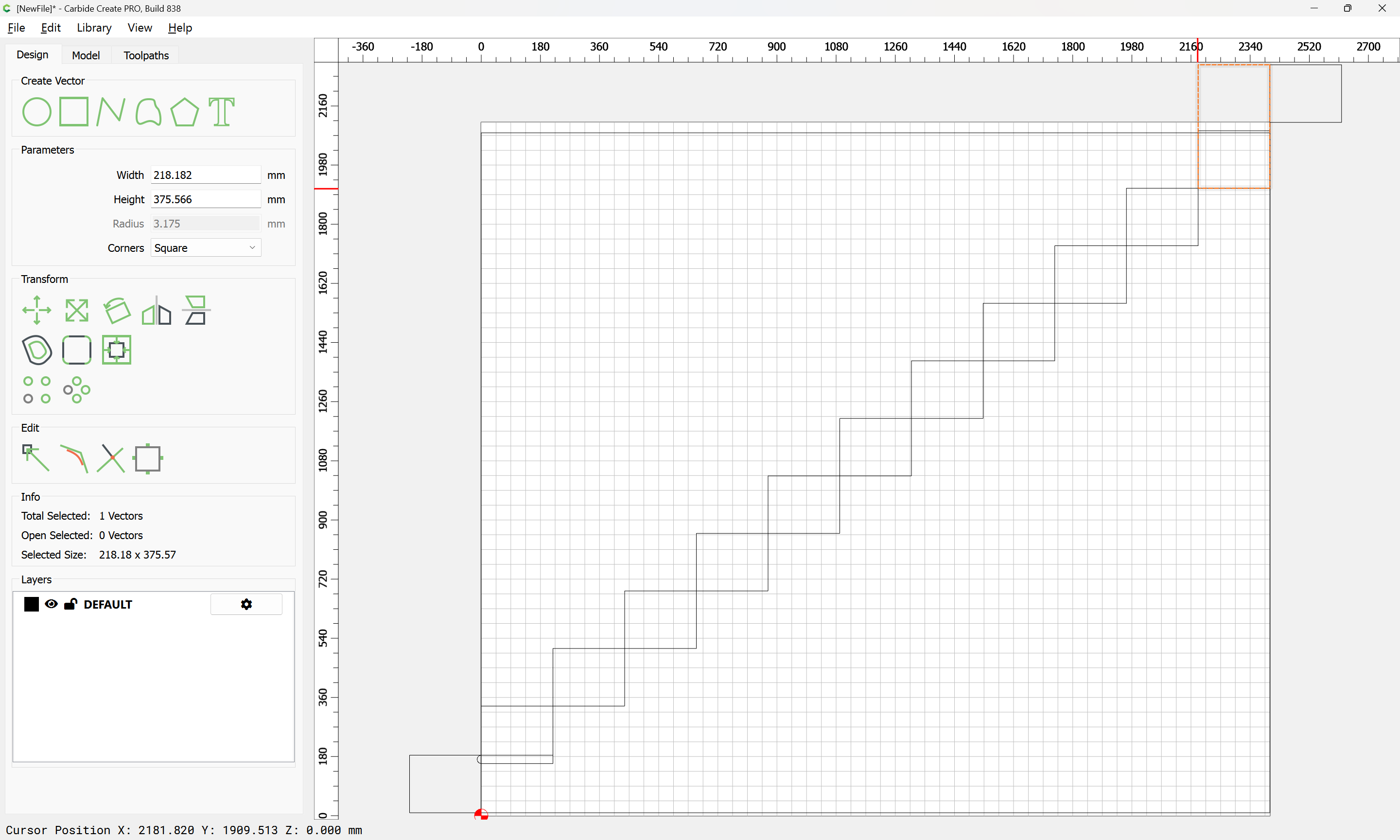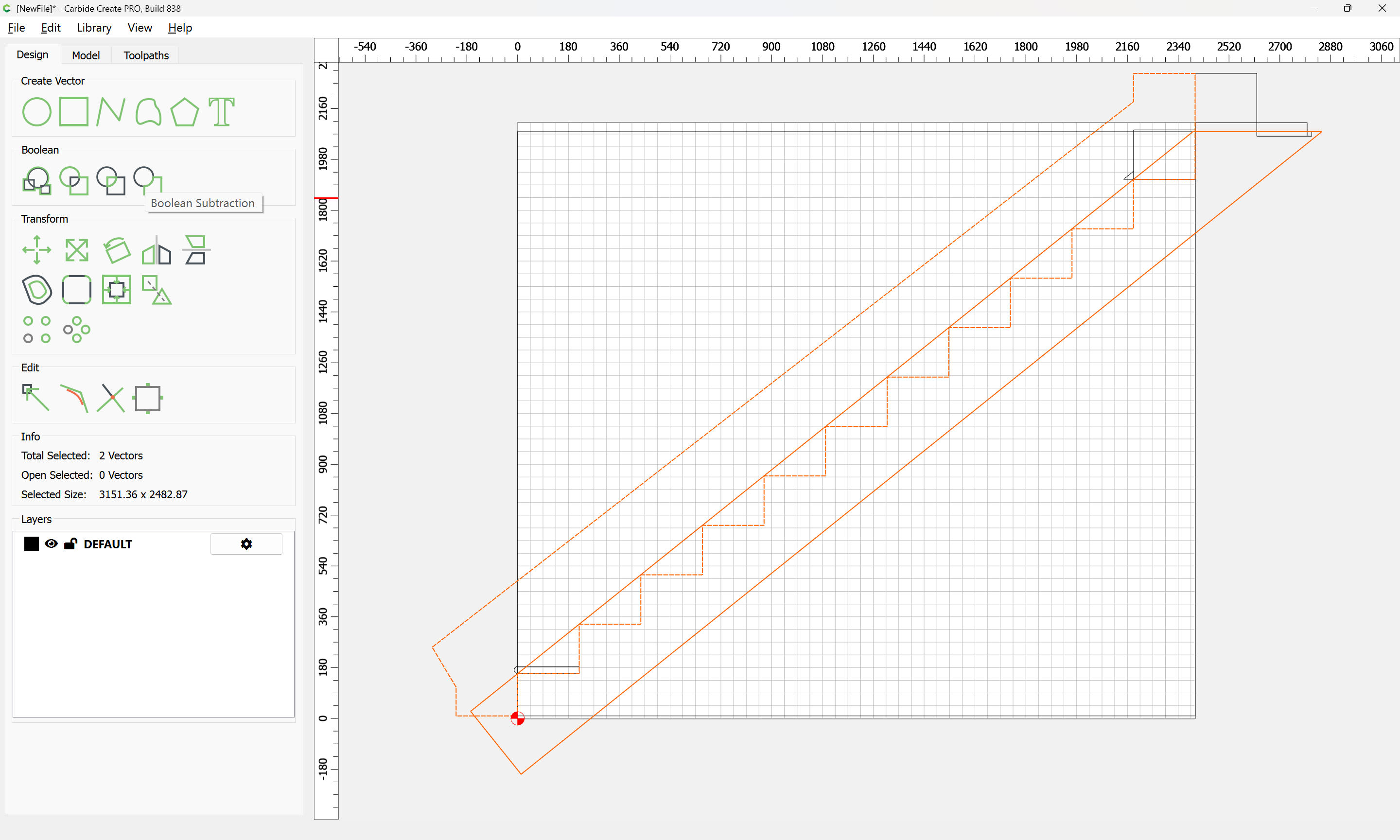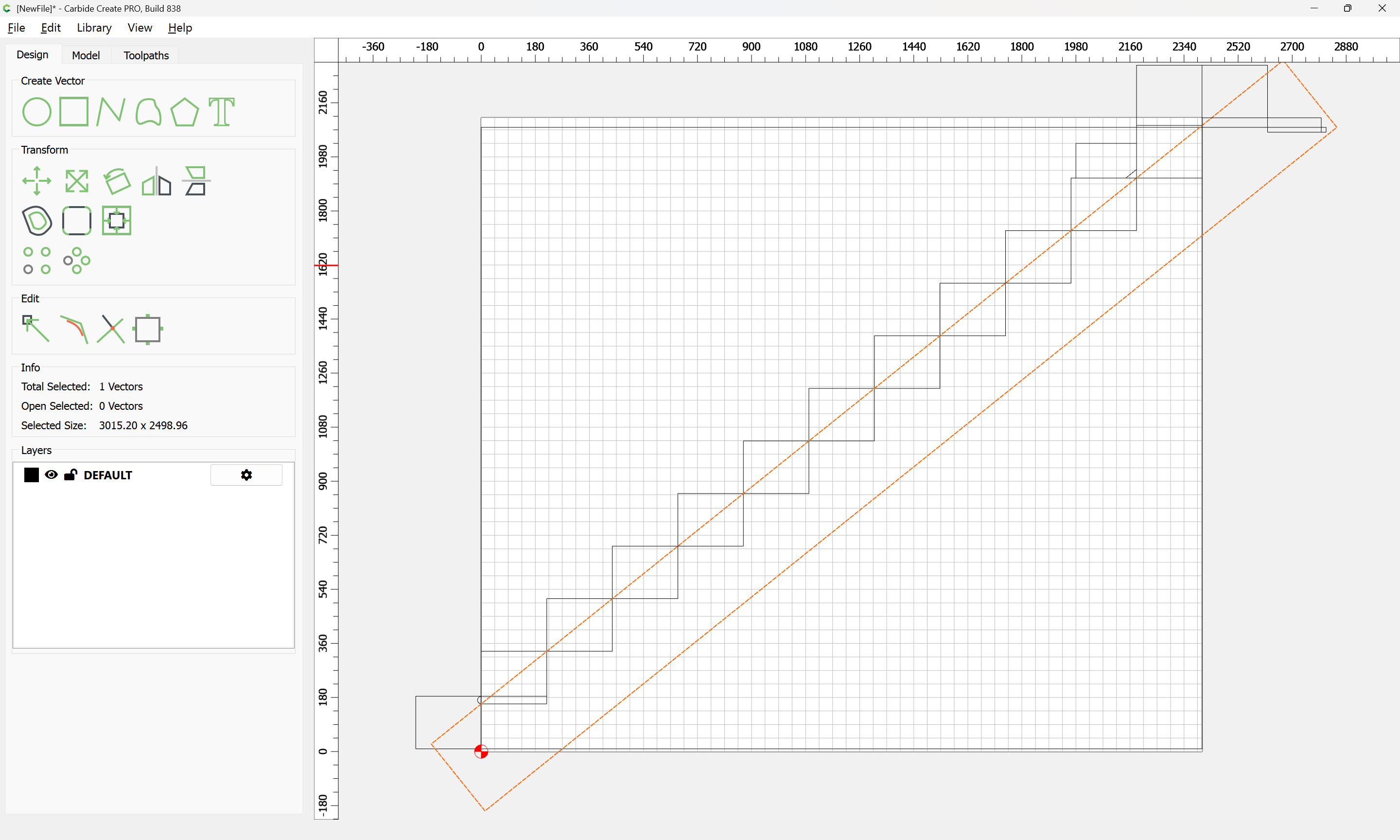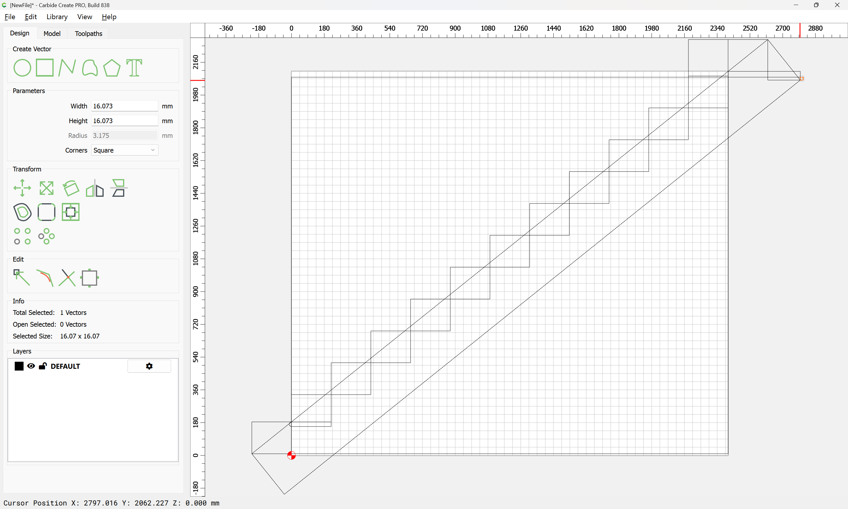 Given all these, it should be pretty straight-forward to just draw up the profile of the stairs and the matching structure, use the Measure tool to get some dimensions, then use Linear Array to duplicate Stair Treads (or a proxy for same), then finally, use the measure tool to get the angle of rotation for a 2x12 and Boolean subtract the stair treads (and the space above) so as to arrive at a stair stringer which may then be measured and cut traditionally, or if one wishes to go the full monte, cut on the machine using tiling if need be (but of course that would then require a bit of adjustment in the stair treads (rounding over the bottom edge to match the radius of the tool used) as well as sourcing a “long reach” tool to cut through 2" construction lumber.