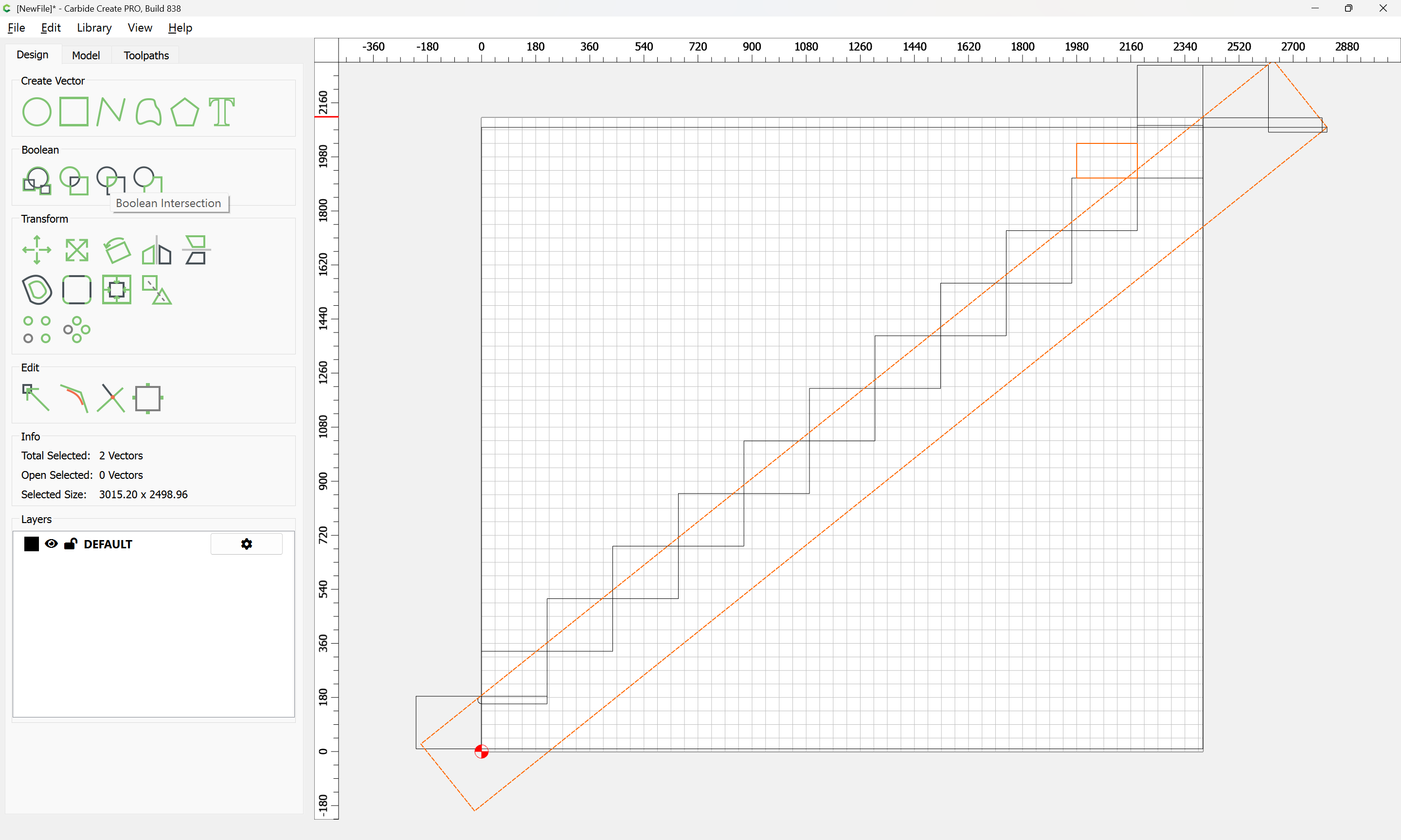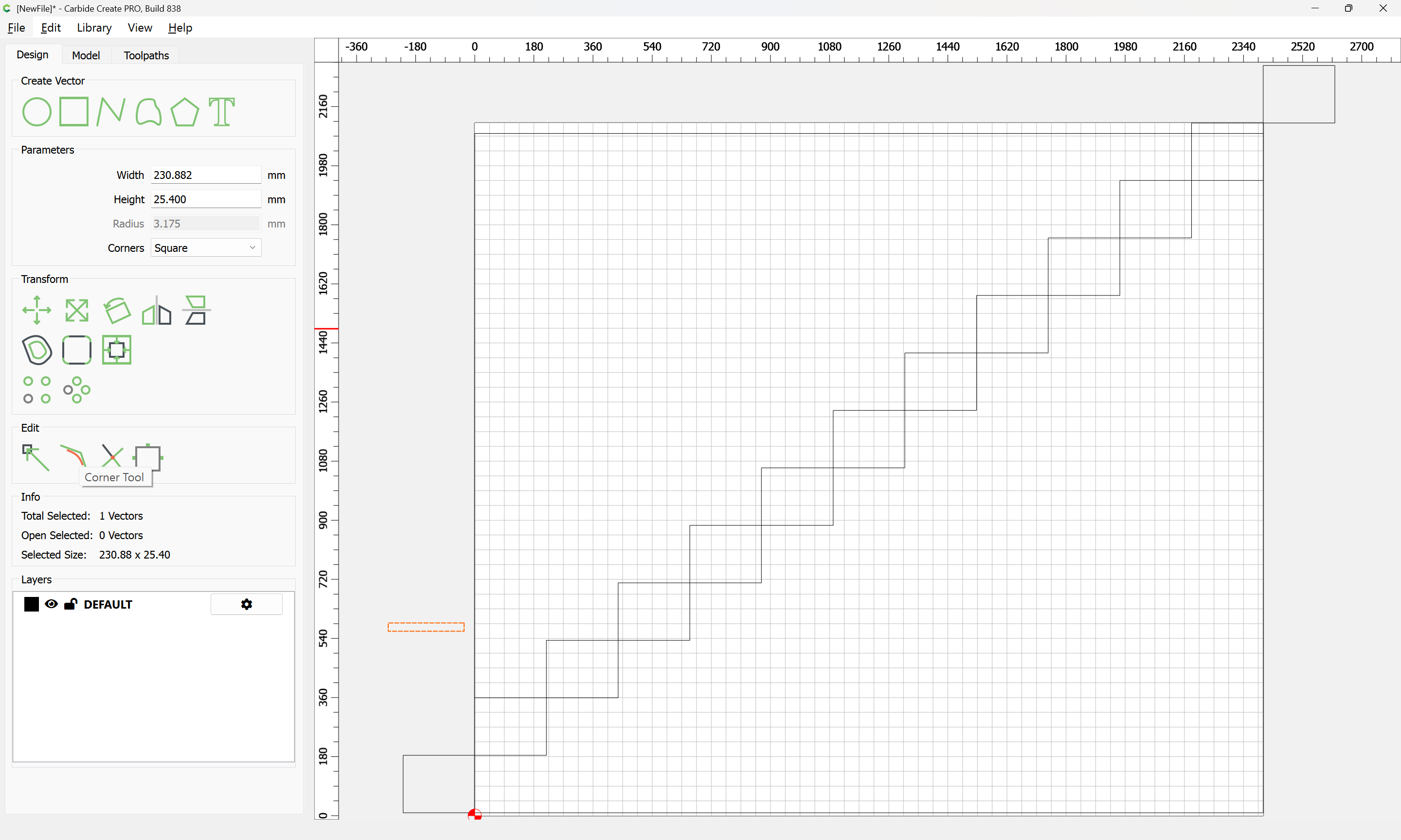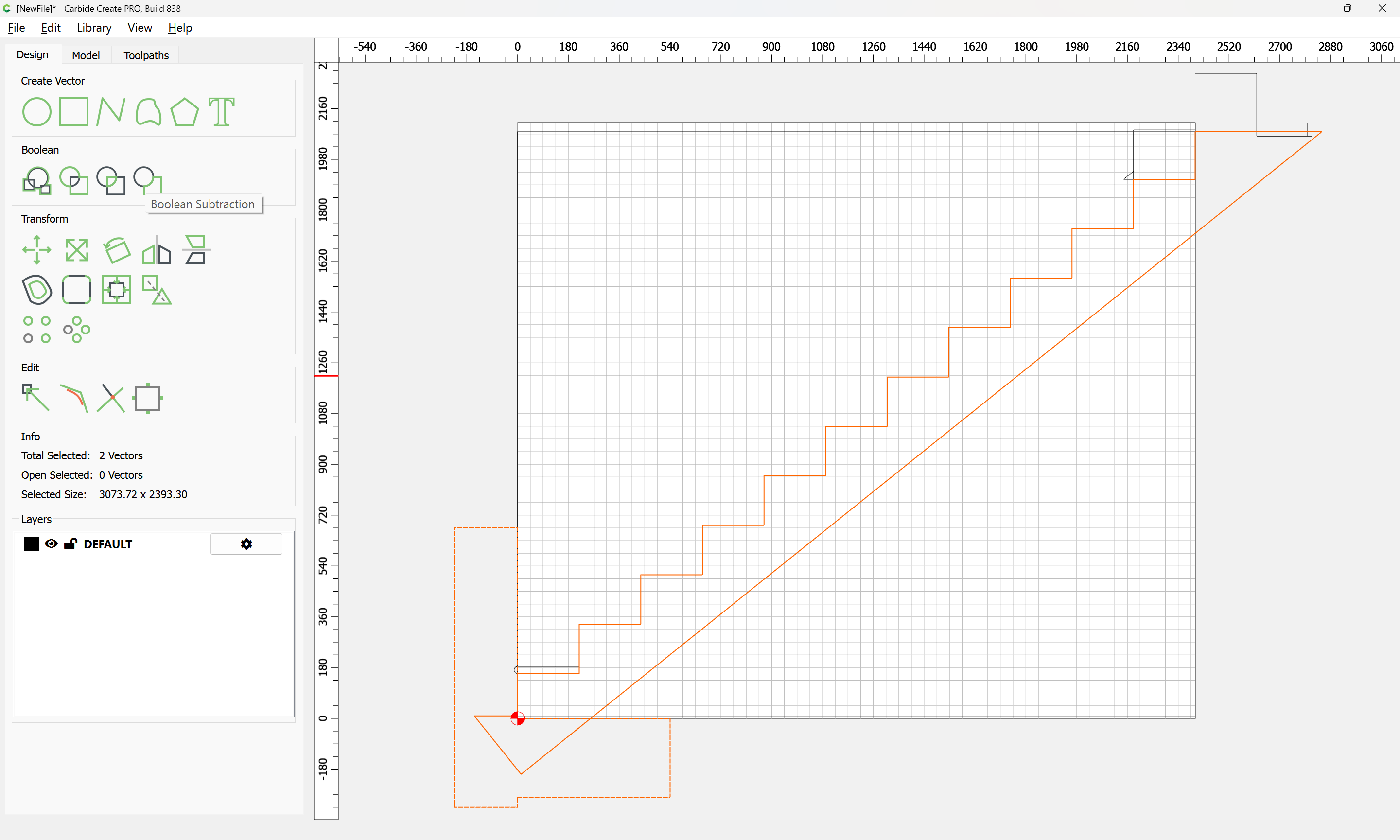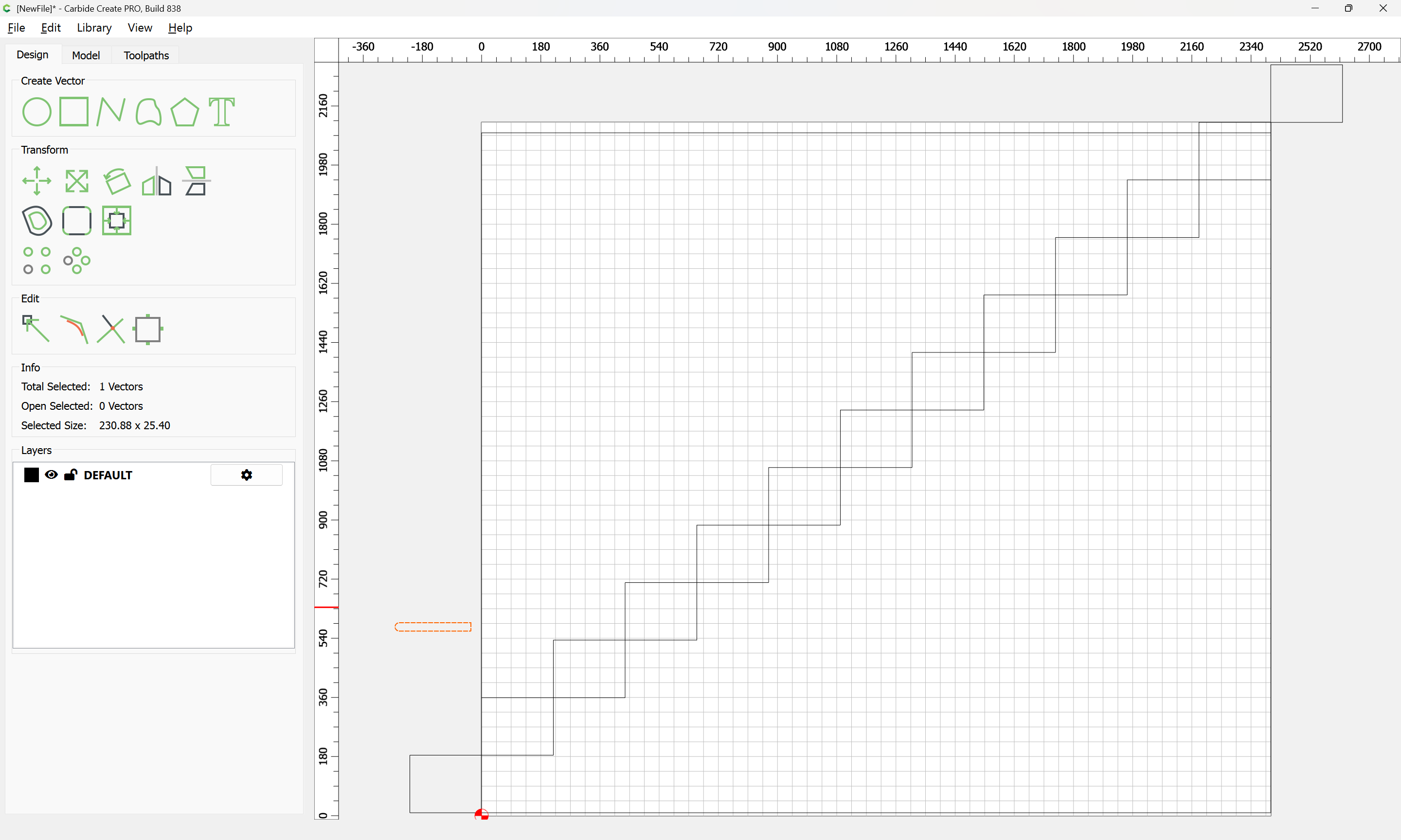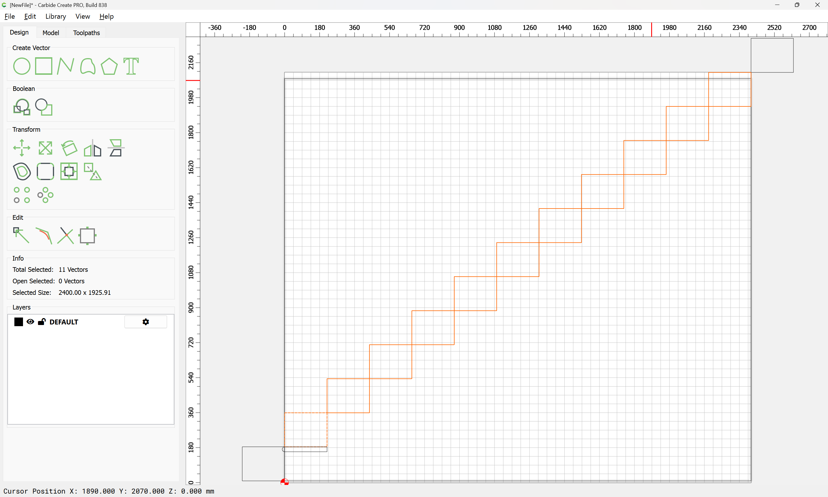 Given all these, it should be pretty straight-forward to just draw up the profile of the stairs and the matching structure, use the Measure tool to get some dimensions, then use Linear Array to duplicate Stair Treads (or a proxy for same), then finally, use the measure tool to get the angle of rotation for a 2x12 and Boolean subtract the stair treads (and the space above) so as to arrive at a stair stringer which may then be measured and cut traditionally, or if one wishes to go the full monte, cut on the machine using tiling if need be (but of course that would then require a bit of adjustment in the stair treads (rounding over the bottom edge to match the radius of the tool used) as well as sourcing a “long reach” tool to cut through 2" construction lumber.