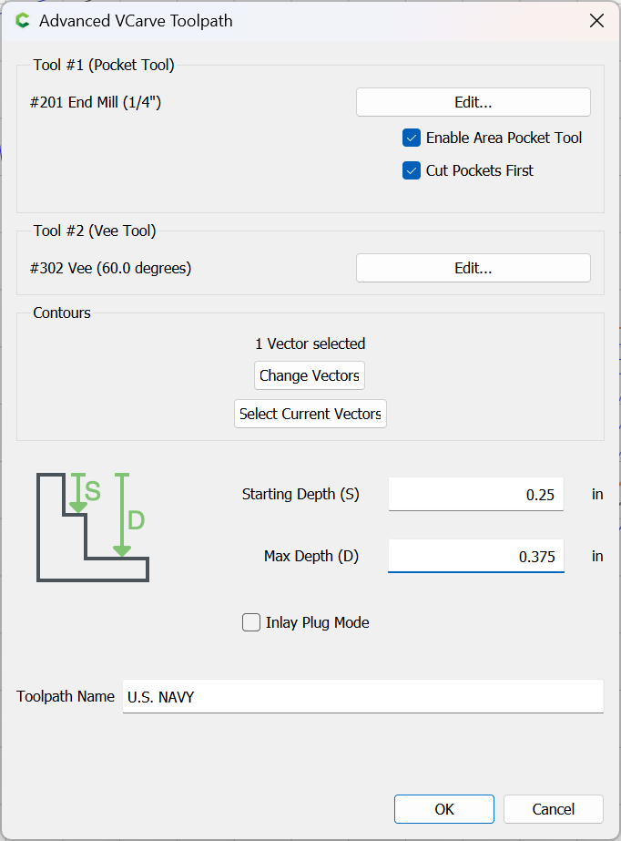 Plan to V carve a line that simulates ocean waves across a plaque, however it is an “Empty Toolpath” How do I close the toolpath and correct this? Thanks