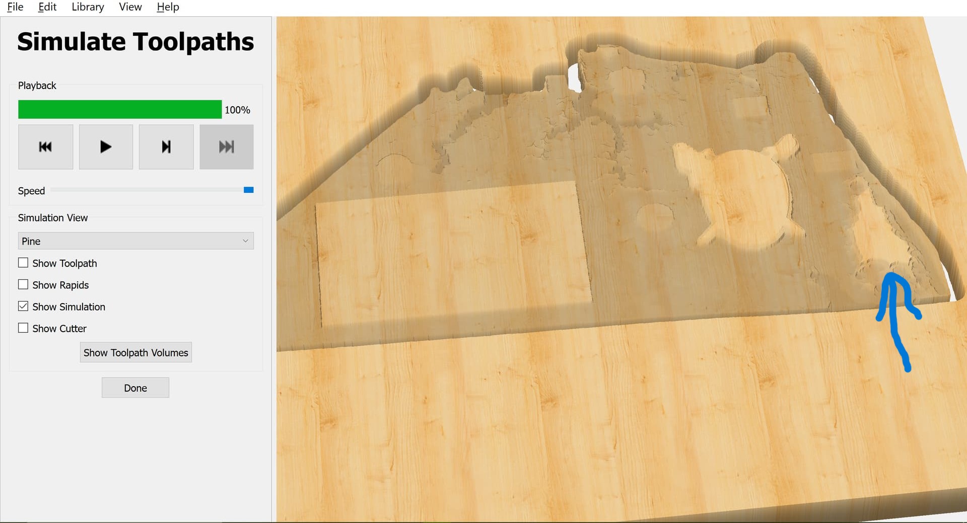 You are showing the toolpath simulation, and the toolpath doesn’t cut in that area. Don’t include that boundary in the toolpath & it should do what you want.