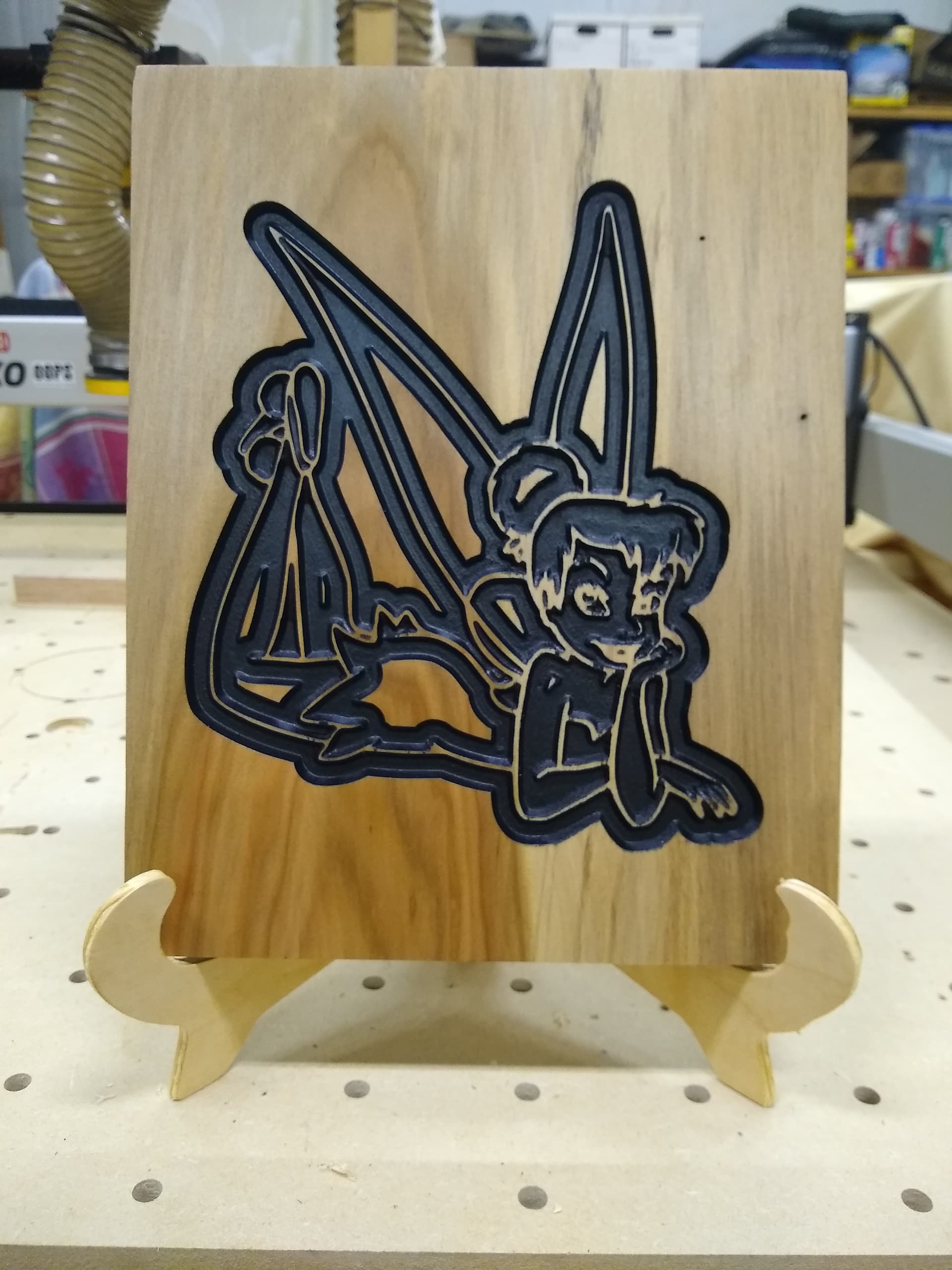 The easel has a coat of shellac on it. Will spray finish tomorrow if it does not rain.