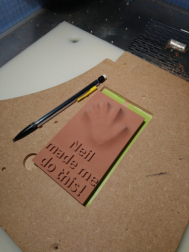 I finished my first 3D Modeled piece using CC Pro. It was a 2.5 hour carve and all in all, I’m very happy with the output. I took these photos before doing any post-creation sanding, so that I could share the results with the community…First here’s the result…