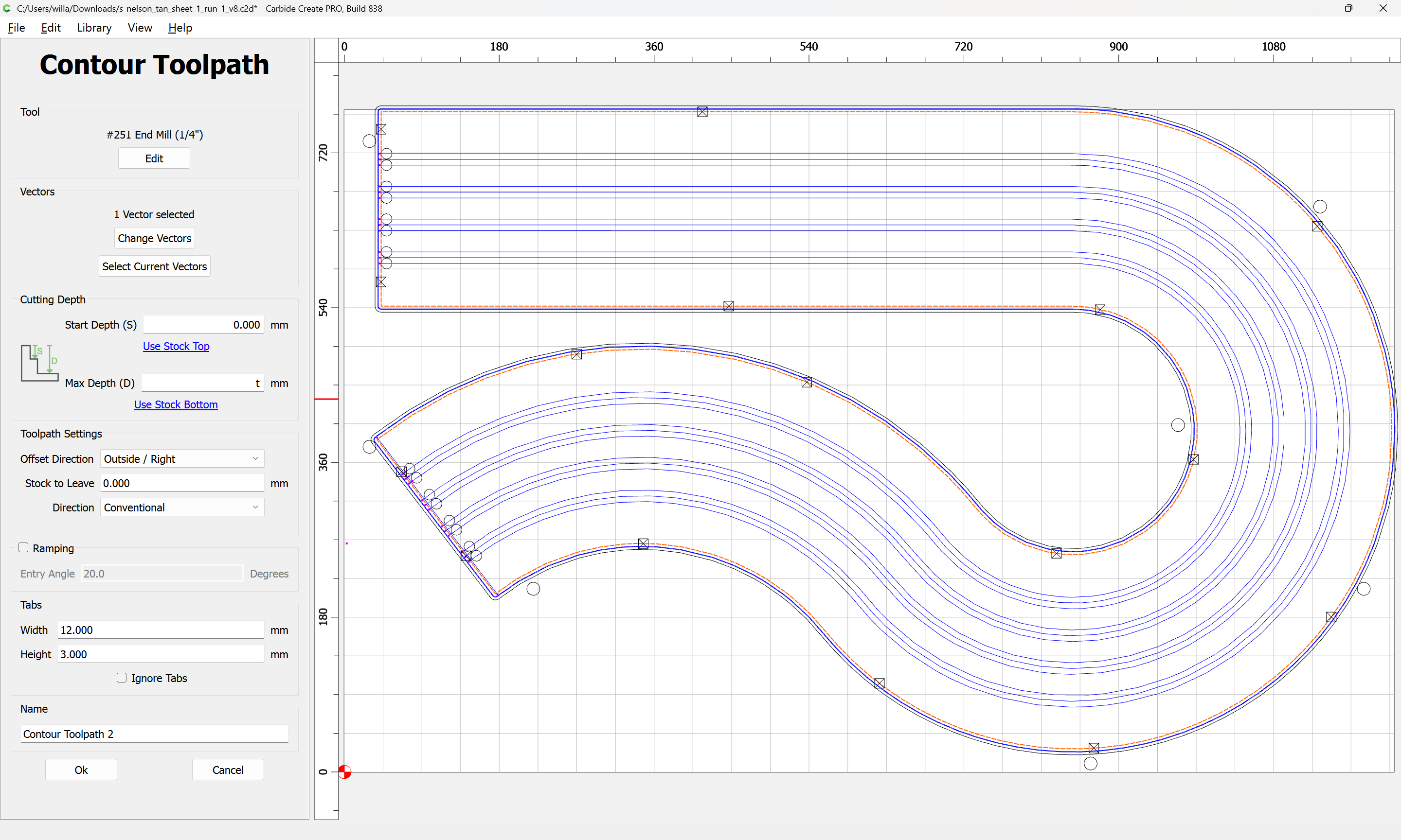 I drew perimeter cut as the toolpath only. And It still isn’t one loop in Carbide.