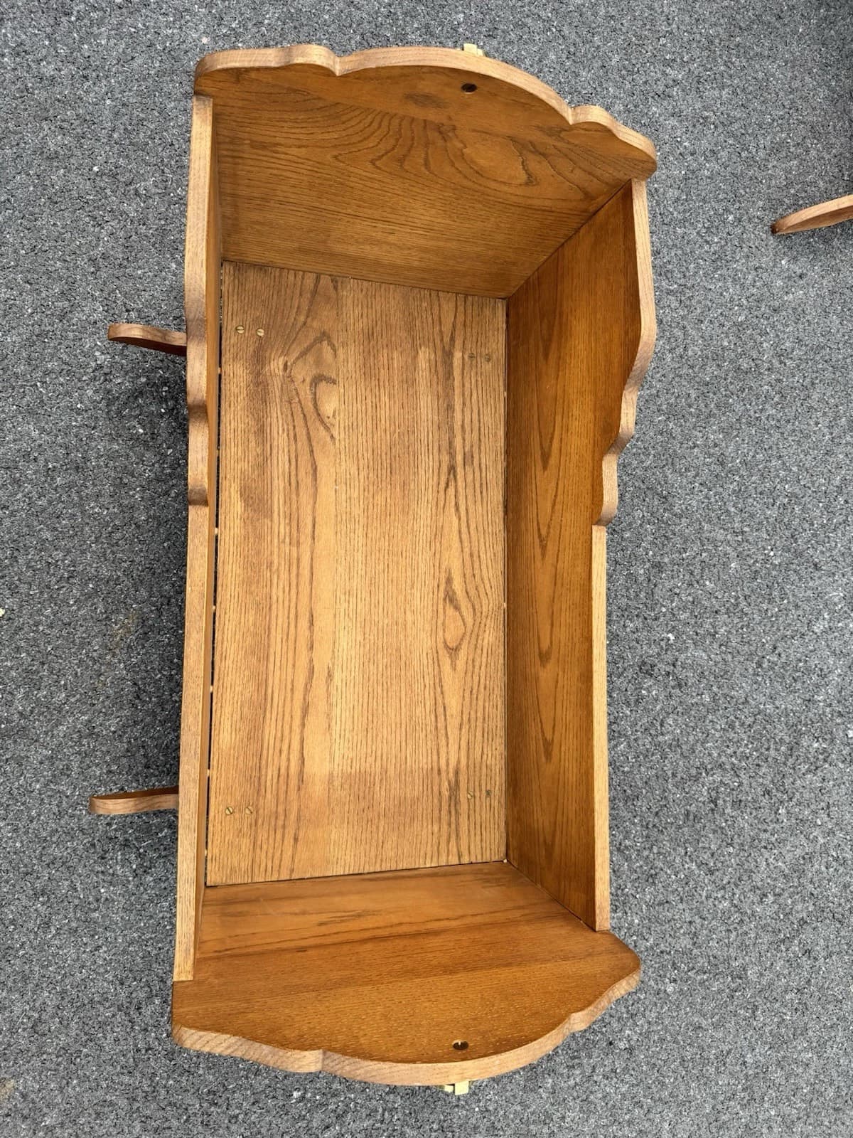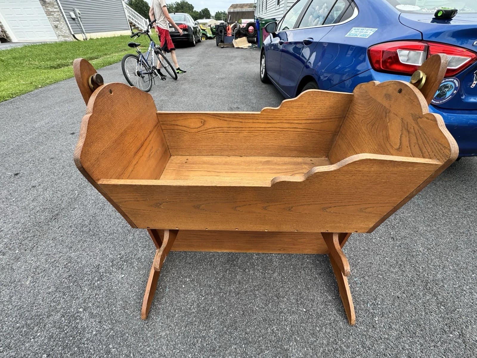 A similar cradle was made by a wonderfully talented cabinetmaker whose shop I used to frequent after school for his first grandchild, then a toddler — when she was told that her grandfather had made it by hand, she expressed an interest to see his shop, which she had never before done — arrangements were made, and when the door to the carriage house which he used as a shop was open, revealing a seemingly endless expanse of woodworking tools, she stamped her foot and loudly complained to her mother, “You lied! Grandpa doesn’t make things with his hands! He uses tools!”