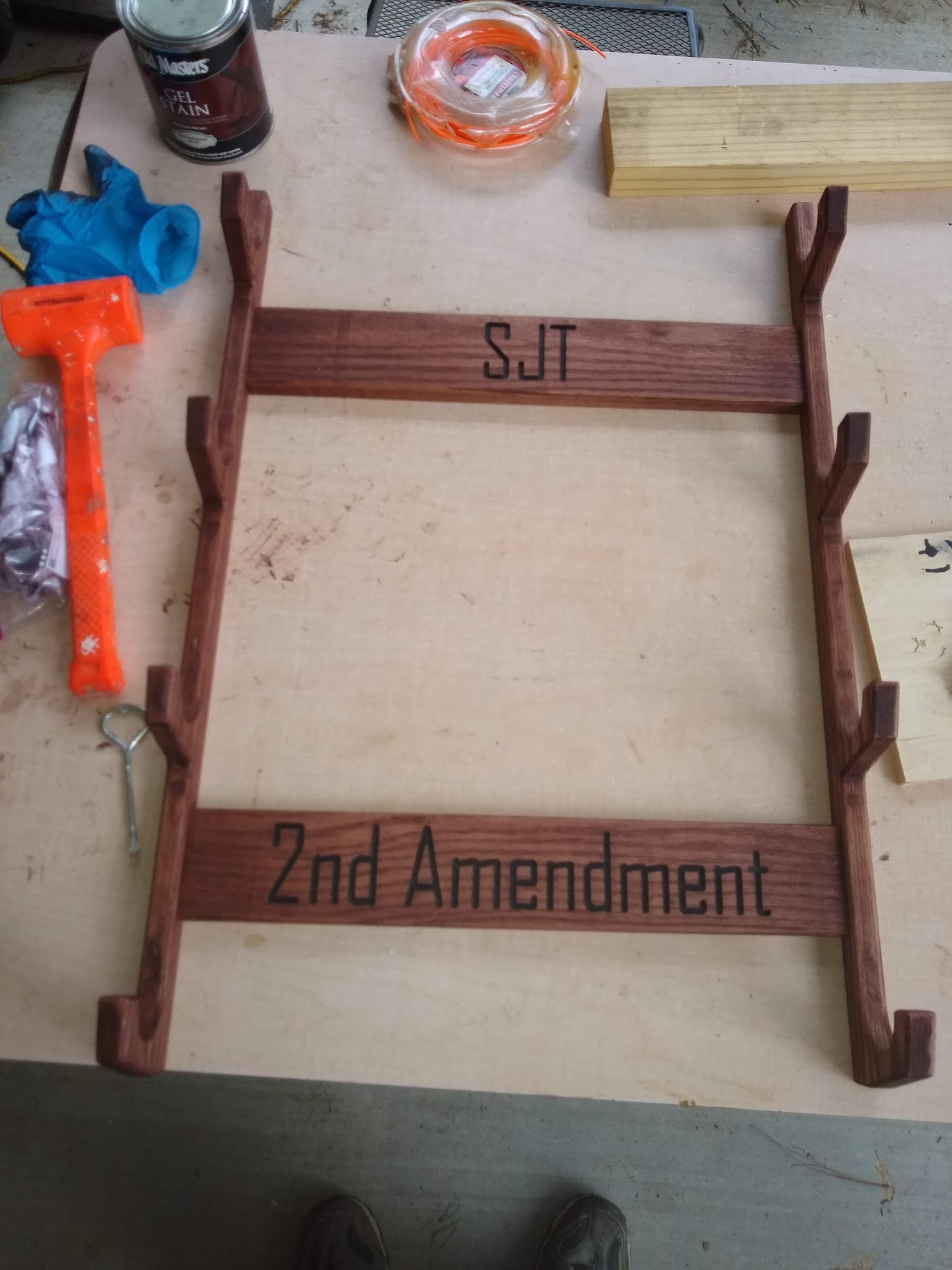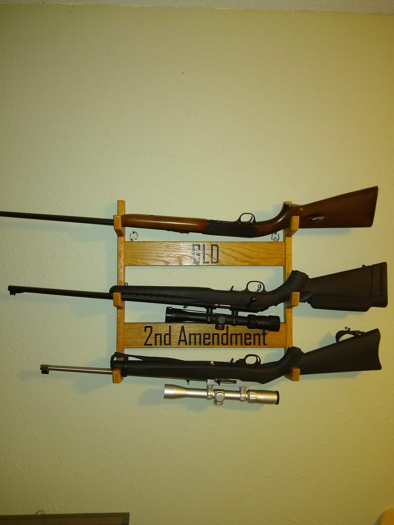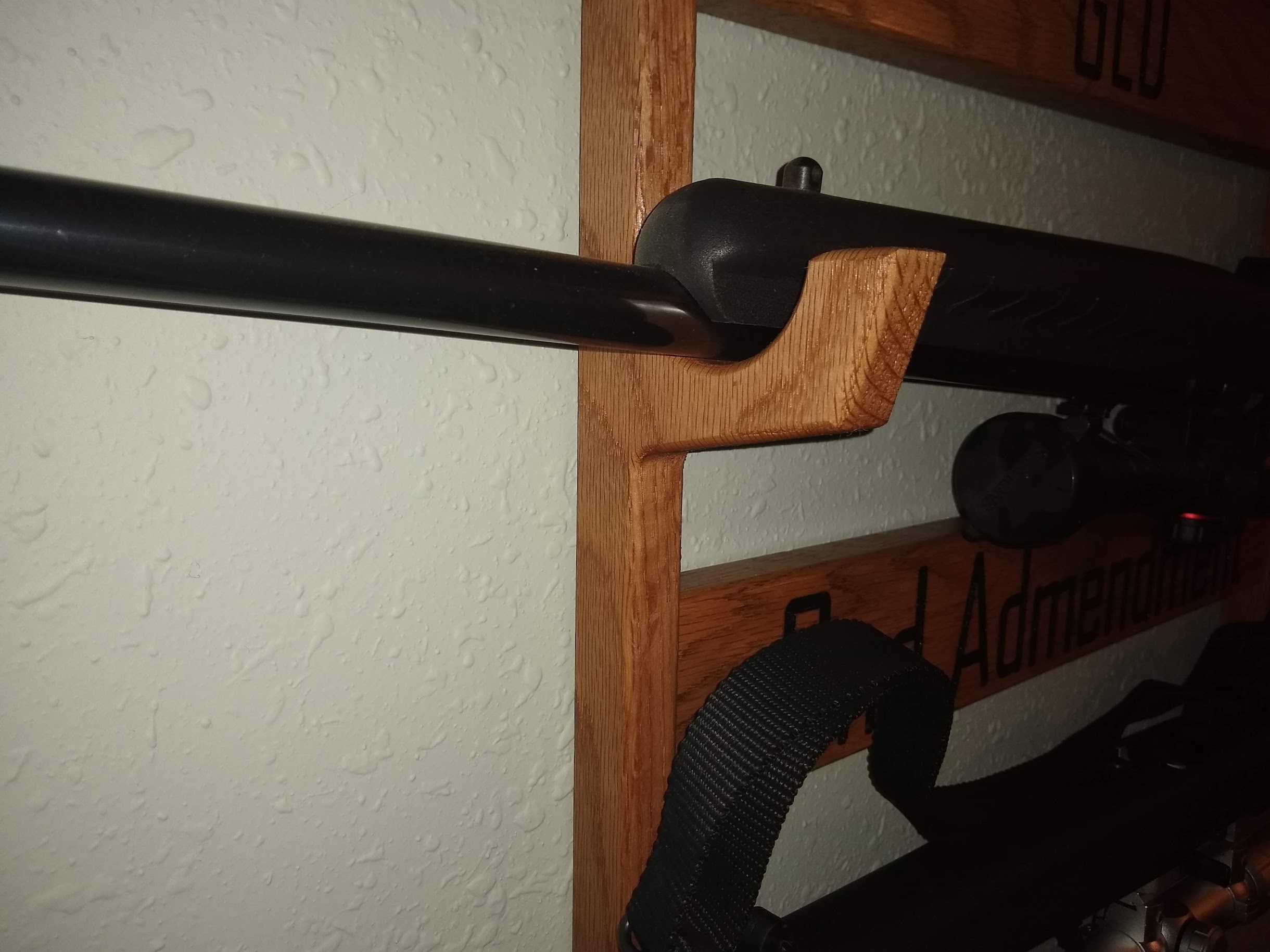 I would suggest adding felt to the rung of where the guns will sit in. This will help protect the metal and the stock from getting any unwanted scratches or just any markings on the gun from the hardwood. Just a suggestion.