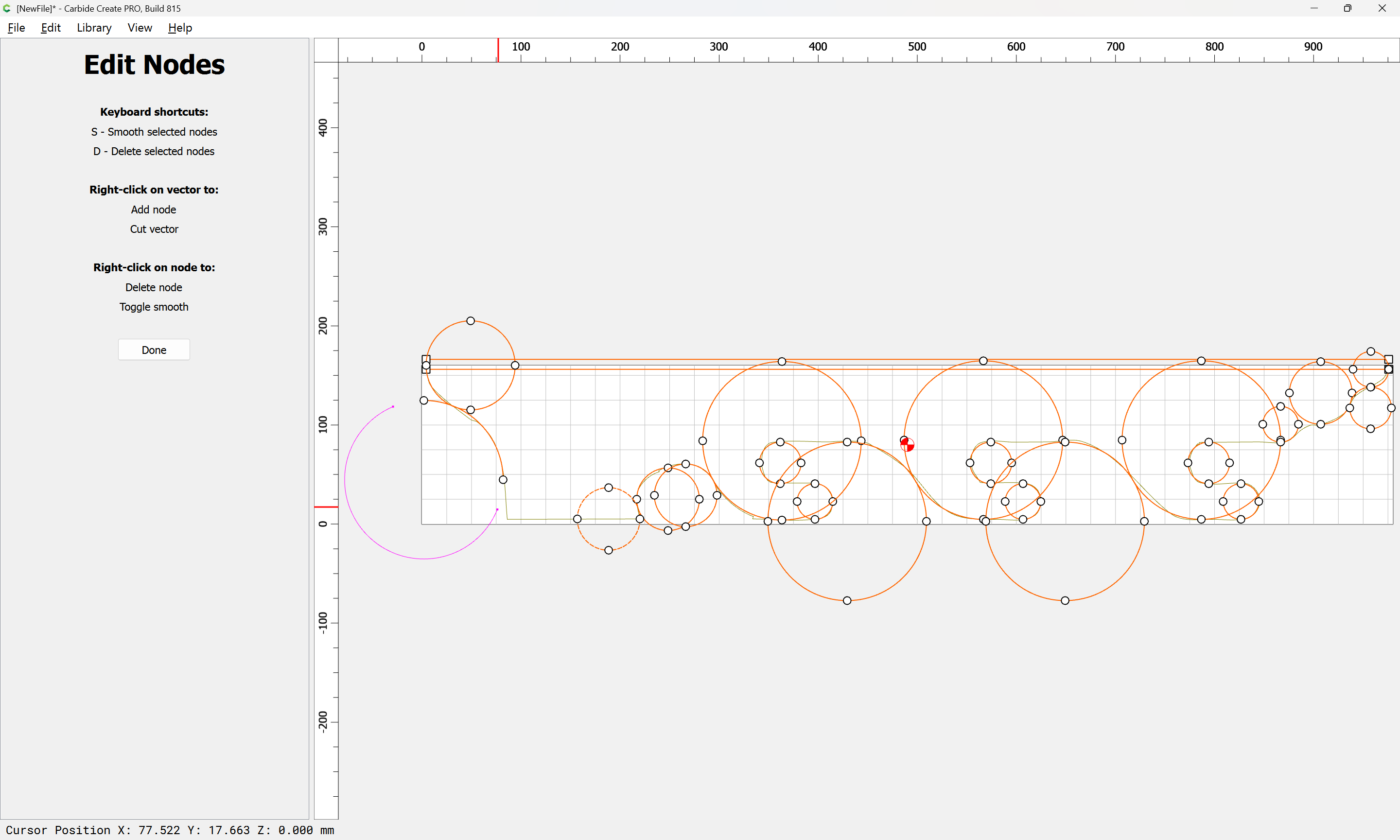 Trying to clean up a file. I was able to copy this file from a JPEG but is has issues after the fact, I was wondering if someone would be so kind as to point me to the command to help me smooth the final vector our or maybe point me to an instructional video using carbide create. Ill upload the file so that you can see what Im trying to accomplish. Its rater ragged after creating it.
