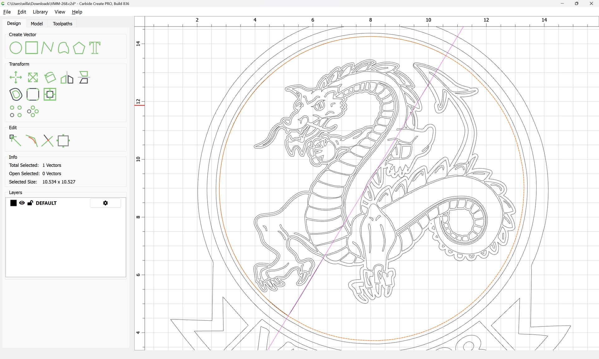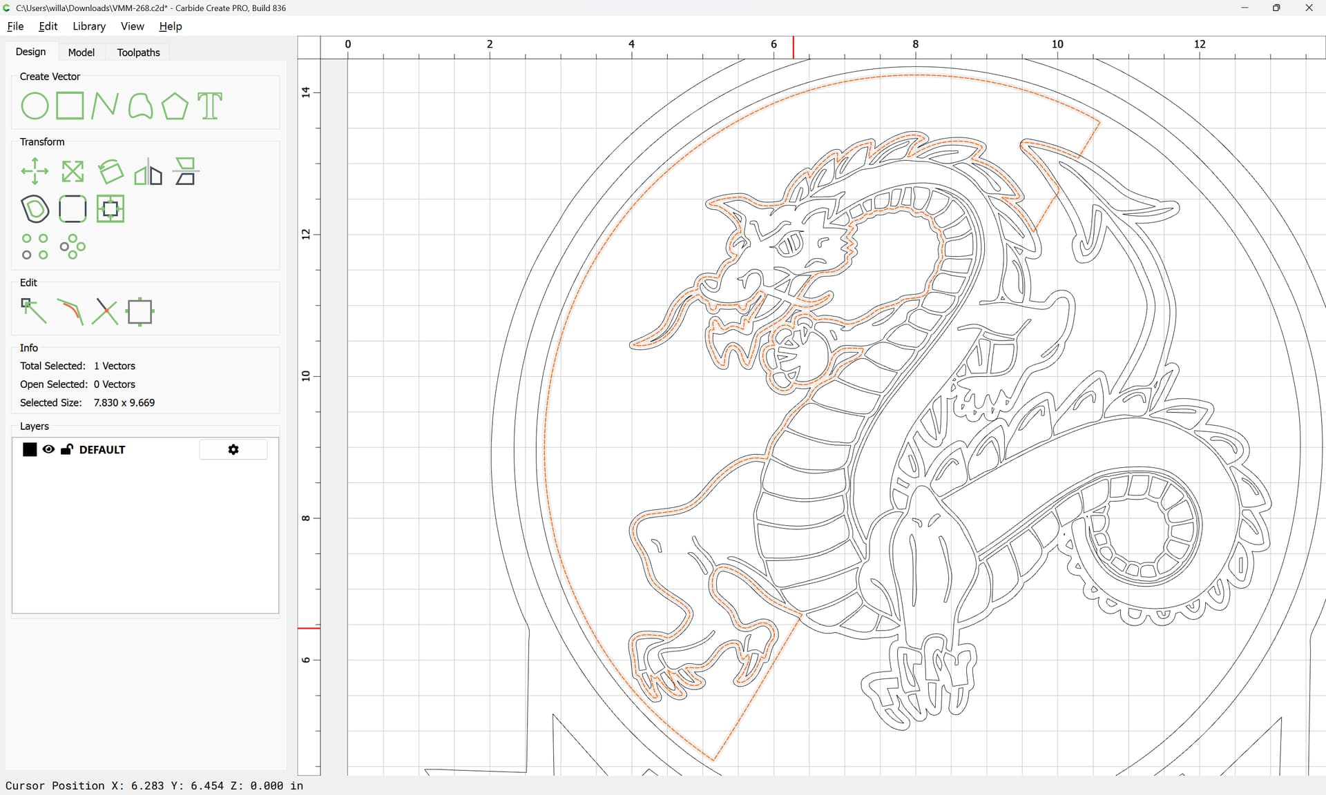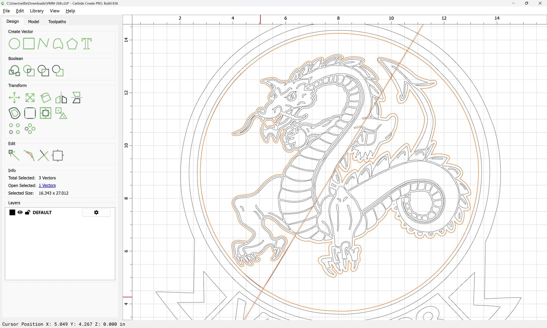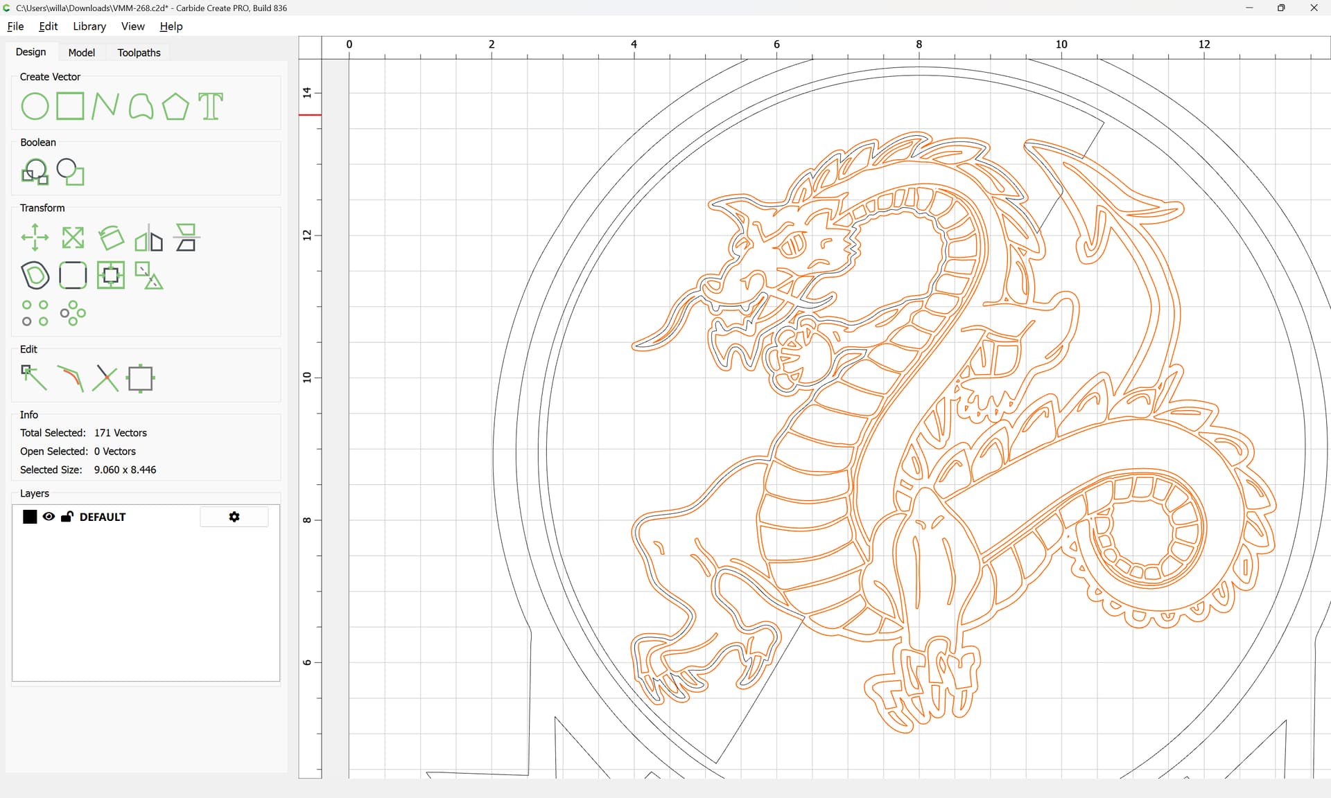 I guess my question is more on the software side. If I trace the image in CC Pro, it is including the blue as part of the dragon. I would like for the black and blue to be carved at the same depth, approx .1, and the dragon to be raised. I can’t figure out how to completely separate the dragon from the image trace svg. Would this require a different software such as illustrator? (which I don’t have. Attached is a picture as to the kind of look that I am going for. Thank you for your help.