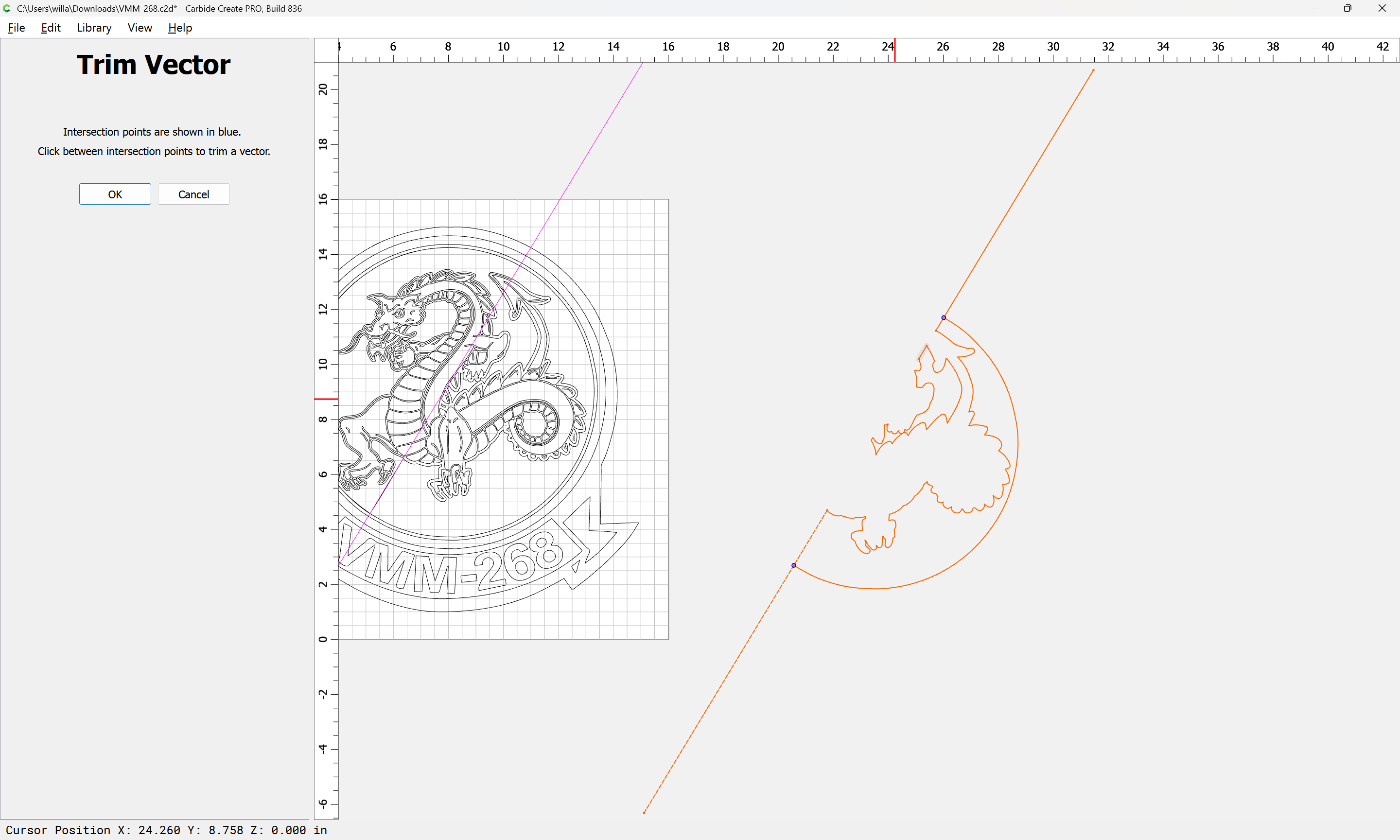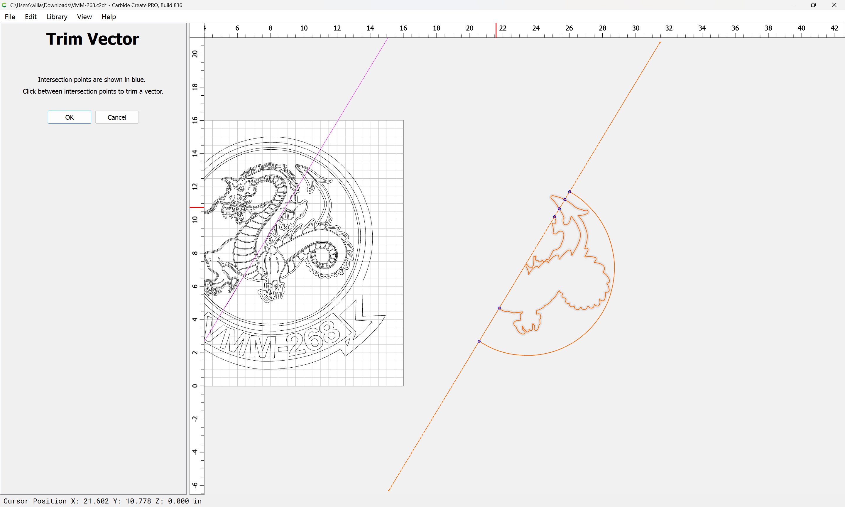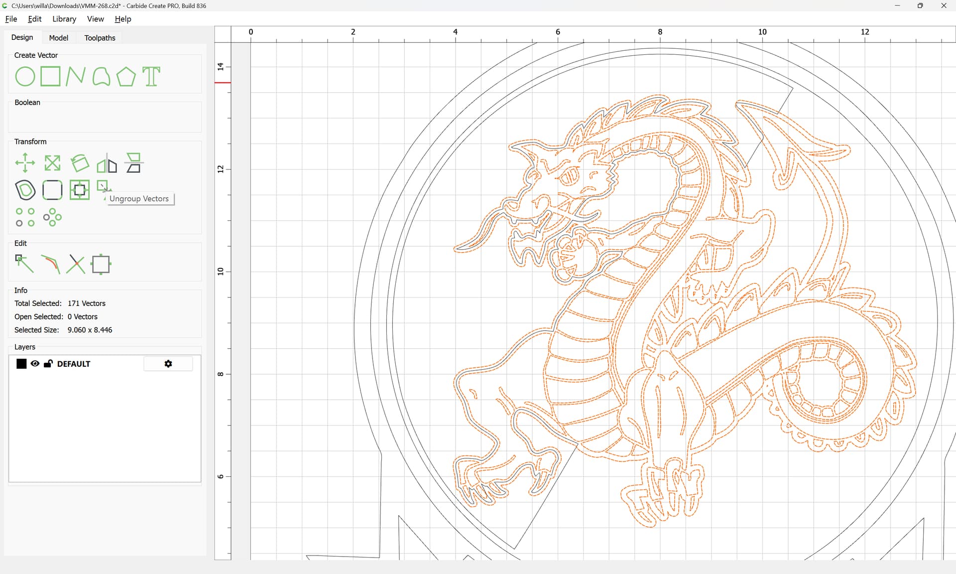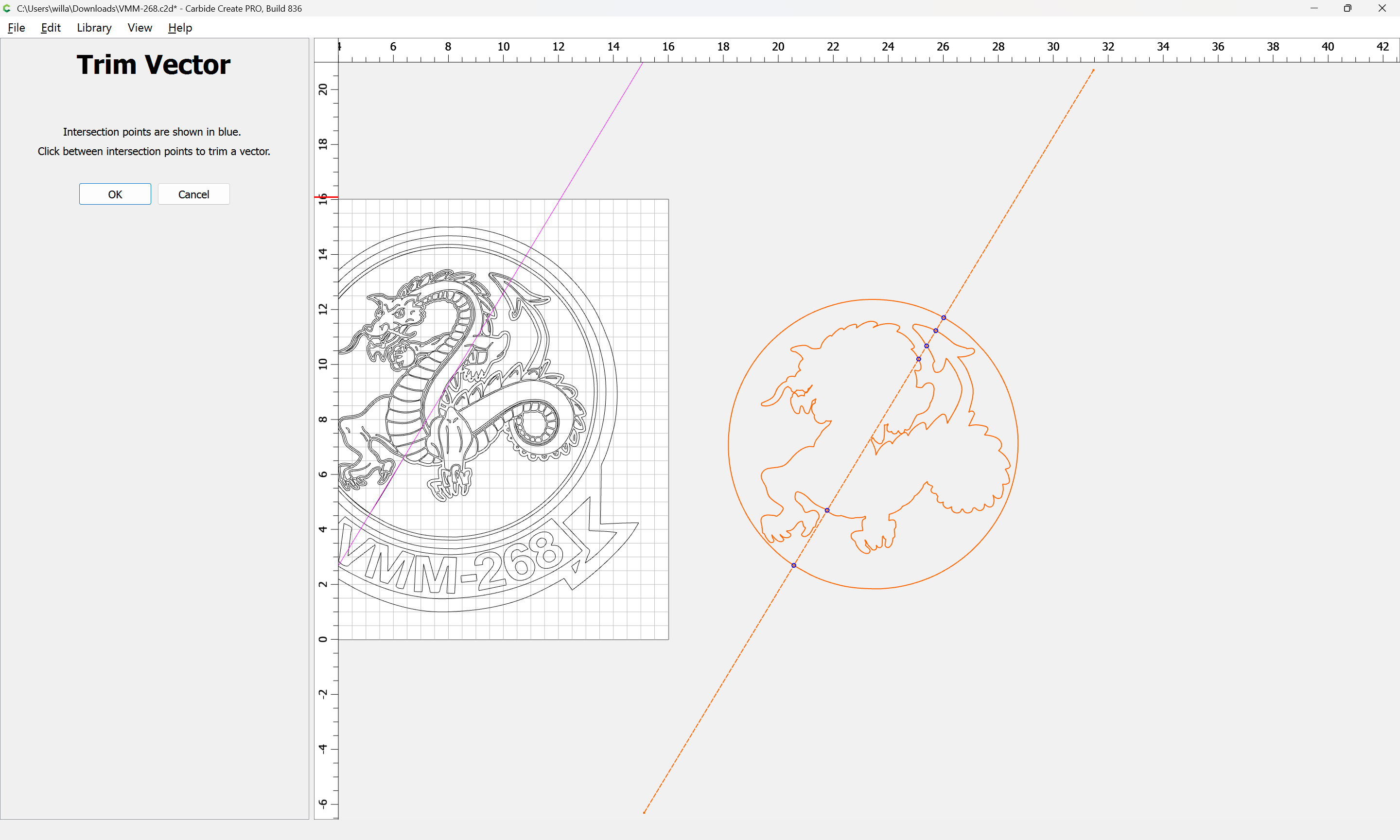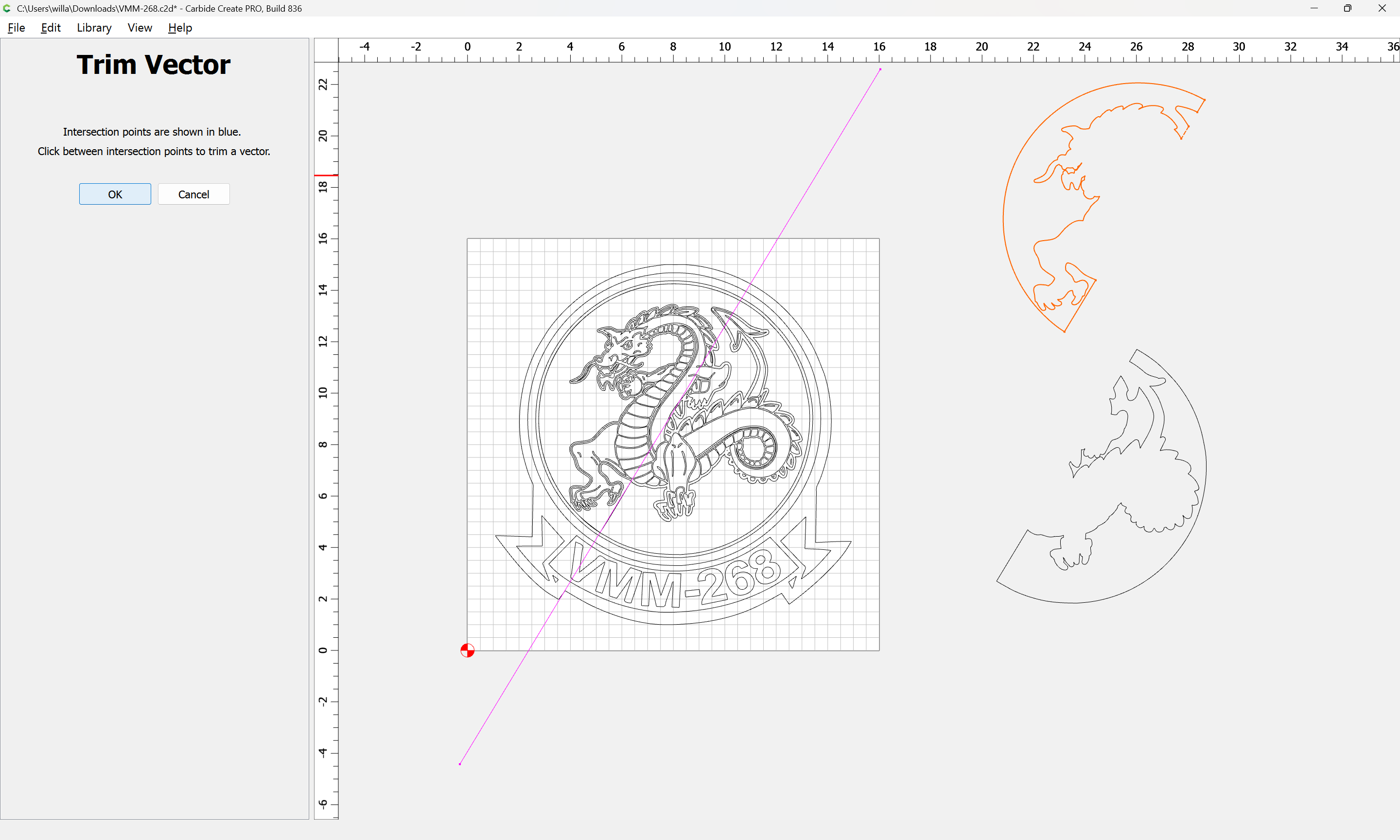 I guess my question is more on the software side. If I trace the image in CC Pro, it is including the blue as part of the dragon. I would like for the black and blue to be carved at the same depth, approx .1, and the dragon to be raised. I can’t figure out how to completely separate the dragon from the image trace svg. Would this require a different software such as illustrator? (which I don’t have. Attached is a picture as to the kind of look that I am going for. Thank you for your help.